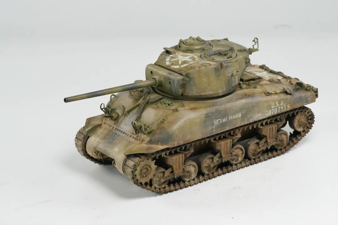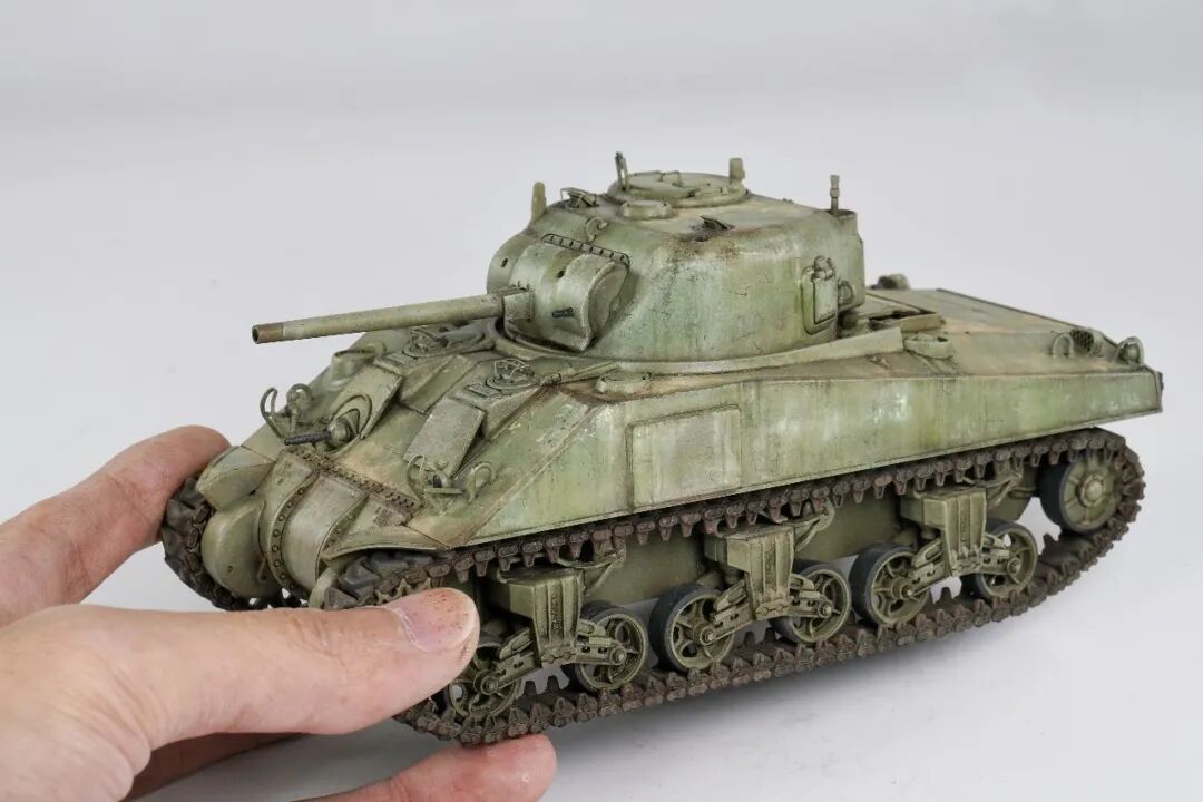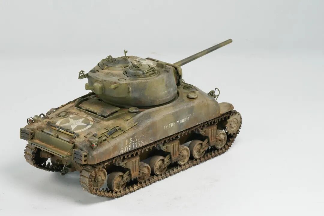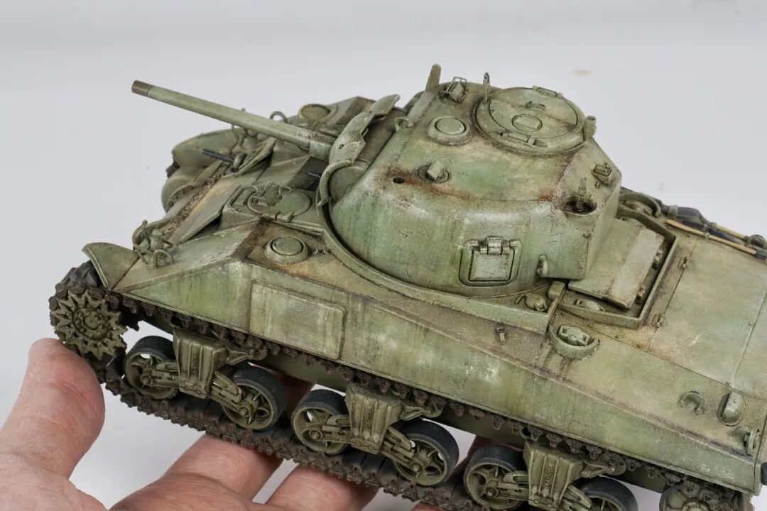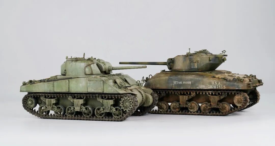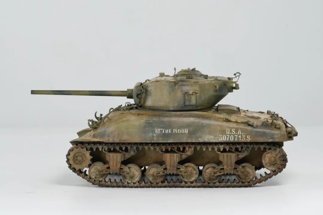 M4中型坦克,是在M3中型坦克的基础上研制的,各种改型的车身、发动机、炮塔、坦克炮、悬挂、履带等都选用不同的装备配置,构成车身的零件有高度的兼容性。谢尔曼坦克是二战中产量最大的坦克之一,其产量达49234辆。