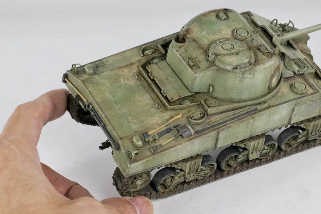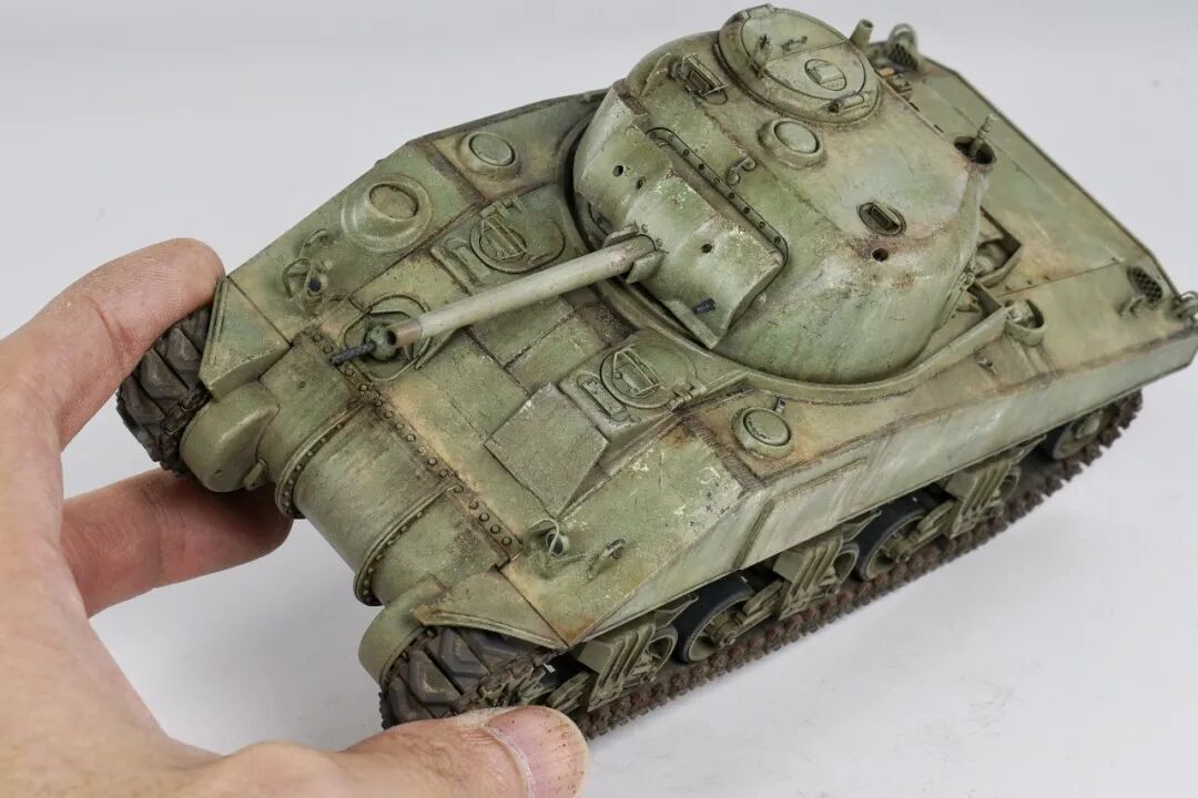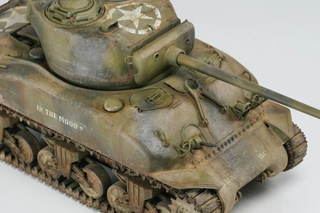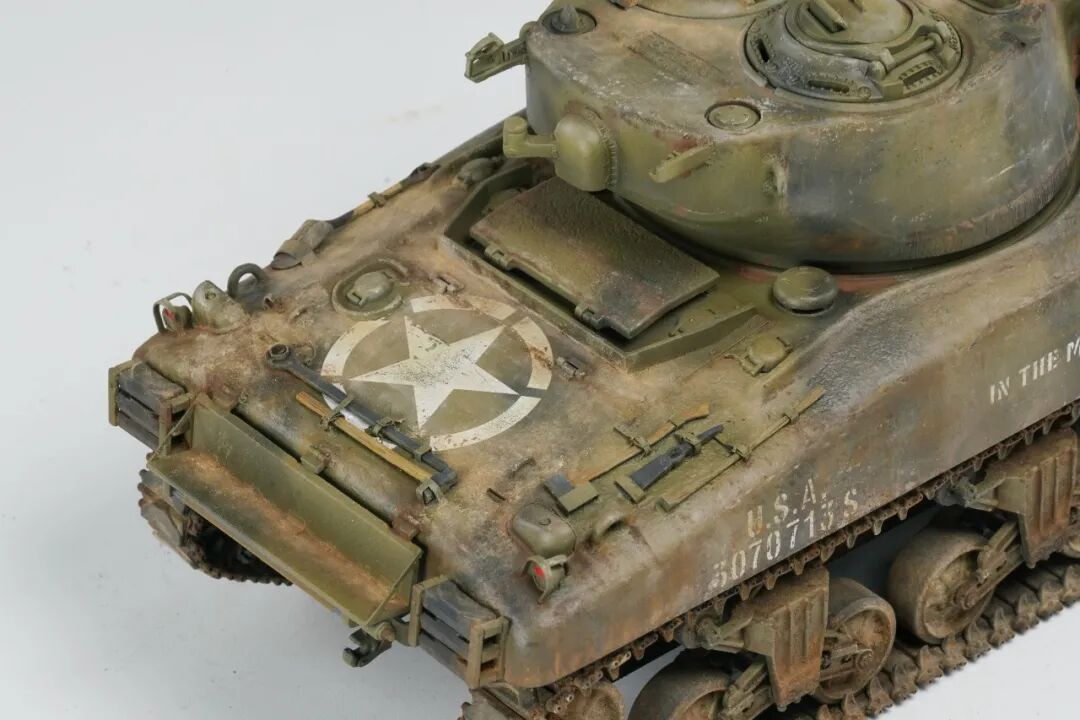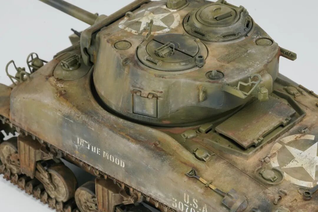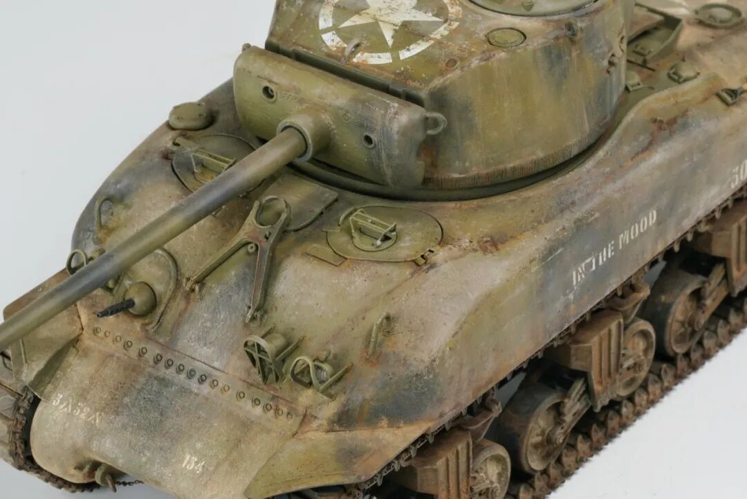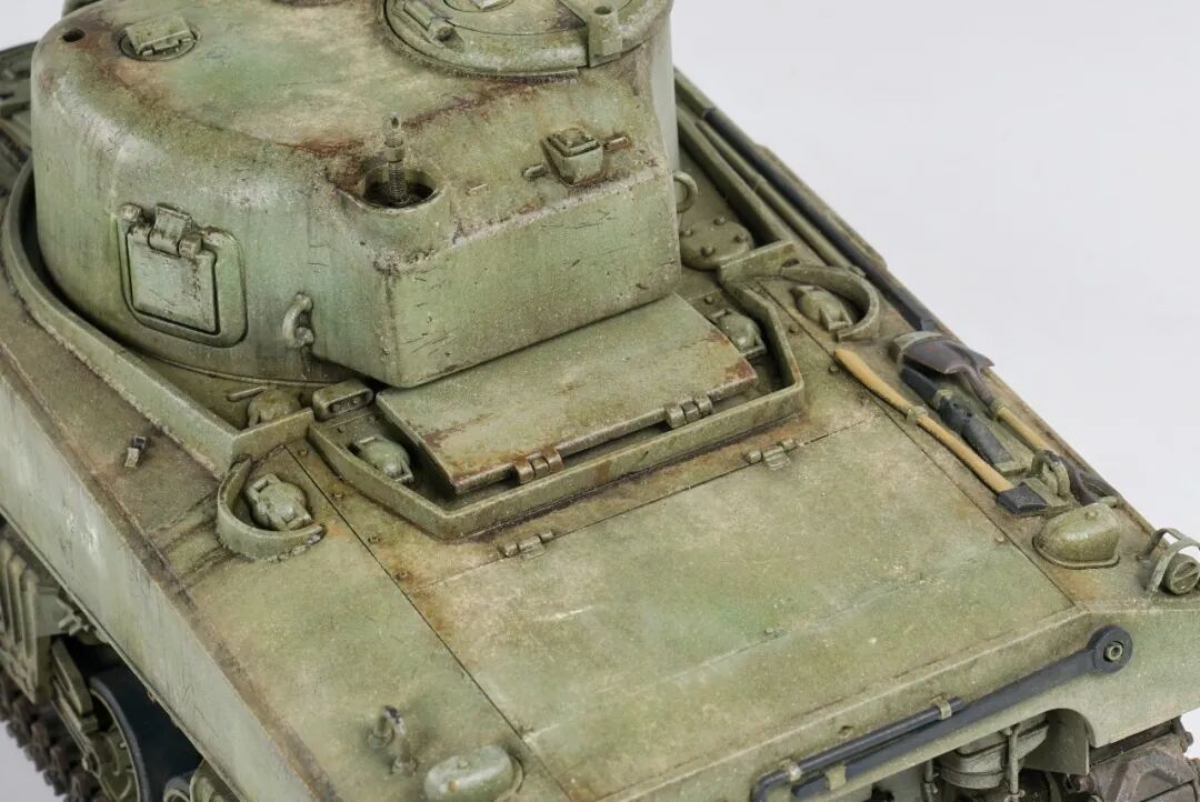 M4中型坦克,是在M3中型坦克的基础上研制的,各种改型的车身、发动机、炮塔、坦克炮、悬挂、履带等都选用不同的装备配置,构成车身的零件有高度的兼容性。谢尔曼坦克是二战中产量最大的坦克之一,其产量达49234辆。
