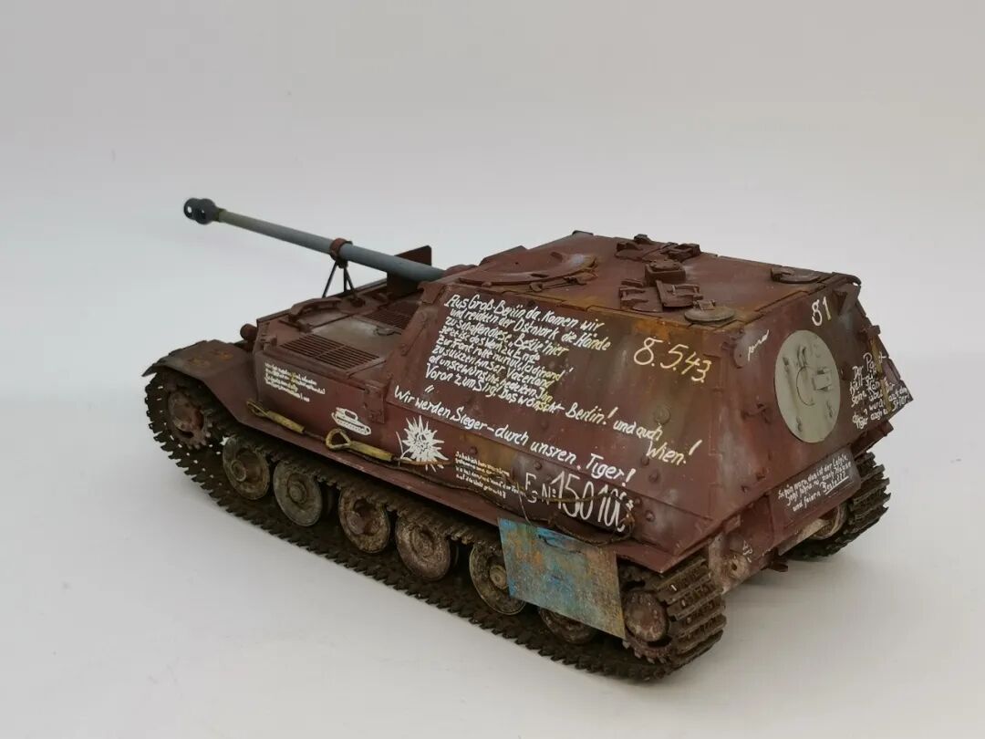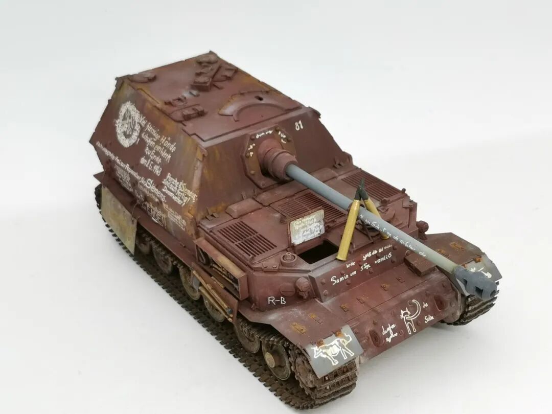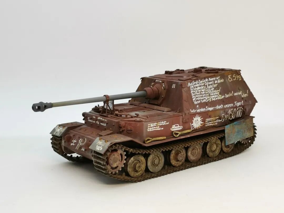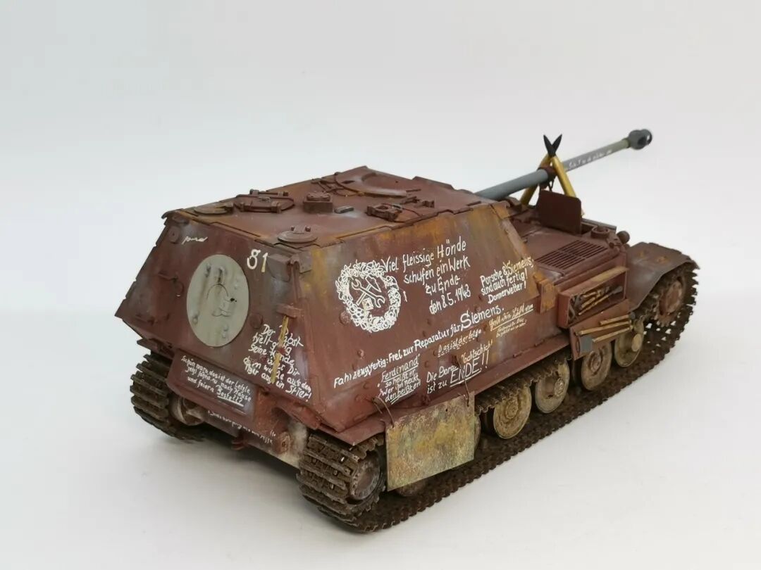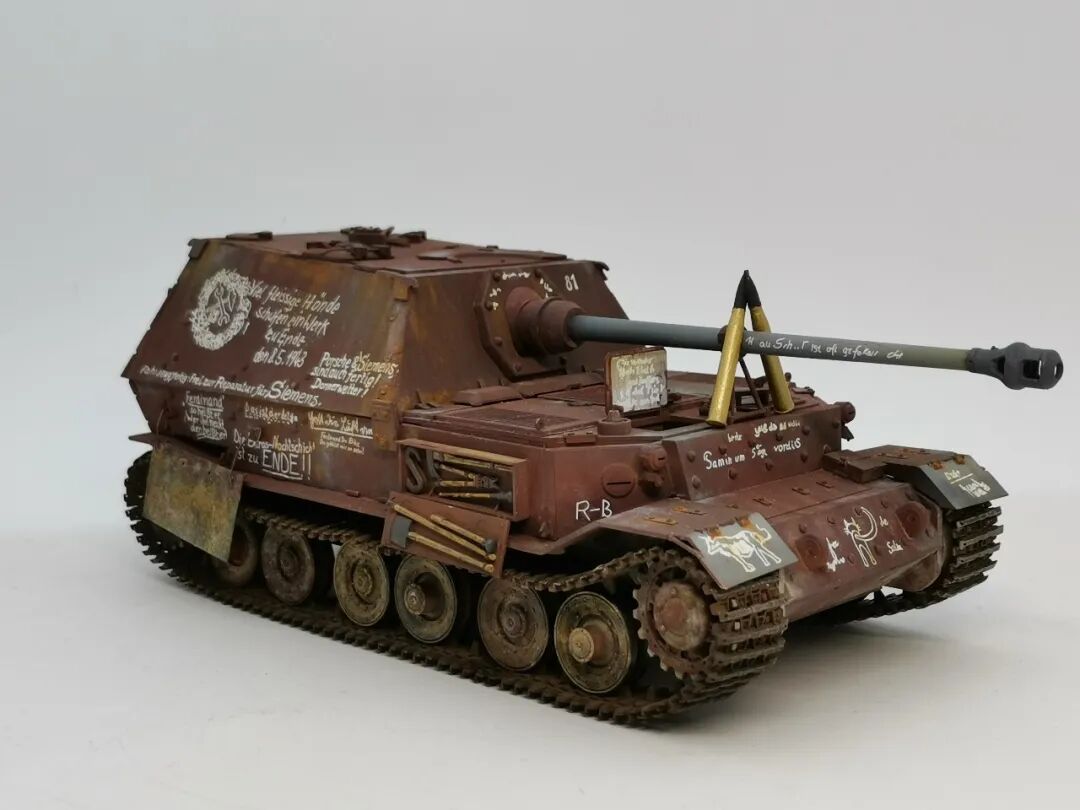 斐迪南还有一个昵称,废铁男,为什么呢,因为它虽然很硬,正面装甲达到了200mm。88mm/71的主炮,可以在2000米的距离上击穿盟军任何装甲车辆!IS-2和潘兴也不在话下。但苦于它不太给力的动力和机动,这台钢铁猛男在战场上经常被轮,据说德国的装甲兵对他都不太满意,而且这台老出毛病的铁疙瘩重达75吨,需要5辆18吨拖车才能拉得动,可以想象后勤的同志们有多反感他,这哪是拖炮,这是在拉火车啊。
