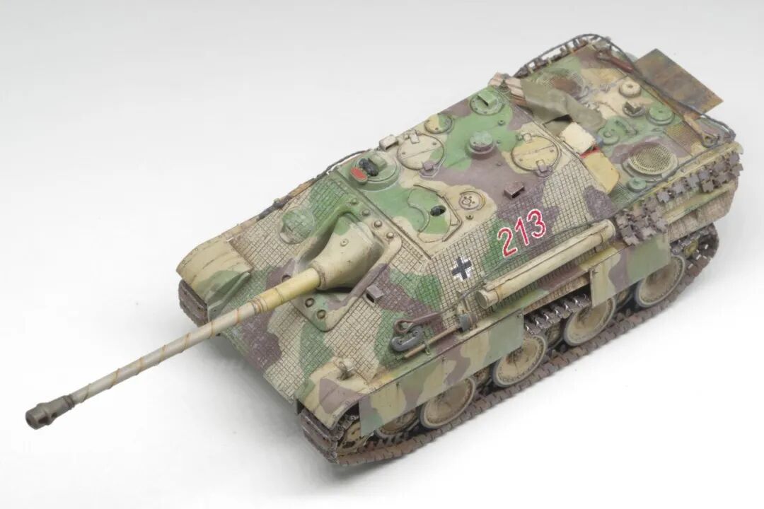 德国“猎豹”坦克歼击车采用“黑豹”(Panther)坦克的底盘,保留了原车的动力装置和车体,增加了一种新的上部结构。该车由克虏伯公司于1942年1月开始设计,11月16日制成全尺寸模型。1943年10月20日,在阿利斯试验场向希特勒展出样车。获得批准后,于1943年12月17日定名为“猎豹”坦克歼击车,编号为Sd.Kfz.173。1944年2月,正式投入生产,到1945年3月,共生产了384辆。1944年11月,又设计出装128mm火炮的“猎豹”改进型。
