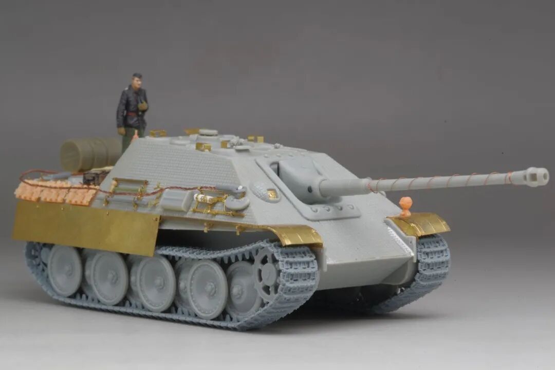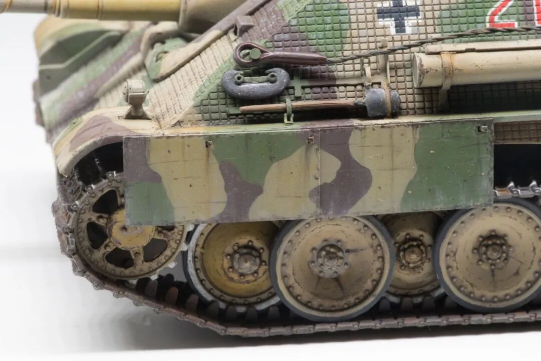 该车的机动性能也不错,最大速度达到55km/h;正面装甲的厚度与黑豹坦克一样,为80mm 55°倾角的装甲,可以抵御绝大多数盟军坦克的正面攻击,甚至是IS-2、潘兴坦克都无法有效的在较远距离击穿其正面装甲,M4坦克和T-34坦克更是无能为力。而它惊人的火力可以在2000米轻松击毁绝大部分的盟军坦克。
