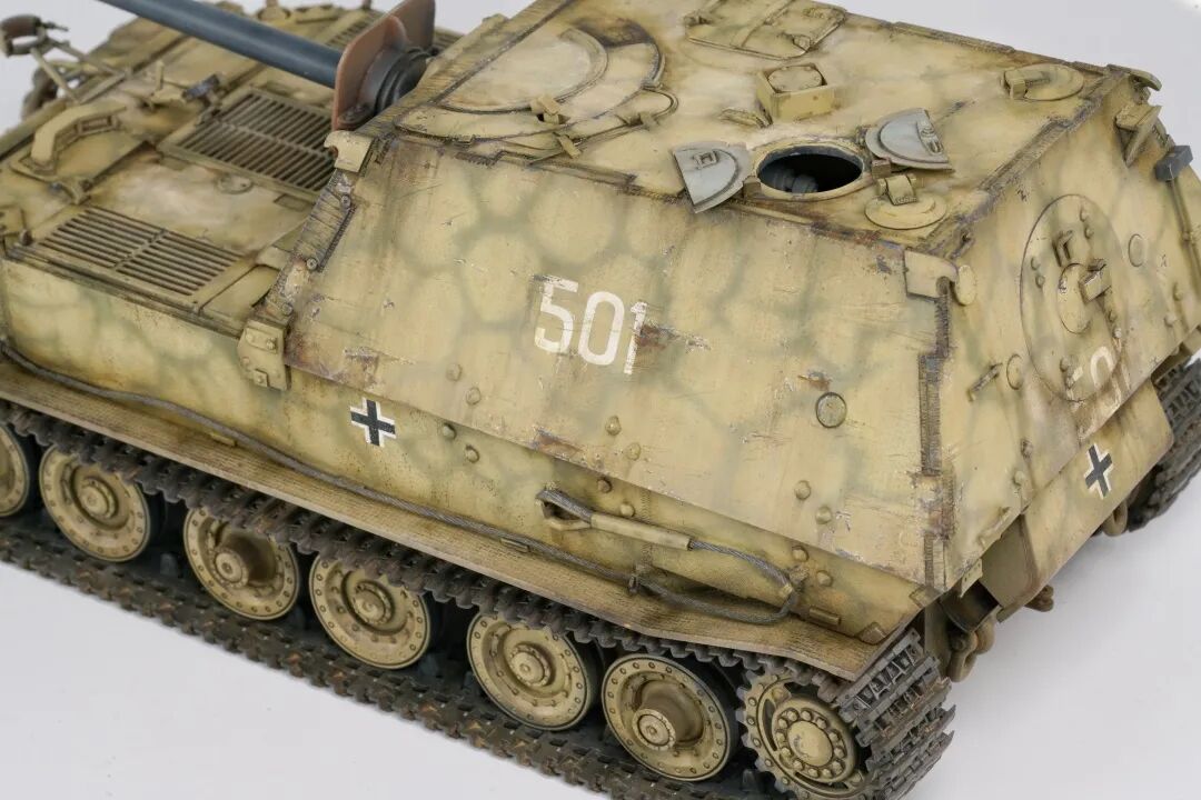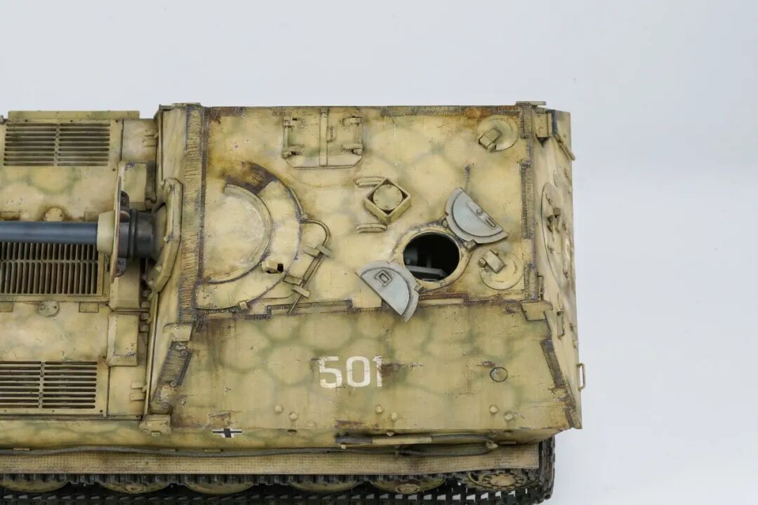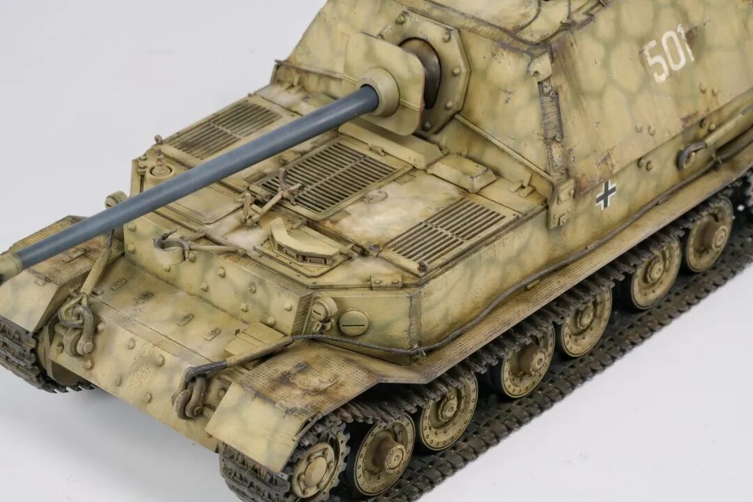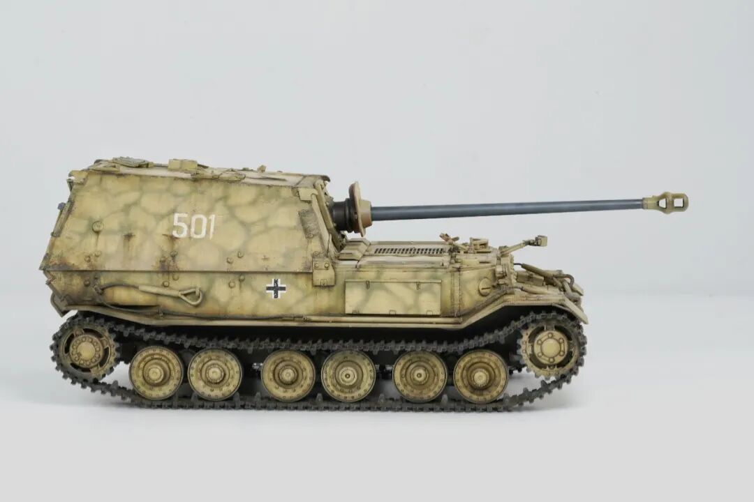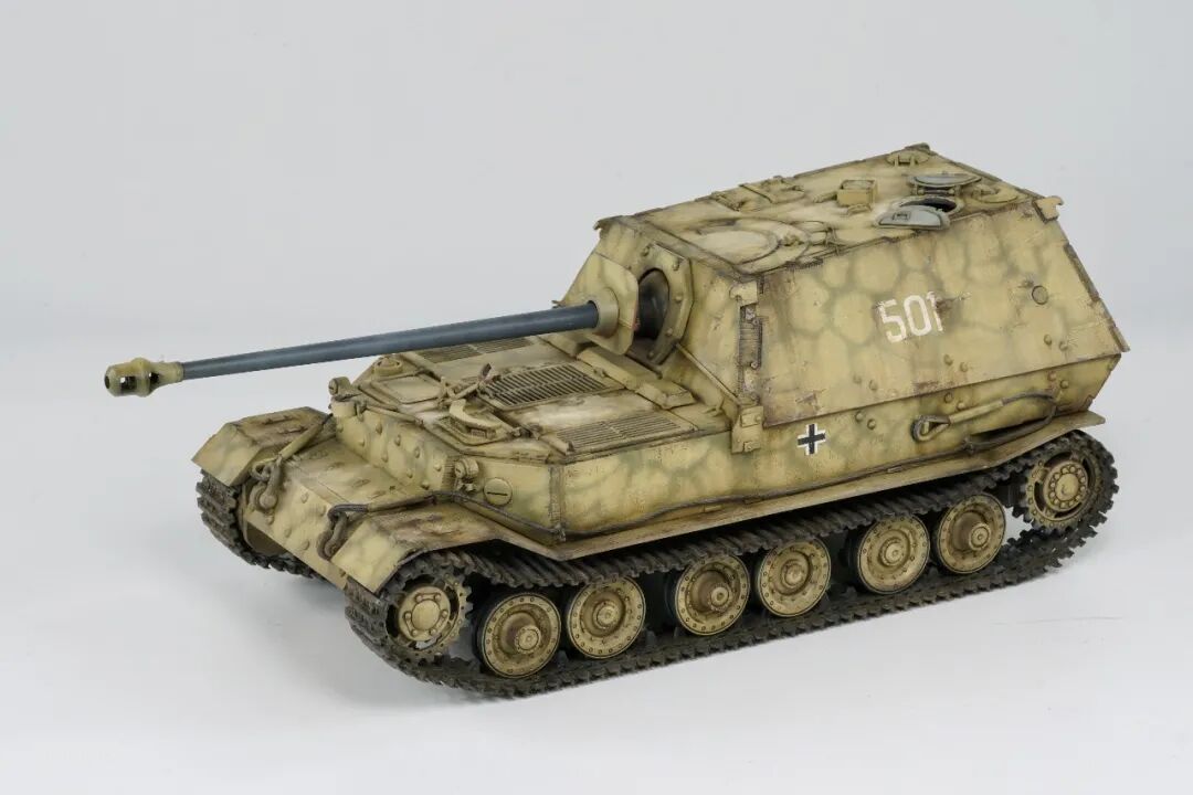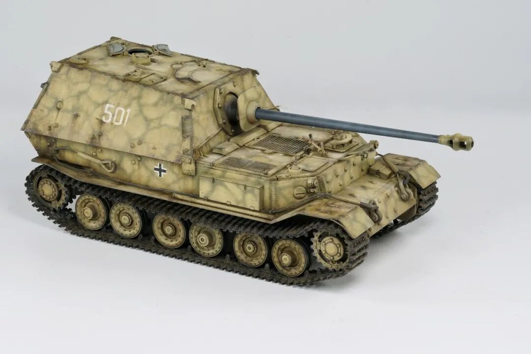 波尔舍公司的VK4501(P)样车被否决时,公司的生产线已经在生产VK4501(P)的底盘。未定型,先生产,这是战时体制的特点。这些底盘处于不同工序阶段,有的已全部完成,有的还在生产线上,共90辆。为了能充分利用这些底盘,公司的总设计师波尔舍博士向希特勒建议将这些底盘改装成重型突击炮。