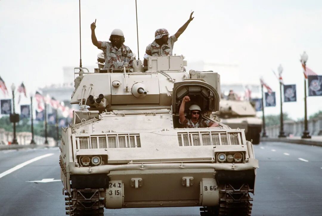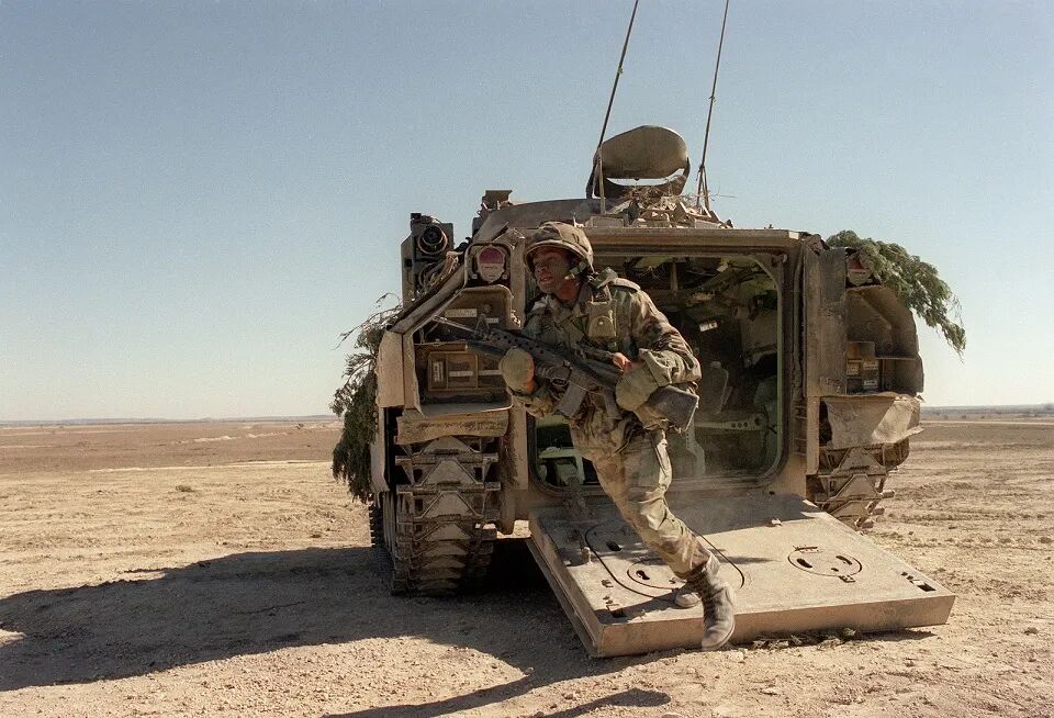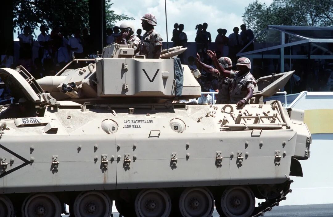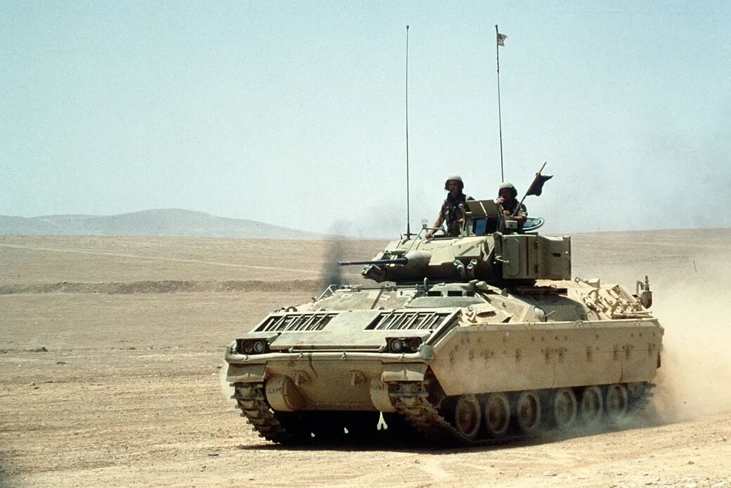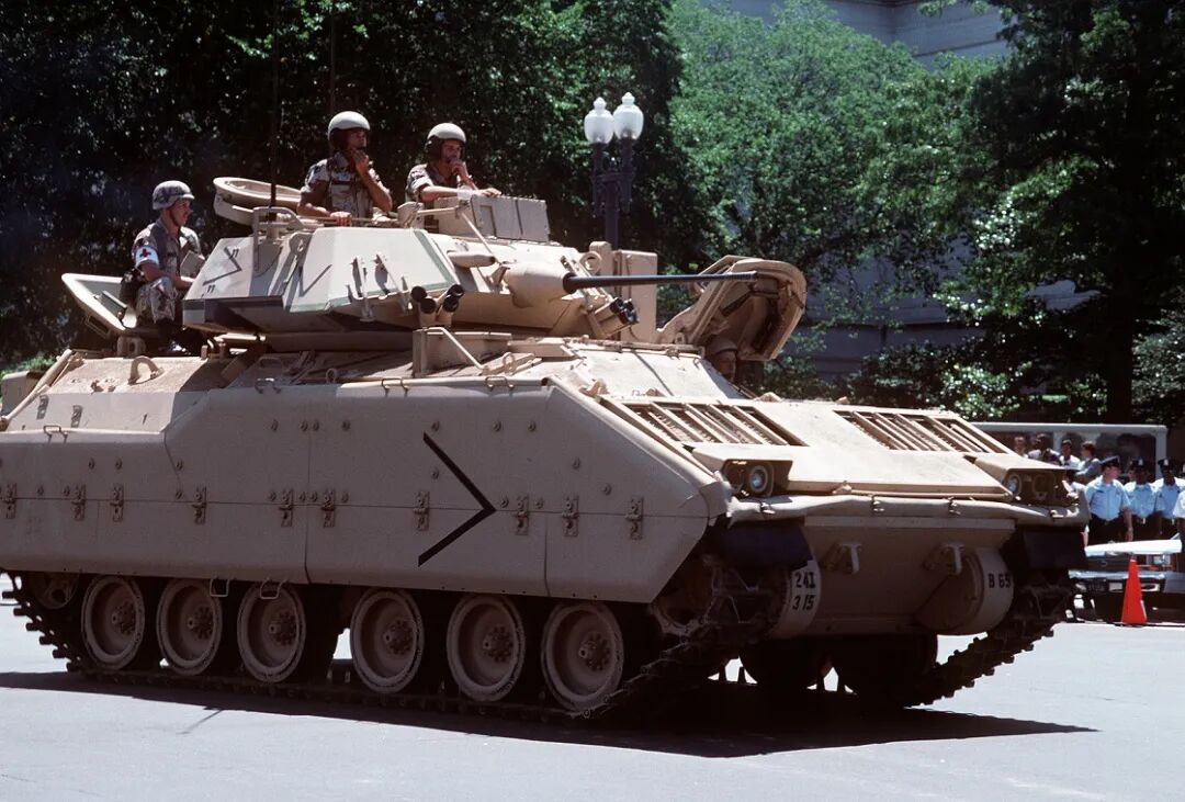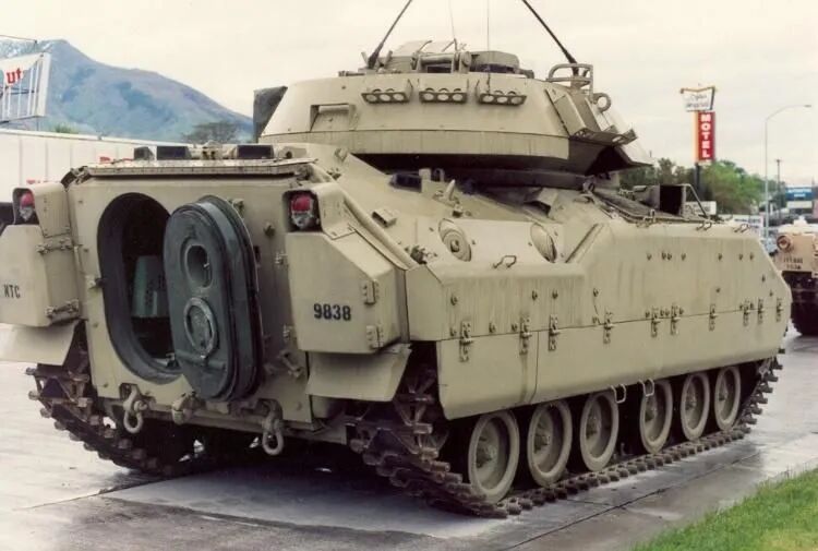 1978年12月,FMC公司向美军交出2辆XM2样车,首批生产型车辆于1981年5月交付使用,1983年3月M2型正式装备美军。该车车体为铝合金装甲焊接结构。车首前上装甲和顶装甲采用铝合金,炮塔前上部和顶部对车首前下装甲均为钢装甲,侧部倾斜装甲采用铝合金,车体后部和两侧垂直装甲为间隙装甲。