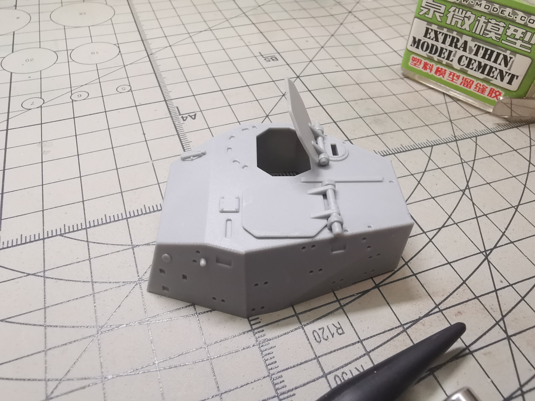炮塔舱盖,除了转轴处有轻微的合模线,用笔刀刮去就可以轻松处理。
