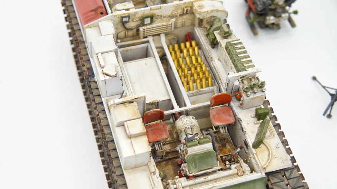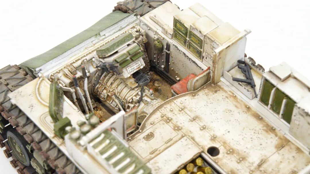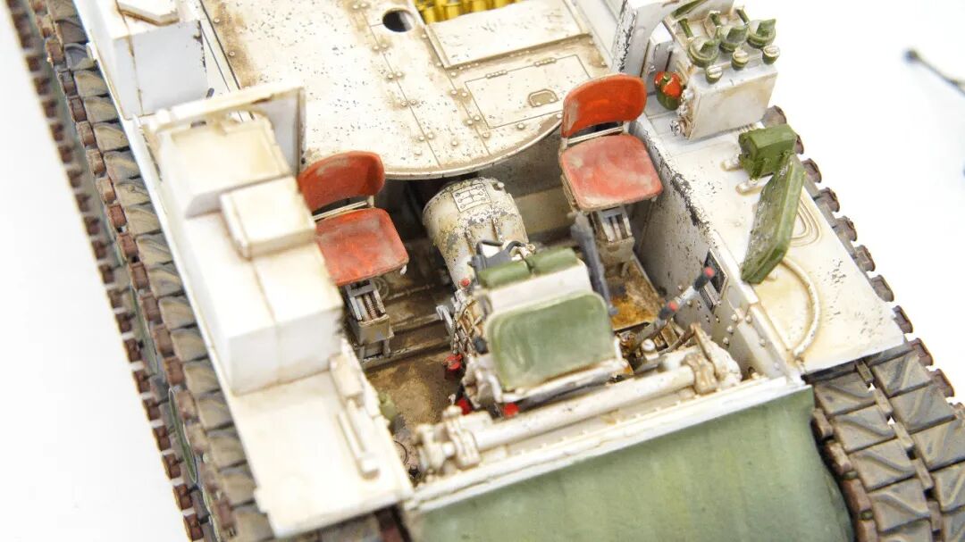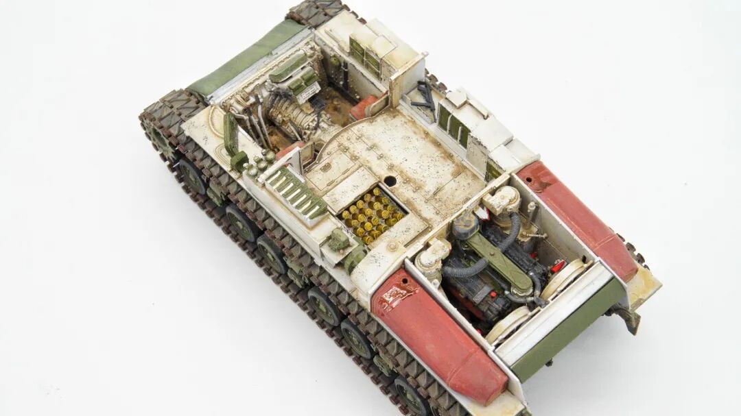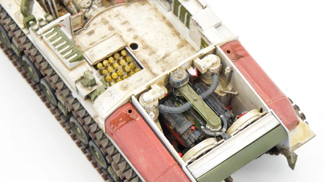 旧化的话为了在旧化之后履带也要保证一定的活动性,履带不能过度旧化,所以车体也并没有过度旧化,整车看起来还算干爽。