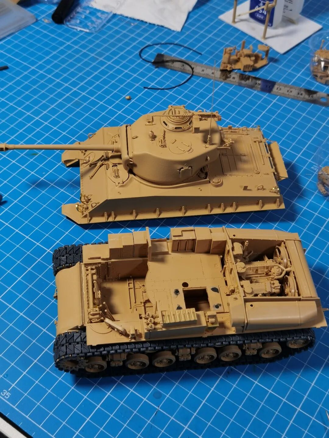 这一次做的是一个麦田的1:35全内构谢尔曼,虽然是第二次制作此板件,但是并没有失去新鲜感,反而动力更足,再一次做,可以尝试新的更大胆的素组手法,让组合度更好。
