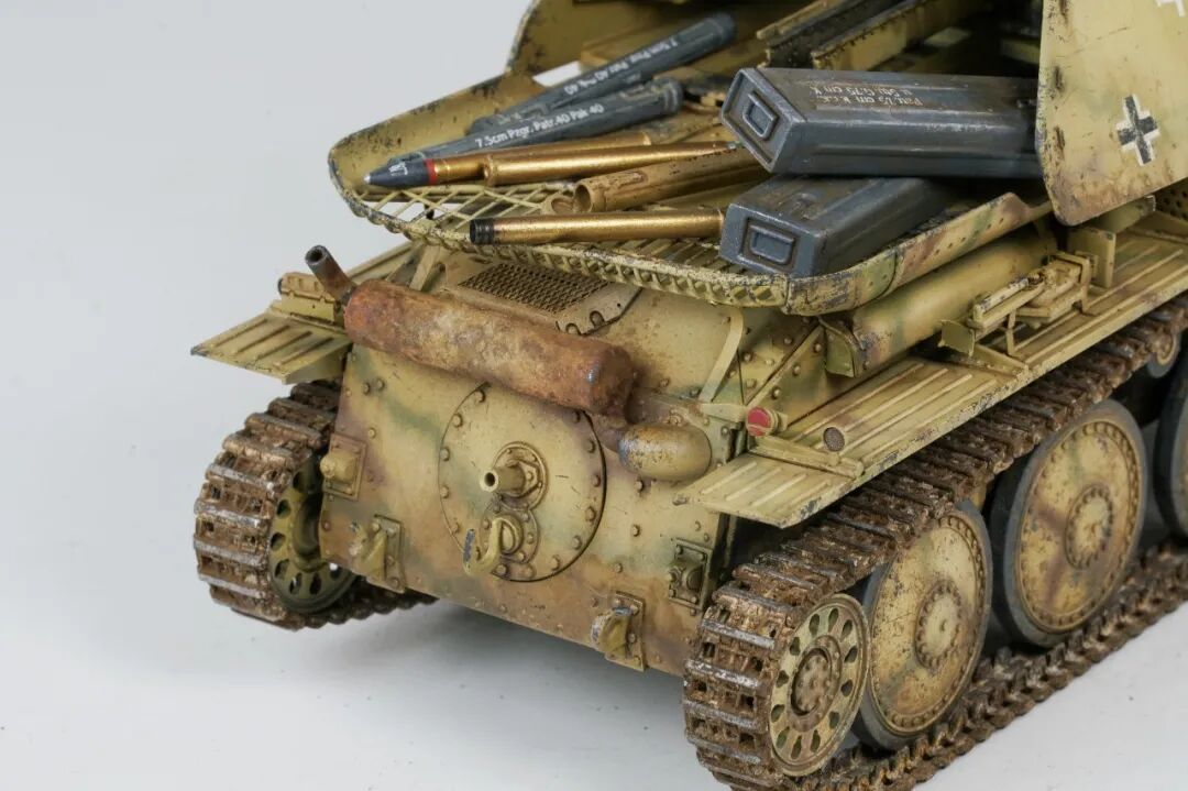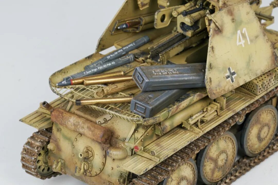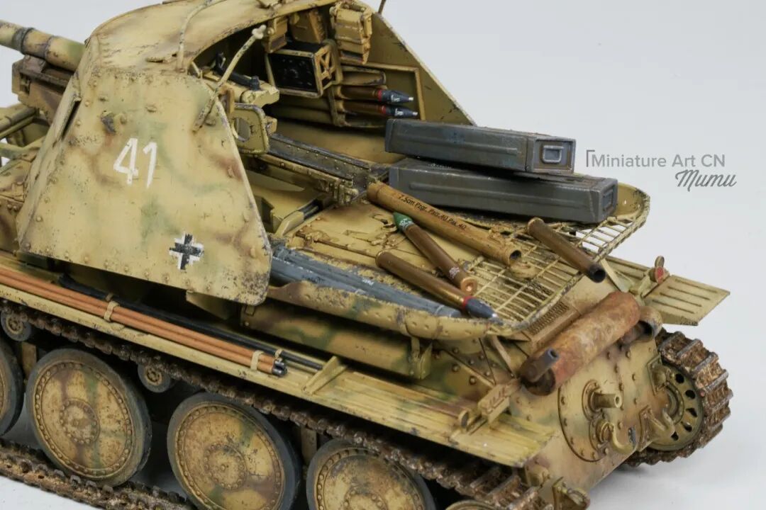 看了木老师之前分享的黄鼠狼三件套,小编以为那就是自己最爱的黄鼠狼效果了,没想到,22年新制作的黄鼠狼,效果更让小编着迷,这网状的黄绿迷彩实在是太适合这台小可爱了!车舱内的效果也十分迷人,小编好爱那几根炮弹的效果!
