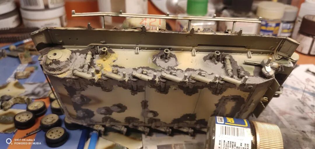 油画颜料褪色旧化,小伙伴们注意,做的时候附加装甲建议旧化完再装,我这死角旧化属实废了大理气了,还不容易做细致。