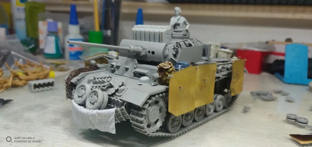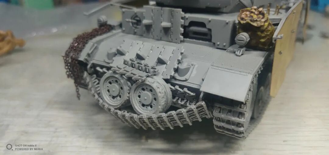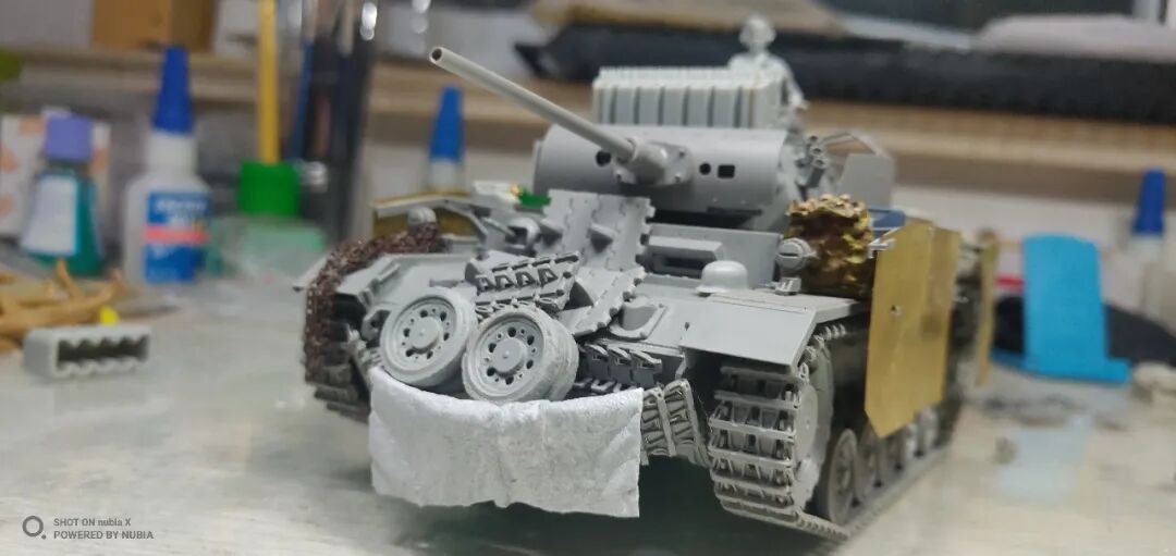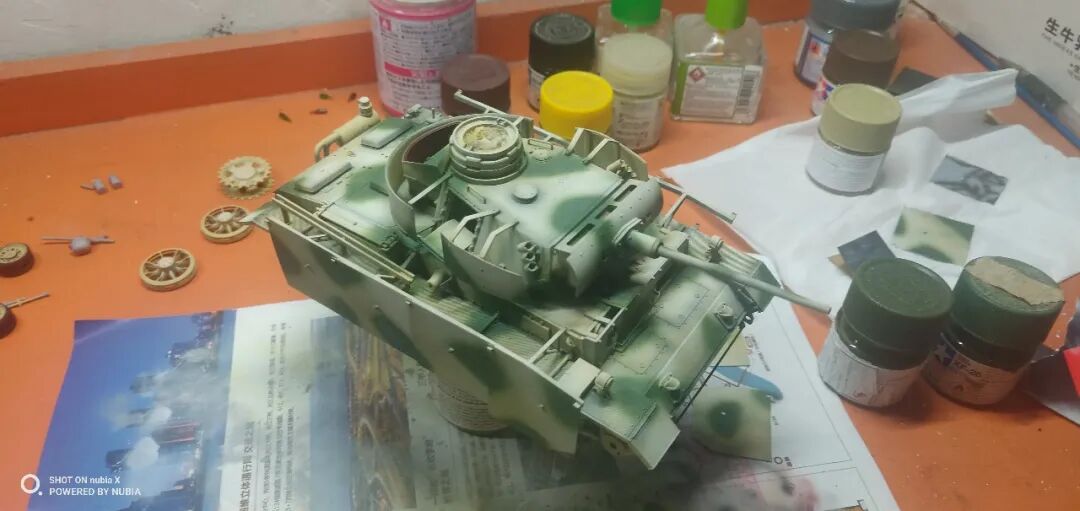 吐槽:一如传言,三花的快拼质量确实一言难尽。说是快拼,分件细不说,就是这合模线飞边属实拉了,我这还是首发版本,这有点说不过去了。履带减重孔飞边糊的修起来比较困难。值得注意的是,炮塔储物箱和炮塔附加装甲与底盘会干涉,上色后摩擦肯定掉漆,我后期把炮塔座圈卡扣剪了就可以了。博士灯管线需要自行添加下;另外就是炮塔组合度有点尴尬,不知道是不是个人原因,最后大力出奇迹给整上了,再糊点补土完事儿;最后一个槽点,套件没有给透明件~