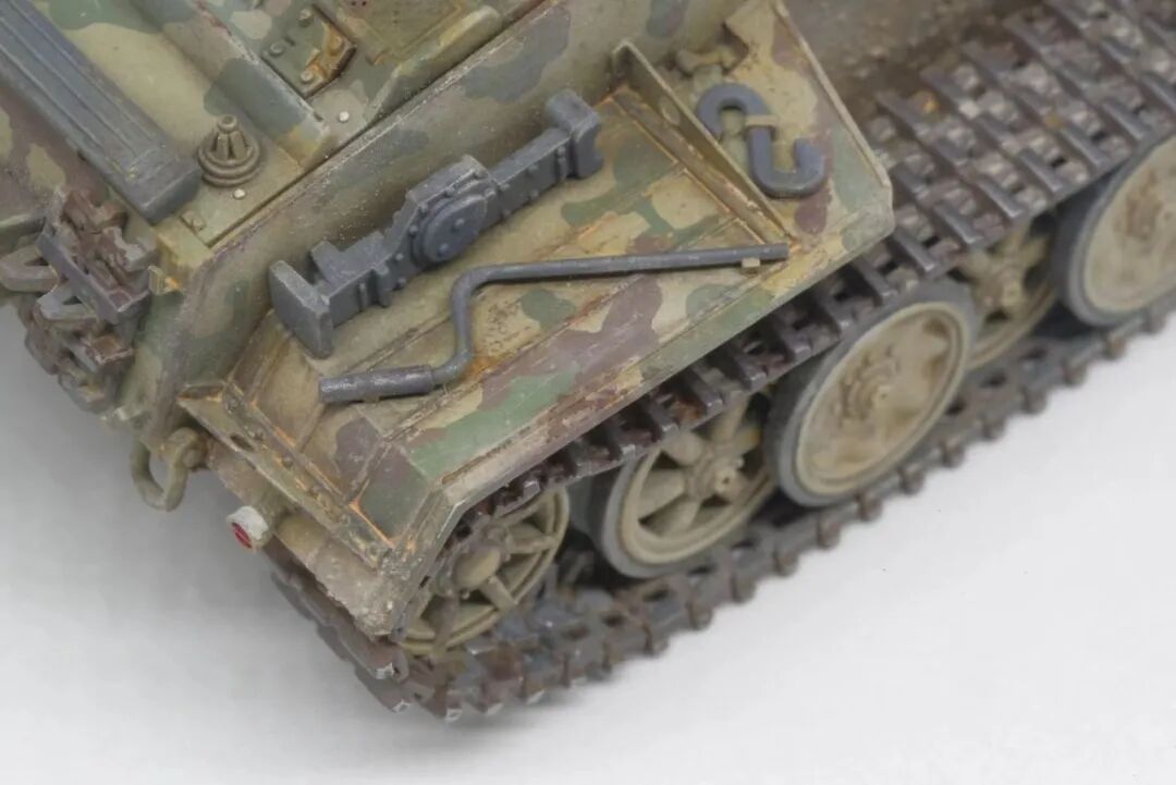 车体正面装甲厚度有30mm,车体重量达到11.8吨,主武器为一门KwK38 20mm机关炮(主流弹种为PzGr穿甲弹和PzGr.40钨芯穿甲弹,初速度分别为780m/s和1050m/s,百米穿深为23mm和40mm)。