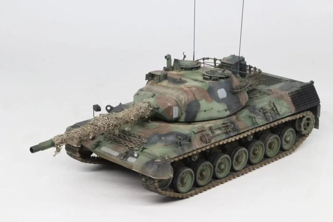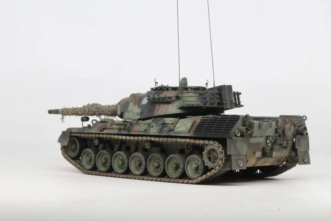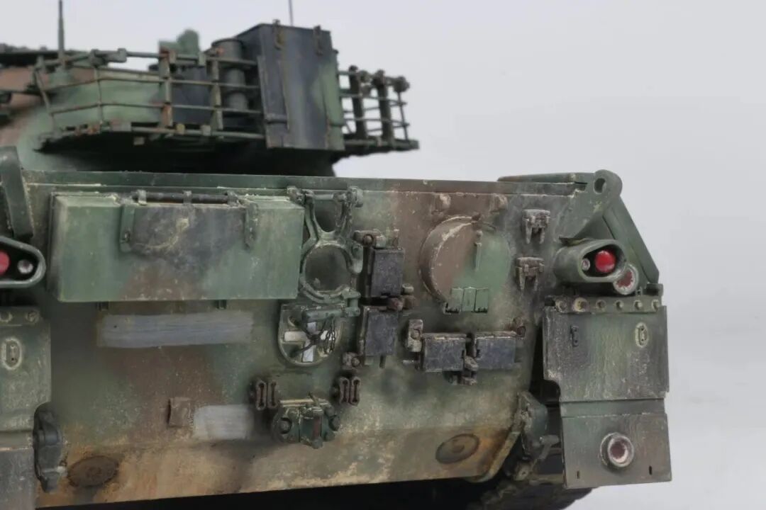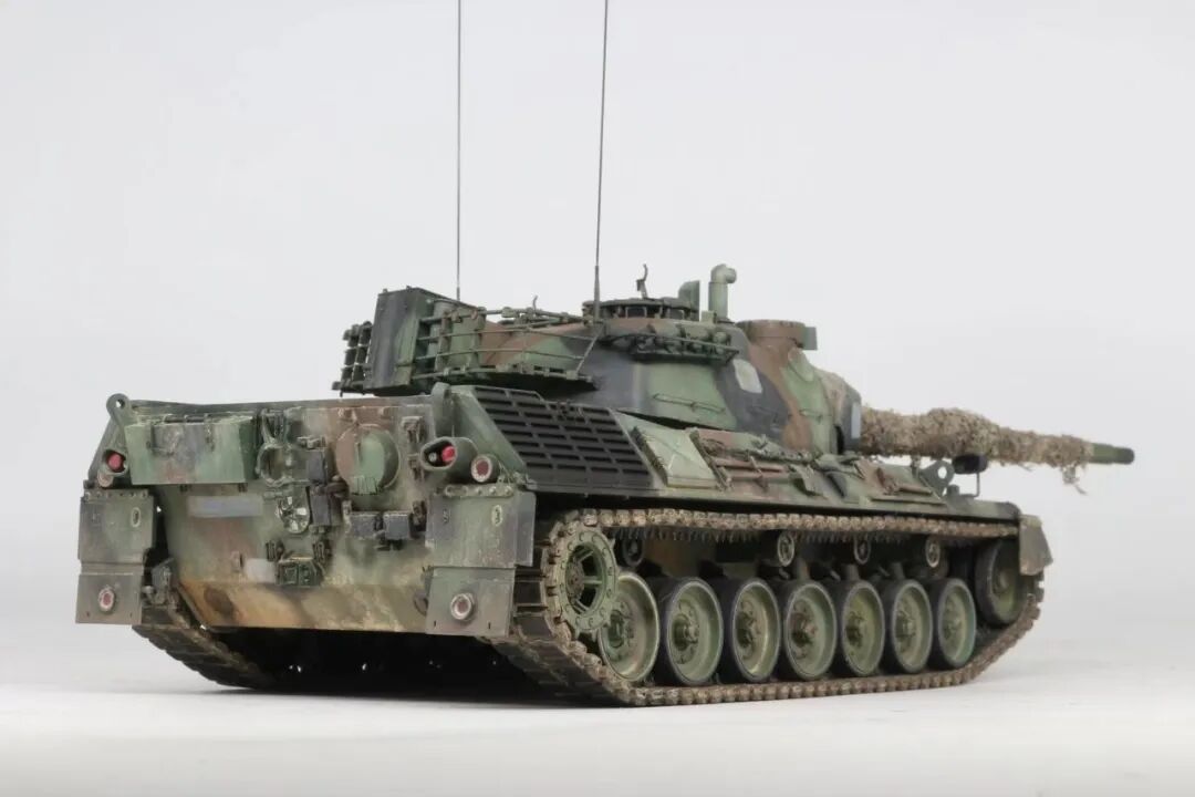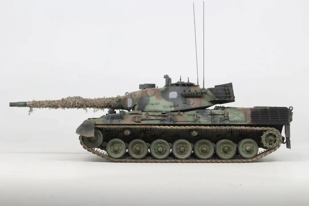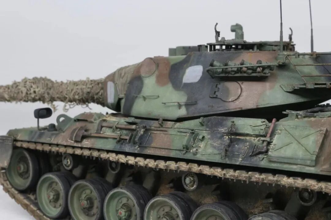 今天的豹1A6,好像是一款试验车型!小编搞不到资料啦!大家自己搜搜吧!板件呢,作者用的是meng的豹1A5,配了一个从小号手A4上杀掉的一根120火炮~