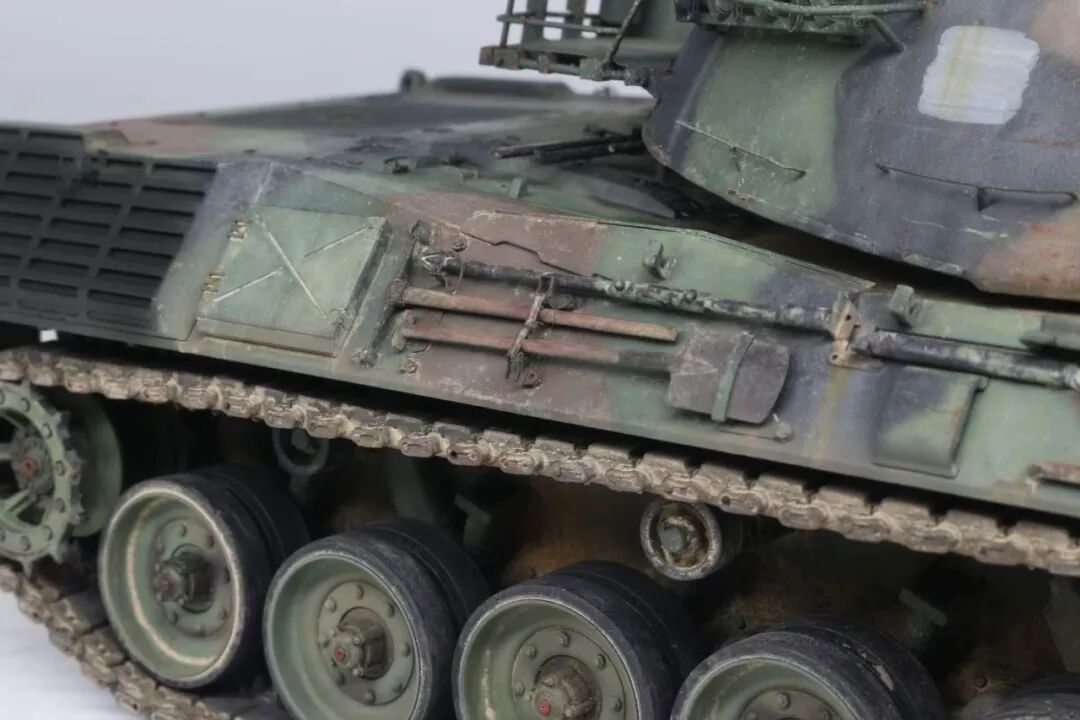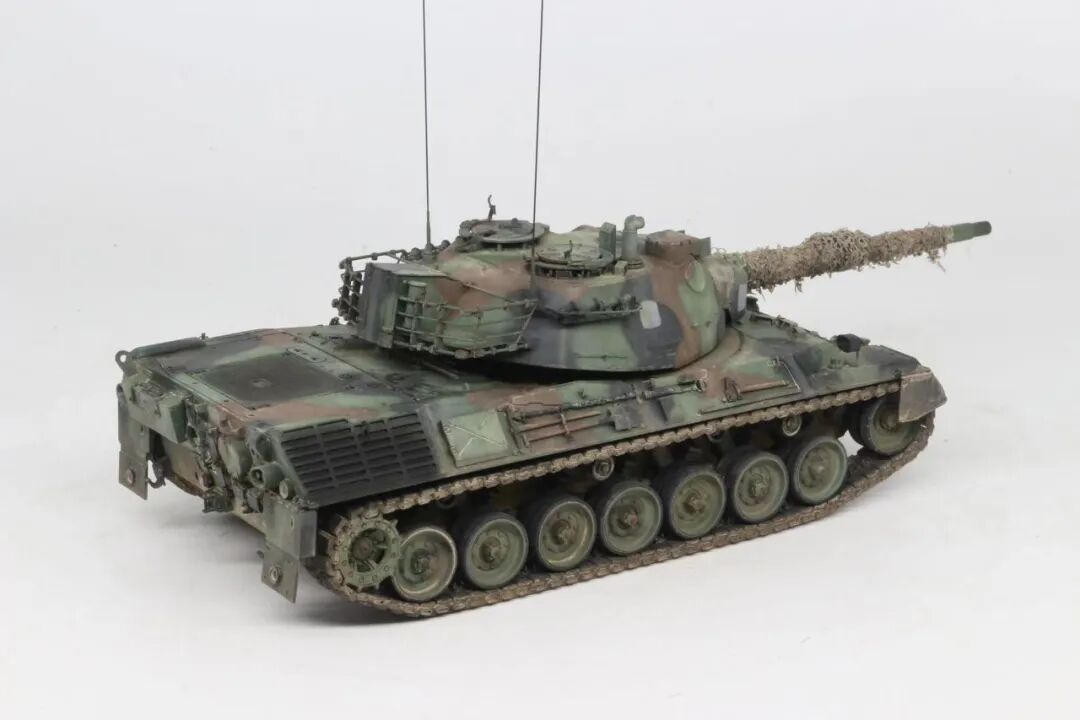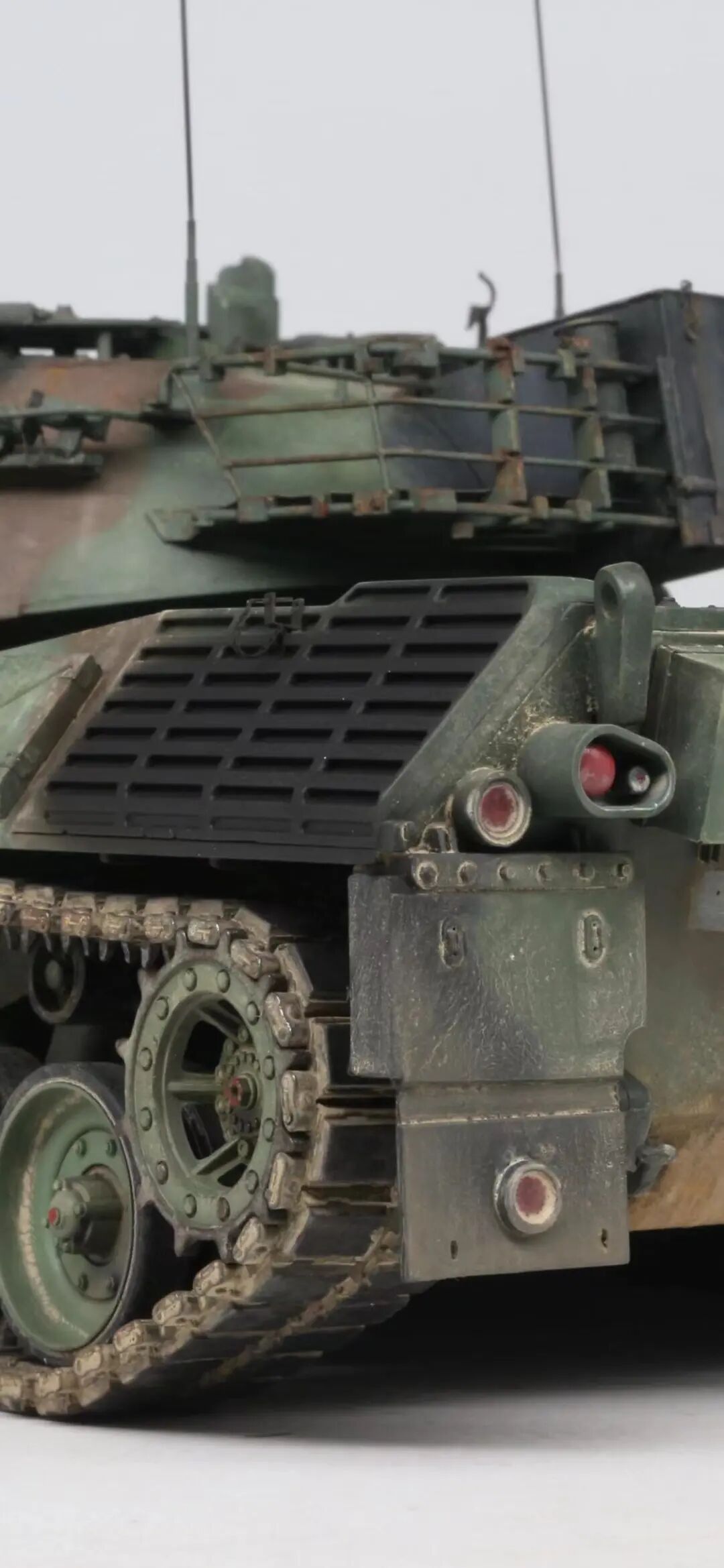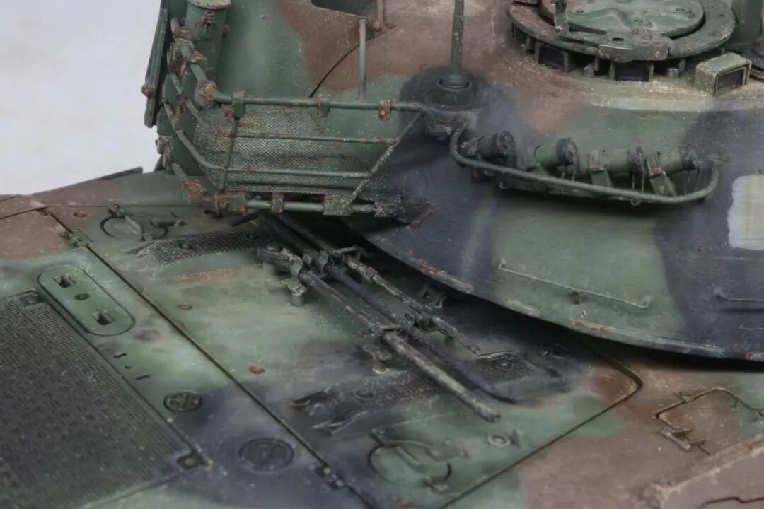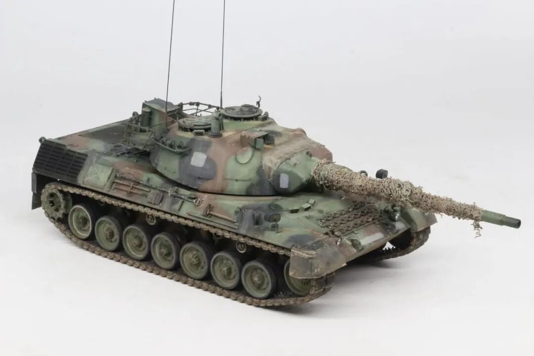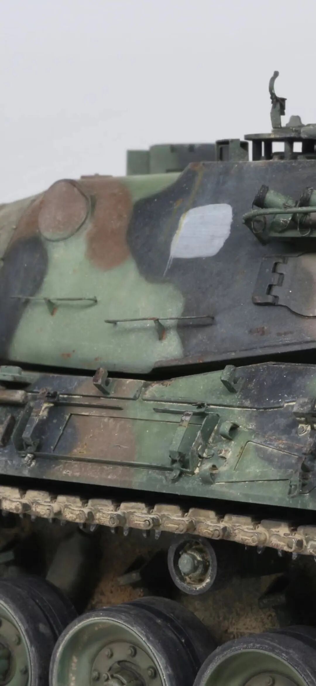 今天的豹1A6,好像是一款试验车型!小编搞不到资料啦!大家自己搜搜吧!板件呢,作者用的是meng的豹1A5,配了一个从小号手A4上杀掉的一根120火炮~