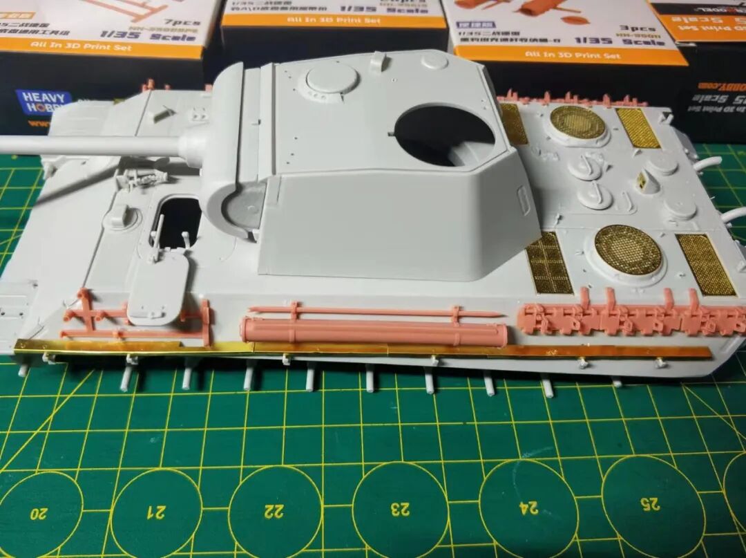 另外啊,裘老师这款用到了重磅模型的树脂改造件,看起来履带、挂架等等(那个圆筒是收纳桶吗?),据说这套产品的细节不错。不过啦,小编觉得,这玩意肯定是比原件表现效果要好,而且比起蚀刻片来说,真的是会降低制作难度,有没有像小编一样不会窝蚀刻片的朋友,可以考虑搞一套哦!