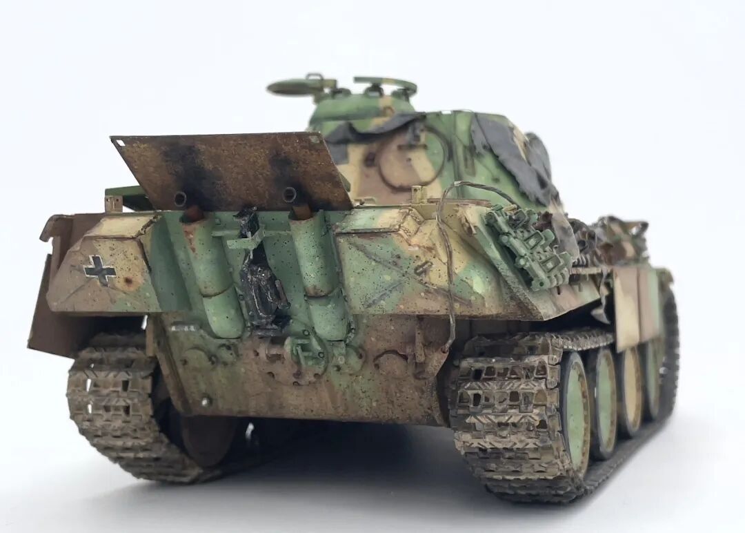 今天的主角豹G是豹式坦克的最后改型,在二战期间,豹G生产数量比前其它所有“黑豹”坦克型号的总和还要多。