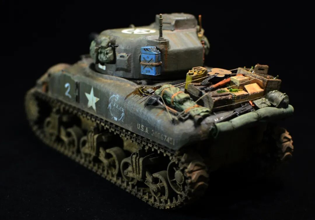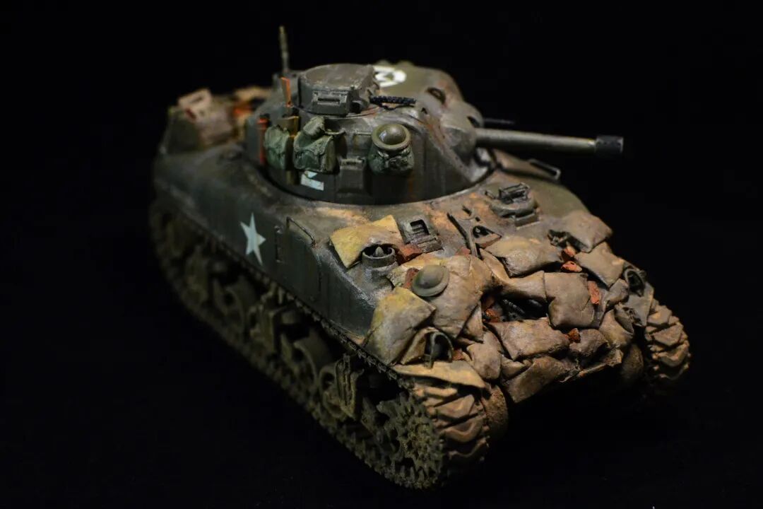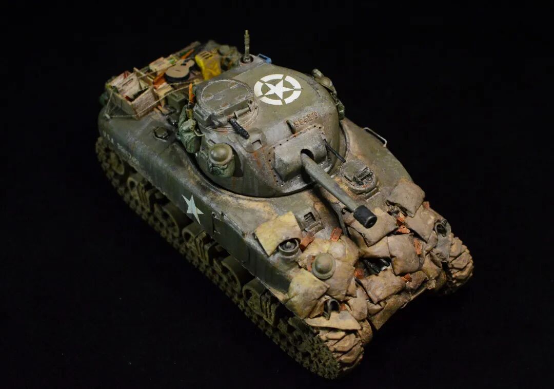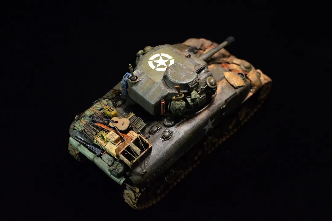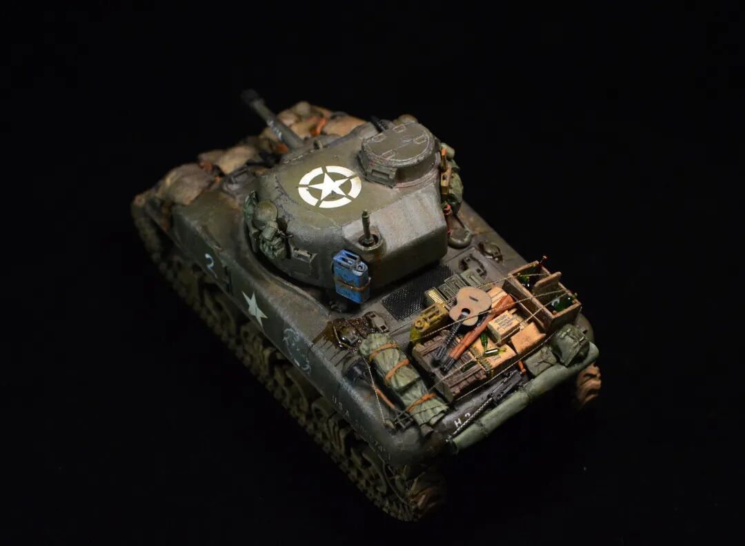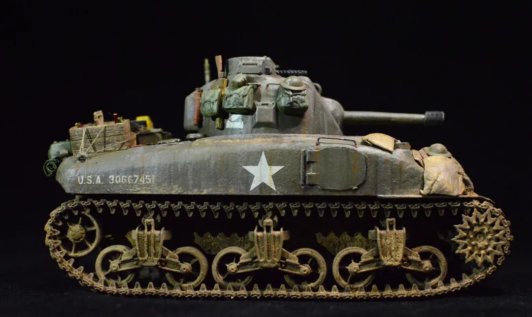 因为是试验车 所以yy的是美军刚参加二战时候的样子。车上的钢盔用的是m1917 不是英军盔。这车标志性特征就是机枪多 车体前面并列三个 同轴一个 车长指挥塔一个。本来还想在炮塔上架个.50 想了想有点过分