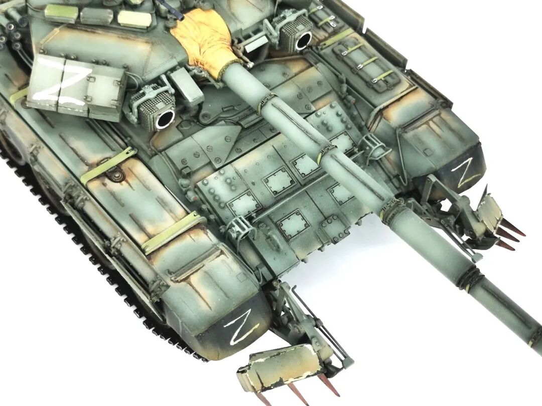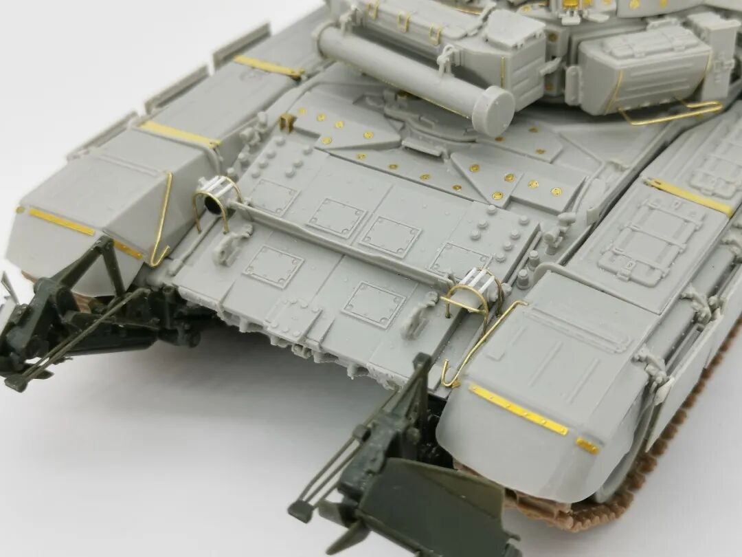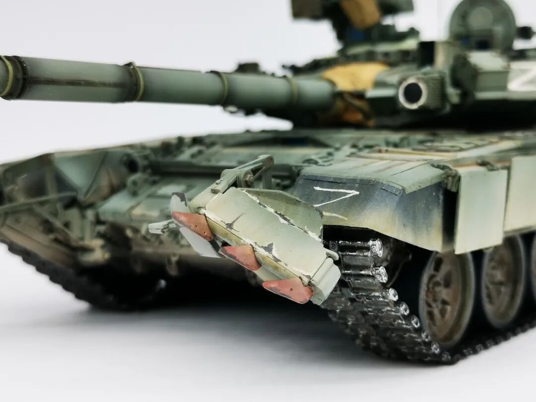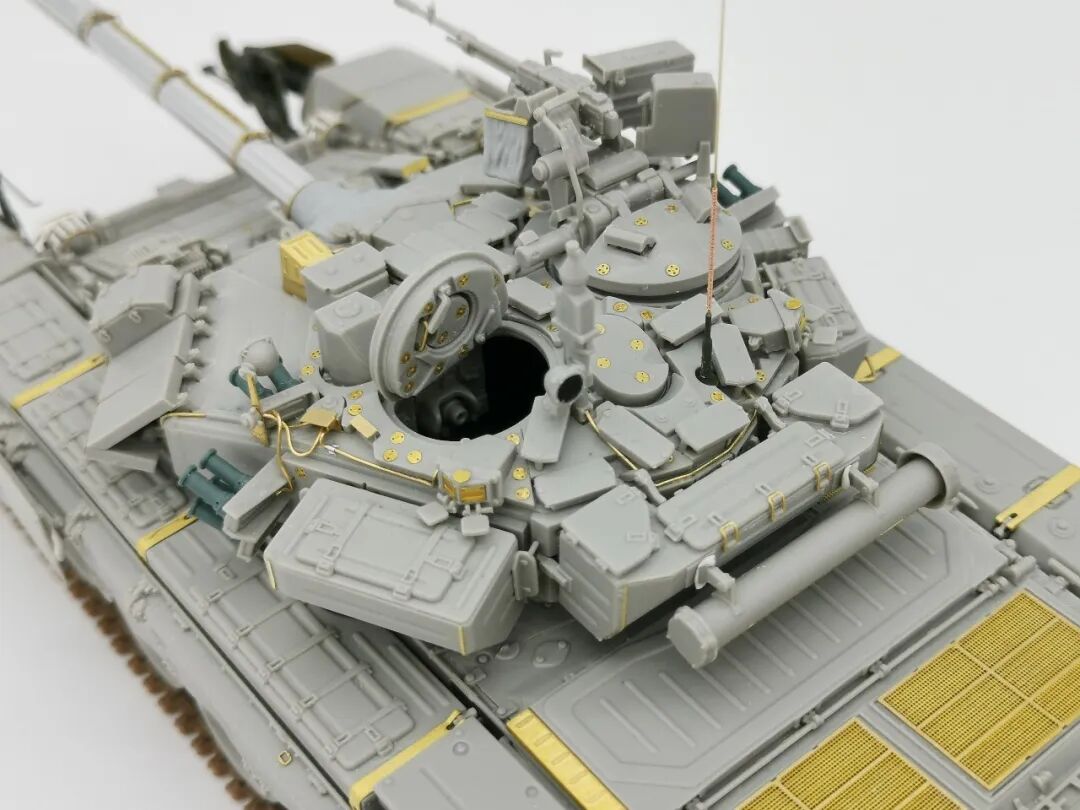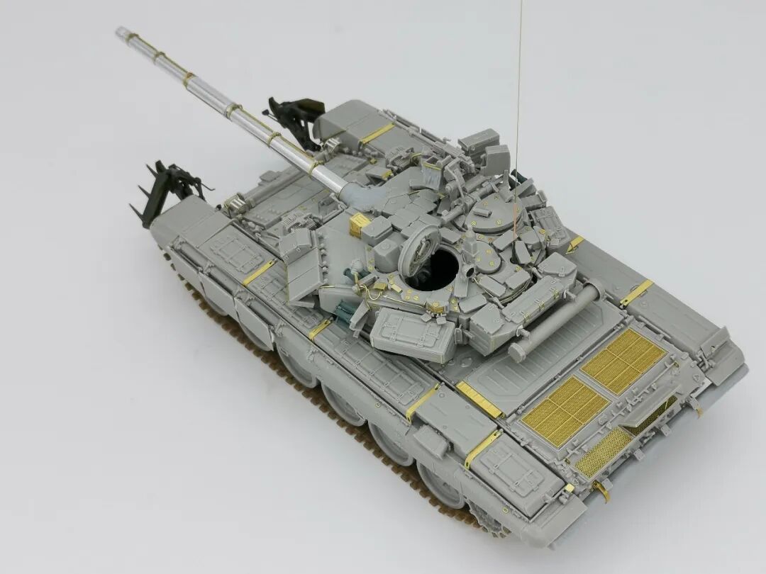 今天的主角T-90A坦克(1999年),为T-90坦克的继续发展,也是T-90A坦克的原型样车,主要改进是采用新型履带、焊接炮塔、V-9252发动机、热像仪、深水涉渡设备等。当然啦,也是小编最爱的一型T-90。