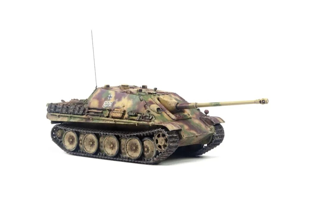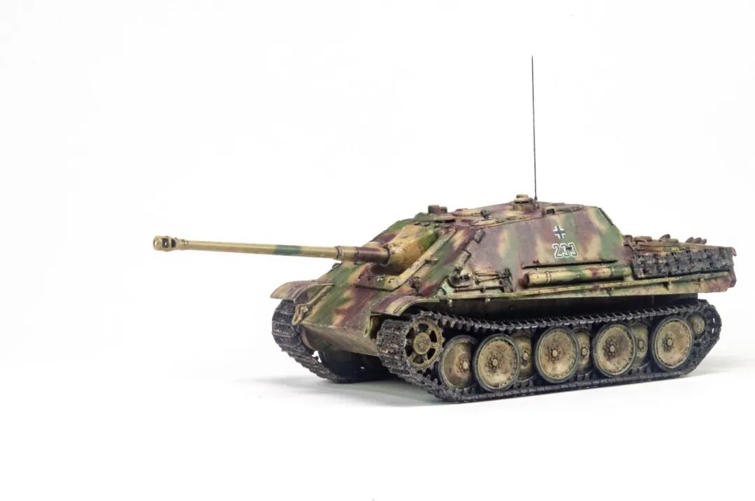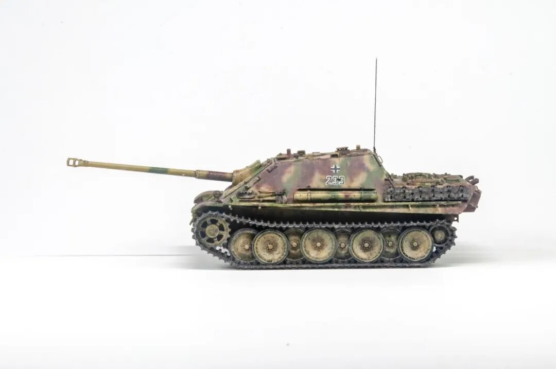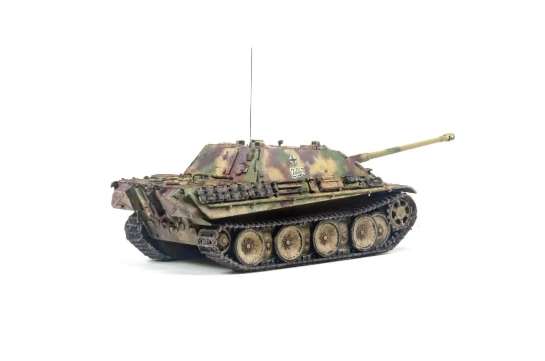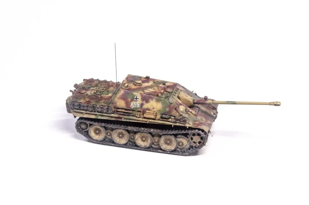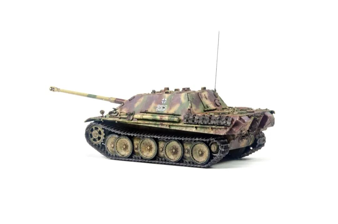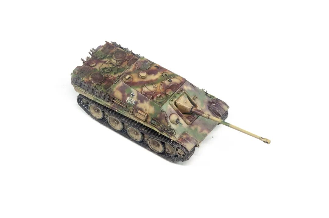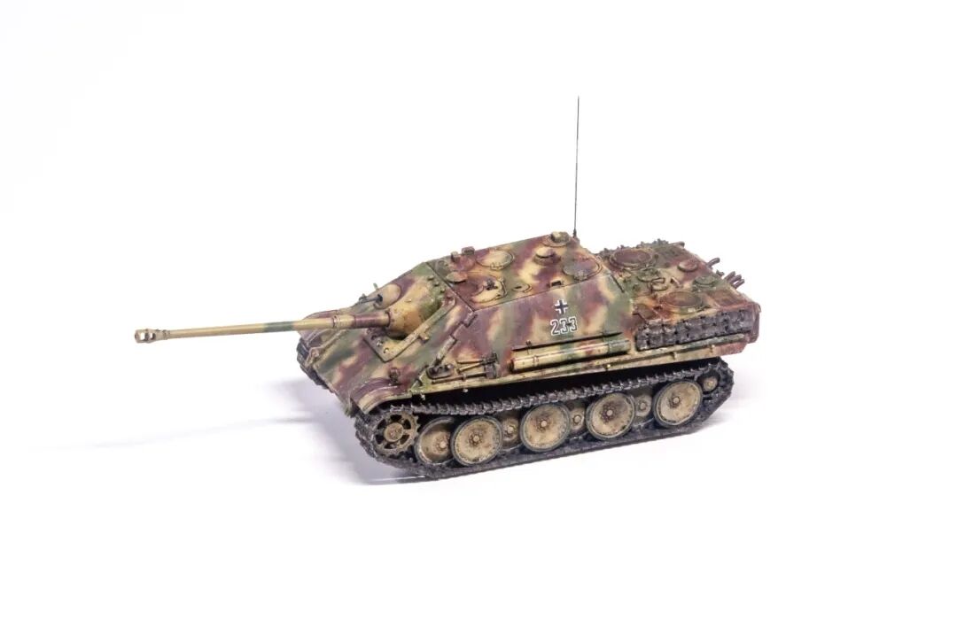 该车的机动性能也不错,最大速度达到55km/h;正面装甲的厚度与黑豹坦克一样,为80mm 55°倾角的装甲,可以抵御绝大多数盟军坦克的正面攻击,甚至是IS-2、潘兴坦克都无法有效的在较远距离击穿其正面装甲,M4坦克和T-34坦克更是无能为力。而它惊人的火力可以在2000米轻松击毁绝大部分的盟军坦克。