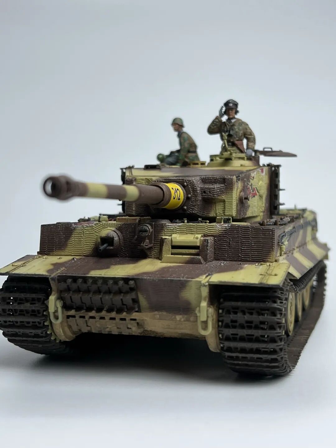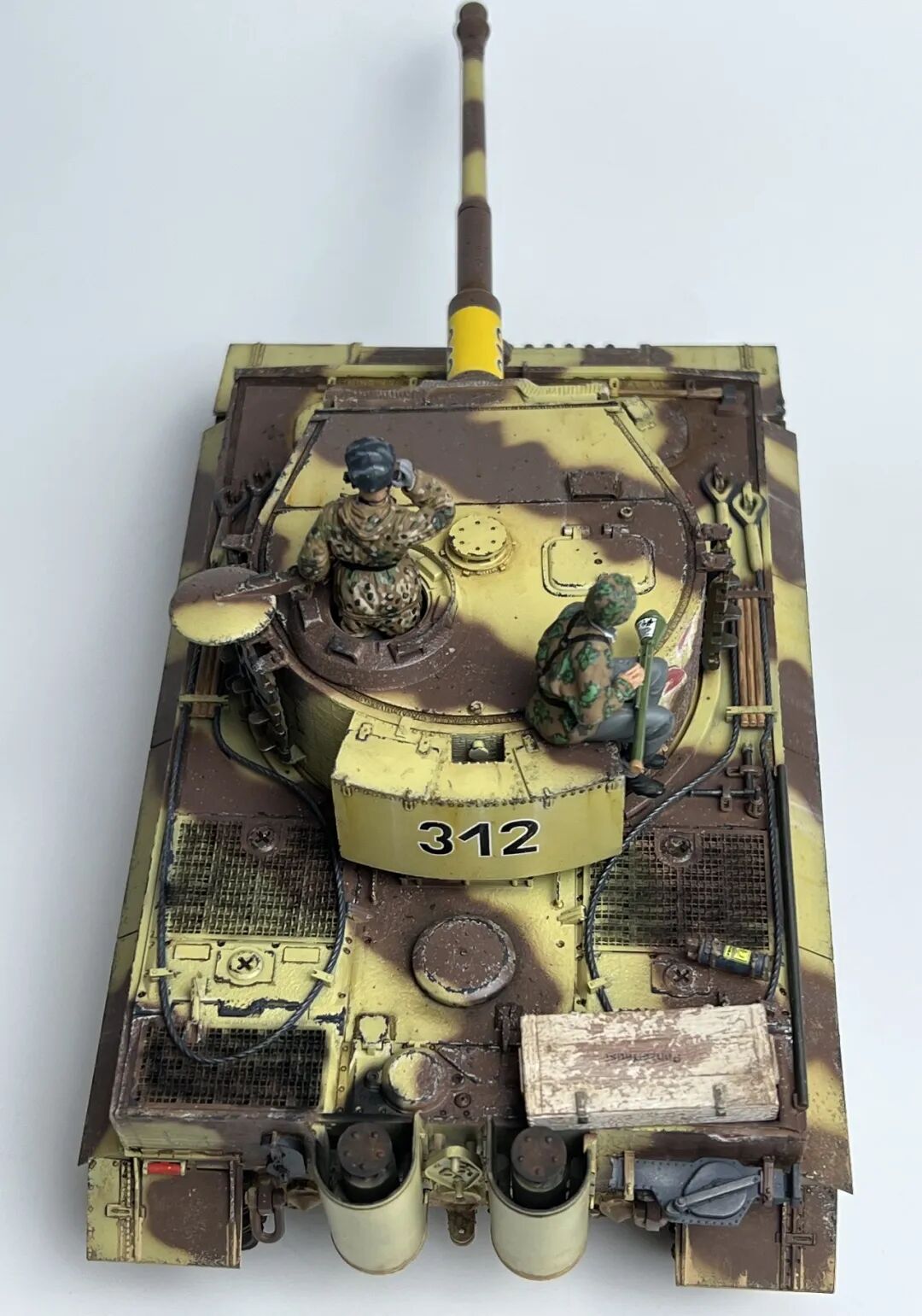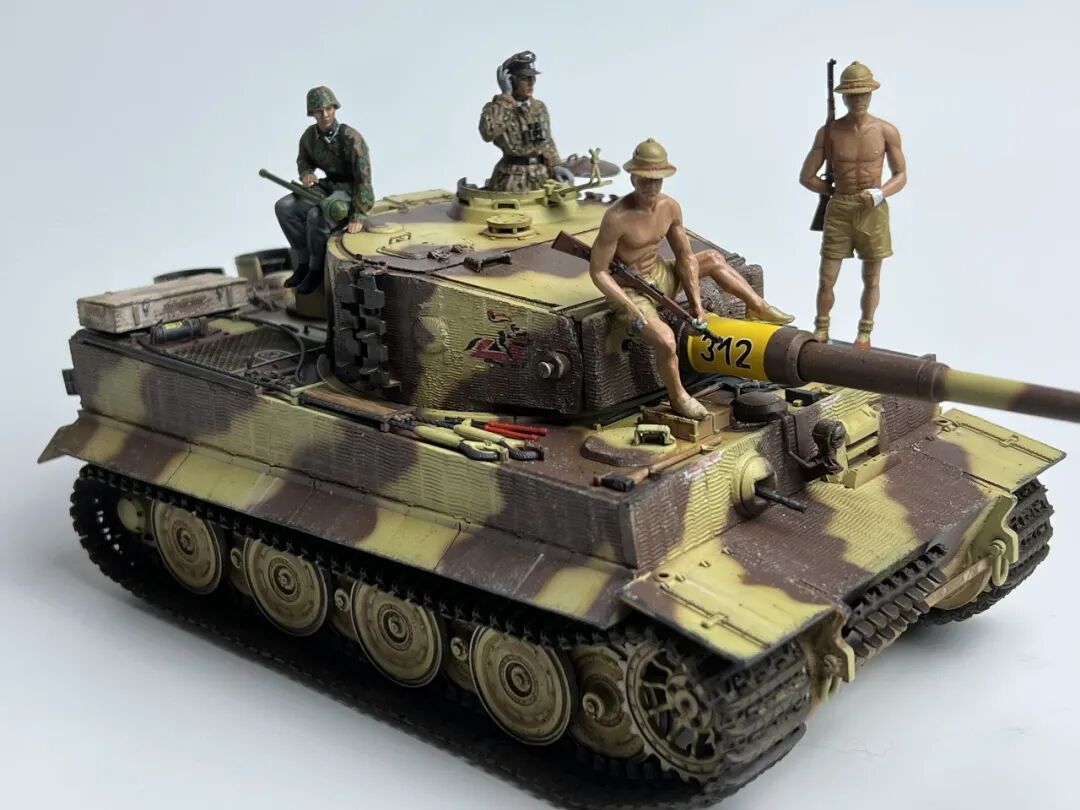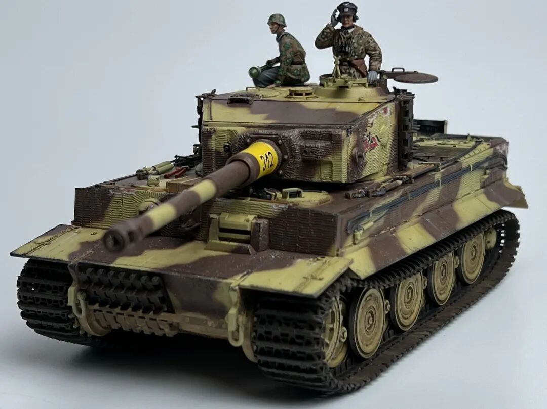 作为回坑的第一个坦克作品当然要选择大名鼎鼎的虎式坦克啦!套件选择了小号手的后期型虎式,不得不说小号手的虎式以及虎王都是便宜大碗,非常适合练习技术(做坏了不心疼)。由于号手给出的防磁贴过于规整,我选择了使用水性防磁膏配合麦田虎贡献的刮片自制了防磁装甲(第一次刮防磁请多多包涵哈),涂装选择了极具特色的505营312号车,做了些轻度旧化(太久没做坦克了已经不会旧化了)然后配上祖国牌树脂兵人以及边境四号H中给出的塑料兵人,完全无考证属于是快乐随心模型。