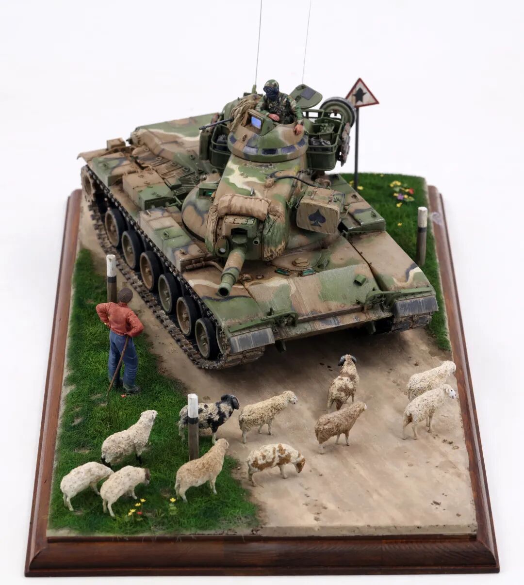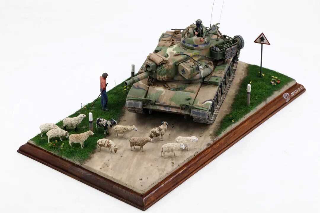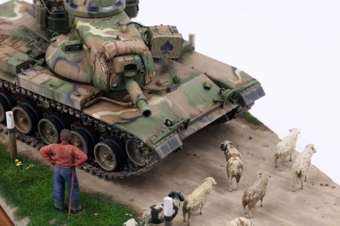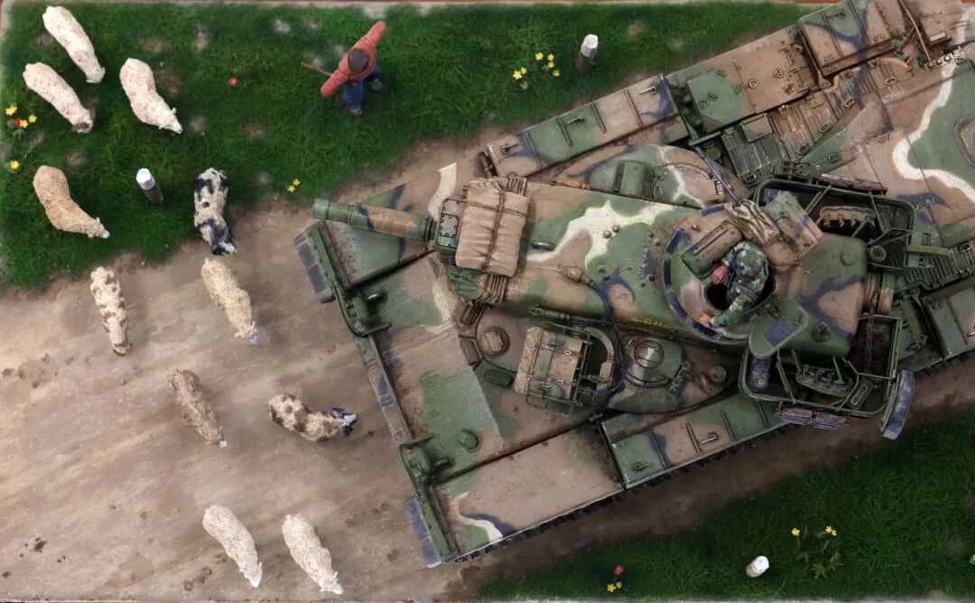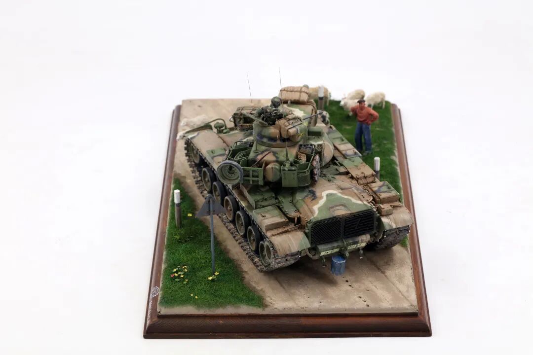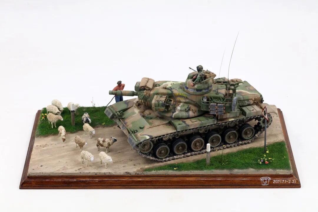 不评价了,今天的作品小编太喜欢了,m60a2这车本身就超级的科幻,一身迷彩加持更是韵味十足,非常有味道的一台车,经吴大师之手,配一个非常有故事性的小景,一下就高级了,实在是太赞了,好看到没得说!