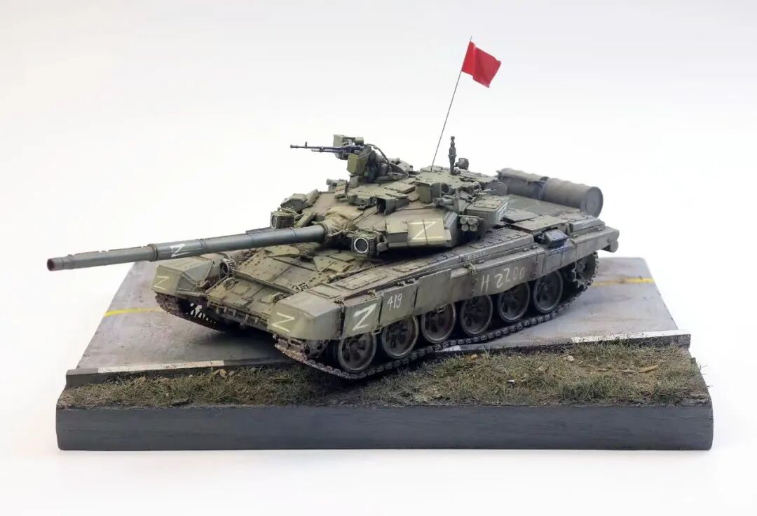 T90是俄罗斯在T-72坦克基础上改进的坦克型号,由于T-72坦克在海湾战争中的拙劣表现,由当时的俄罗斯总统叶利钦亲自命名为T-90.T-90坦克设计紧凑,价格适中,俄罗斯在T-72坦克的基础上使用了其高端坦克T-80的先进技术,外形典型的特征就是炮塔前方的两个红色的远红外探照灯,看上去像是坦克的大眼睛。