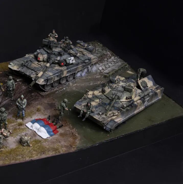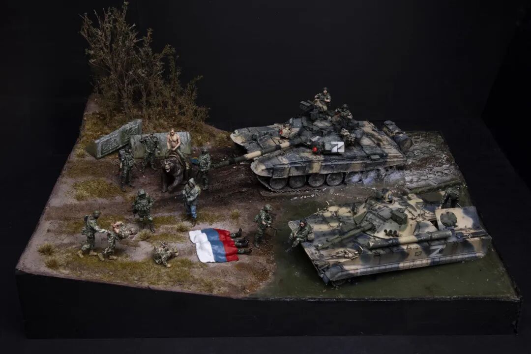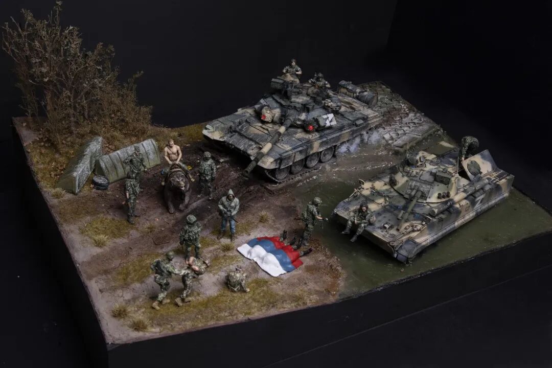 今天又是一件很高级的场景作品,战车、俘虏、牺牲,都很提神的元素,地台制作也很不错,水的颜色真舒服。
