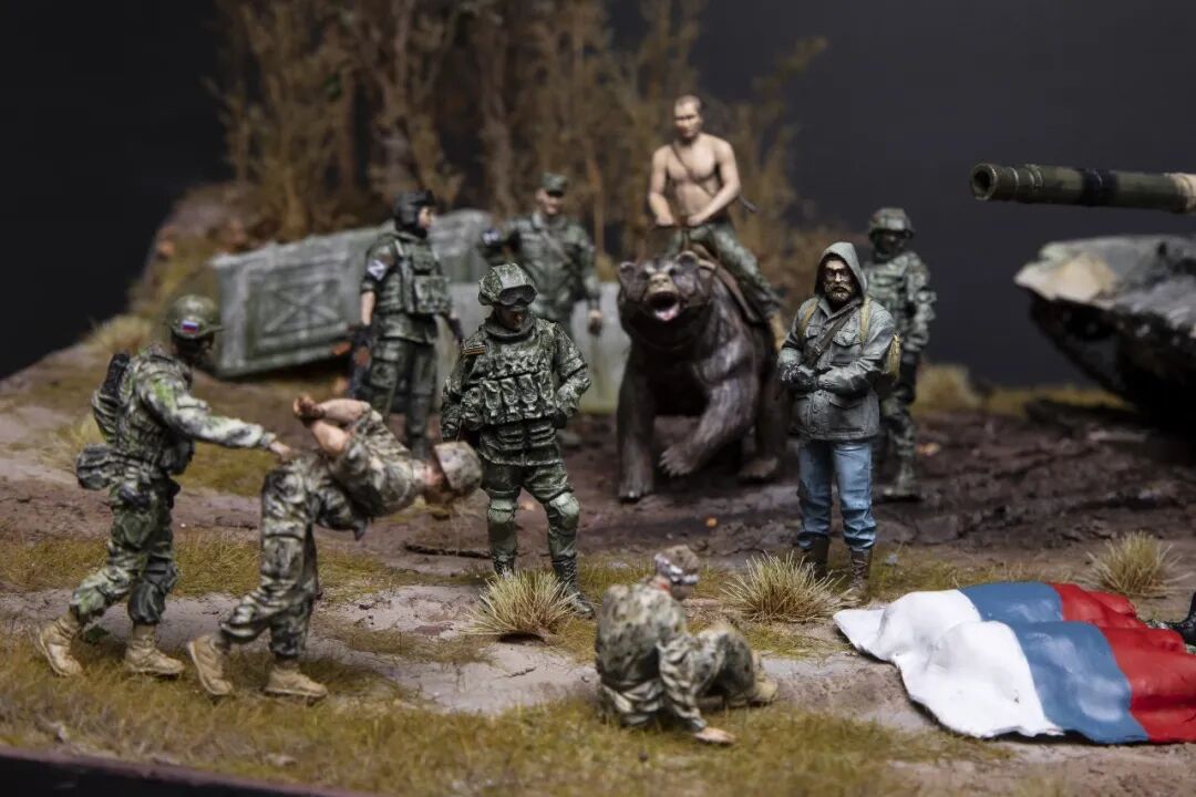 光膀子骑熊的普京挺有意思的,就是跟周围环境稍微契合的差一点,没有其他元素融合的那么好,而且啊,士兵们真的都不怕熊吗?有人在我旁边牵条狗我都得躲一躲~