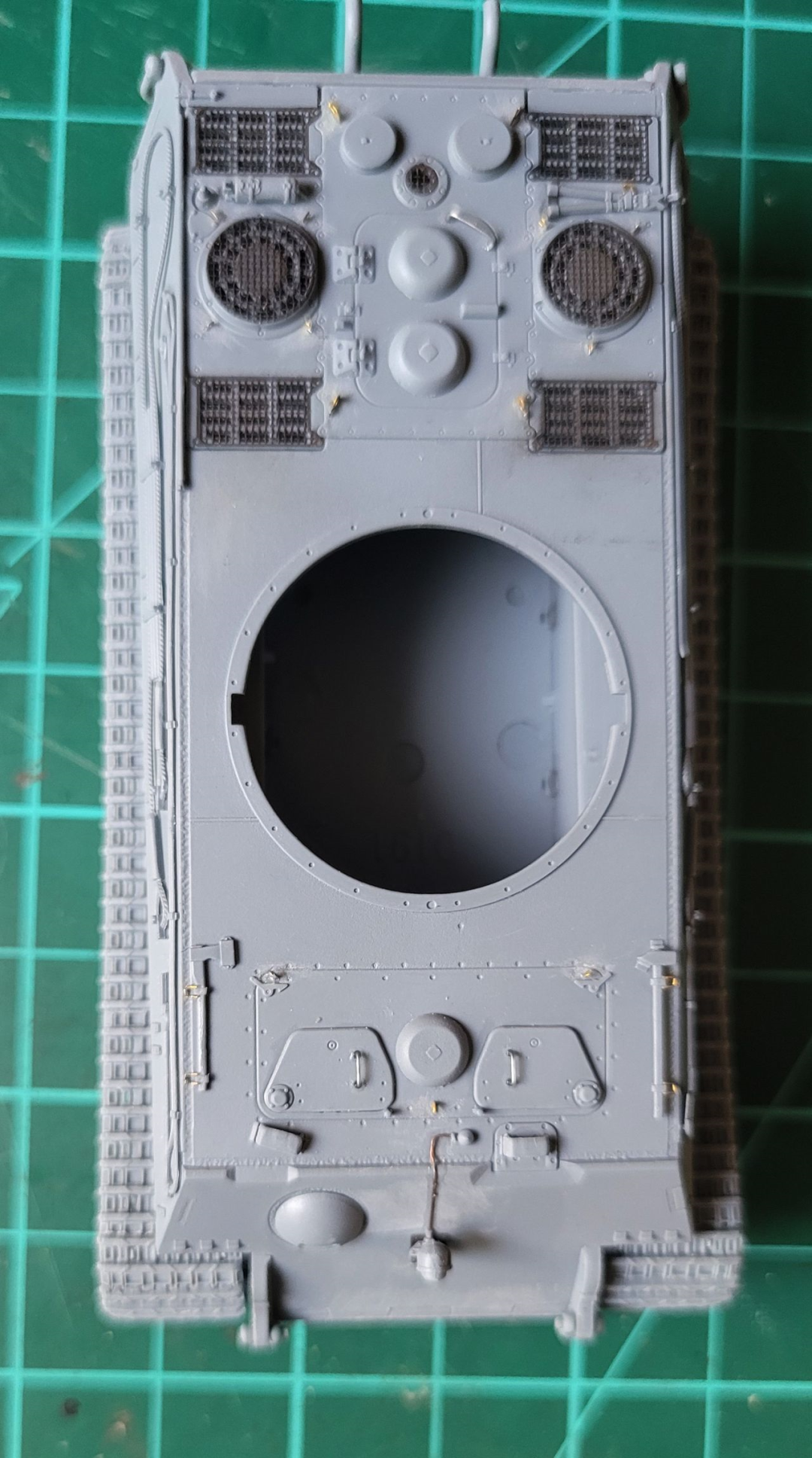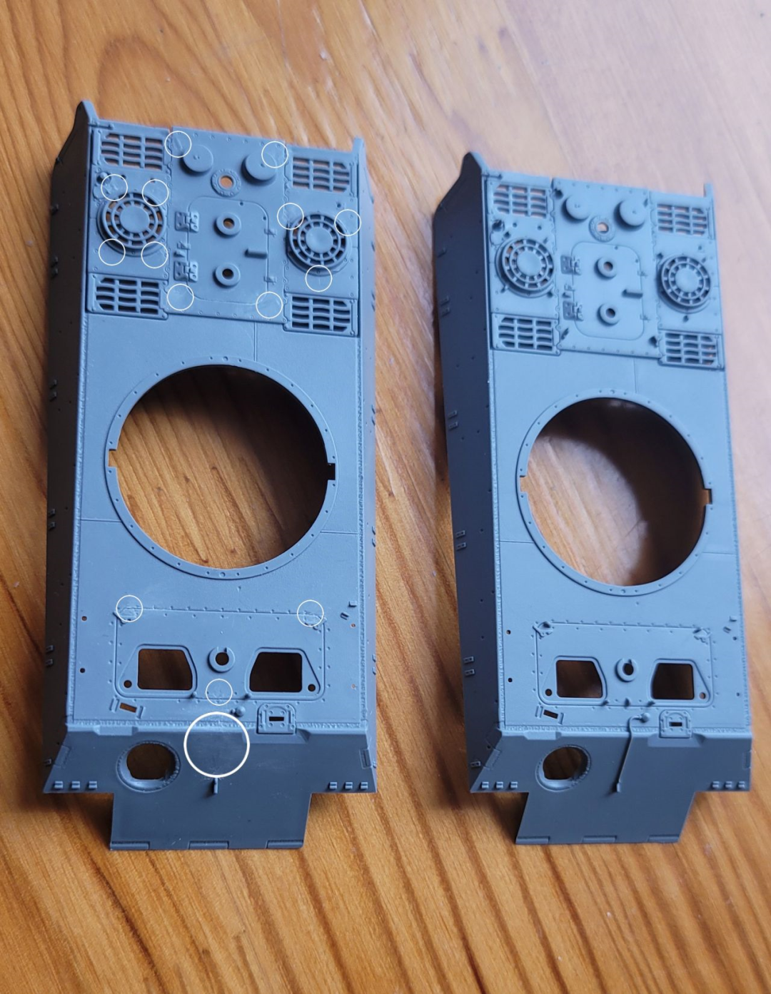 素组需要注意的是:前后挡泥板折页处需要修正否则不好安装工整;底盘扭杆半独立造成一平处理比较麻烦,反正都半独立了为什么厂家不一次成型呢;小蚀刻片的替换对我的视力是一种折磨;想工整组好履带需要很多时间打磨大部分履带板件,建议打印履带替换。