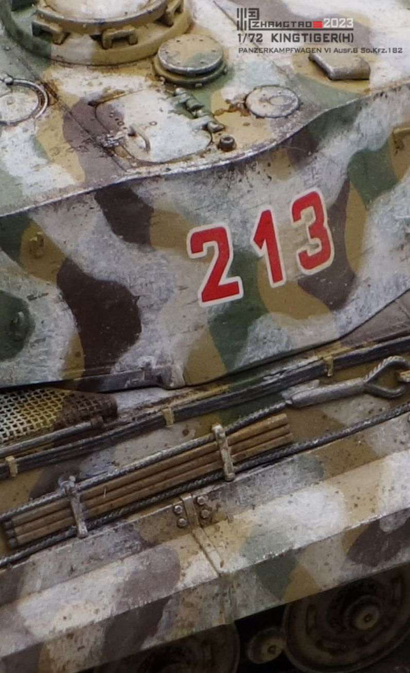 第二遍白色强调层次和色差,战车顶部和前部相对更白些,算是强调立体感吧,加划痕,这个步骤会有反复,不合适擦掉即可,然后郡油消光保护后旧化即可;