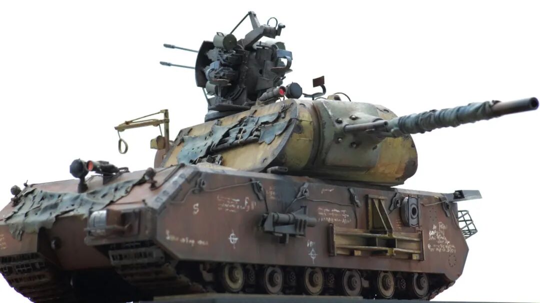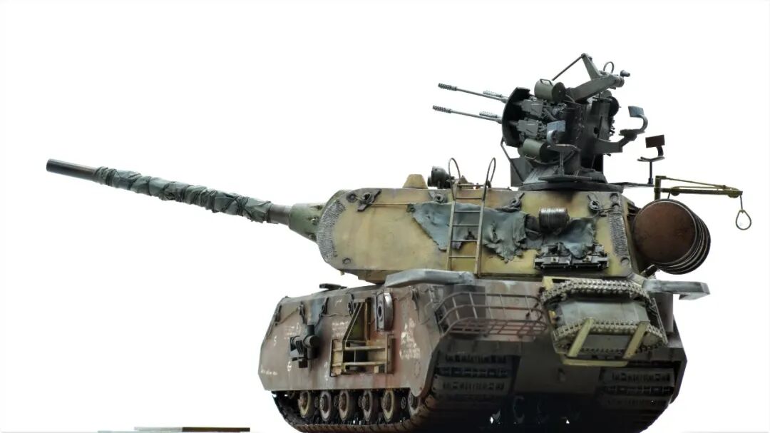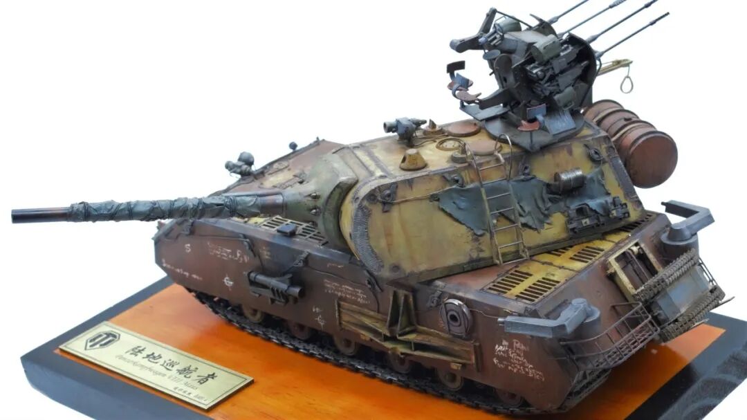 好啦, 今天是线上,咱们就多说说线上看的效果。这件是一件坦克世界游戏中的皮肤,相信玩游戏的朋友们对这个很熟悉了,D系动物园里的重甲高富帅,虽然实际战争中发挥作用有限(算是没打过,大家可以搜搜史实了解下),但游戏里YY下还是很过瘾的,而且通过游戏设定,这台车的武力值更高了,加了个四联防空炮和歌莉娅小遥控车,另外,还配置了一身的维修装备,大概意思就是把所有的期望都加到老鼠身上,通过夸张的手段表达了法西斯最后的癫狂。