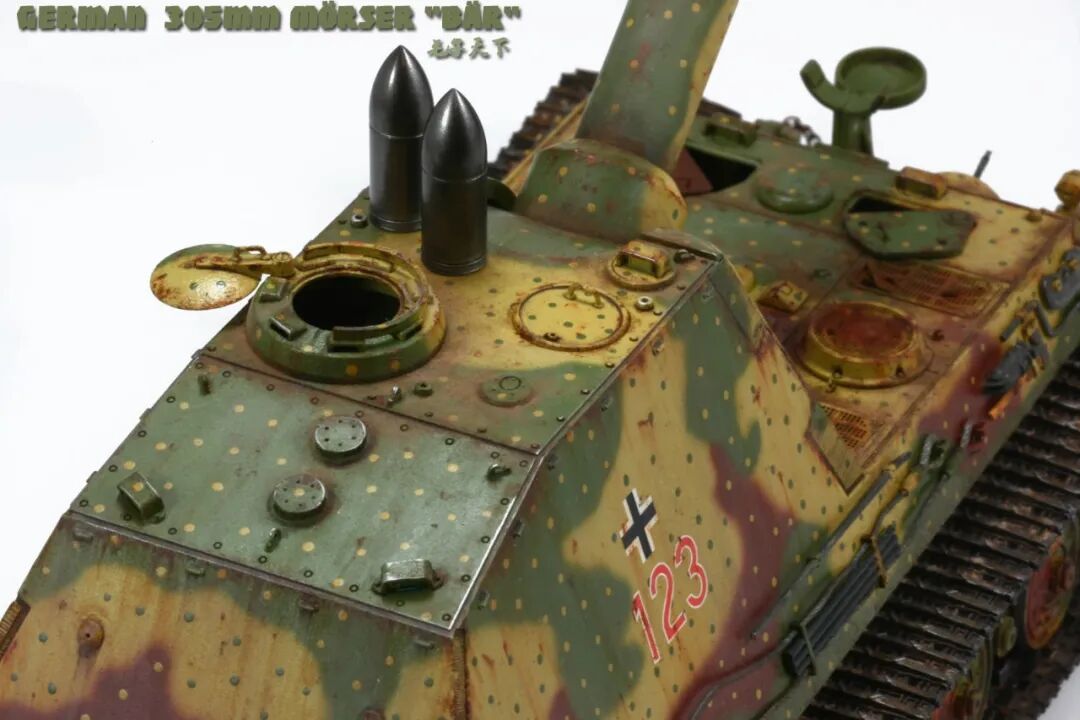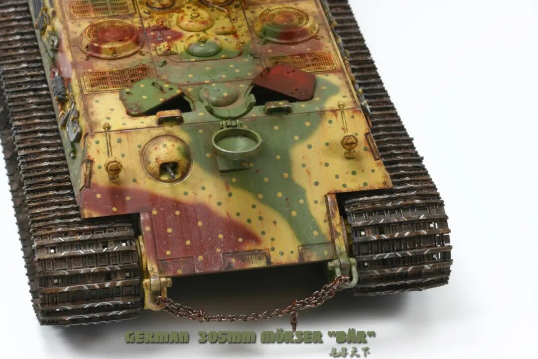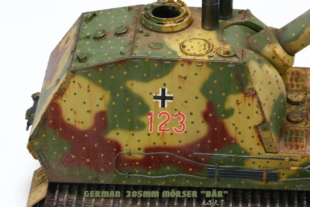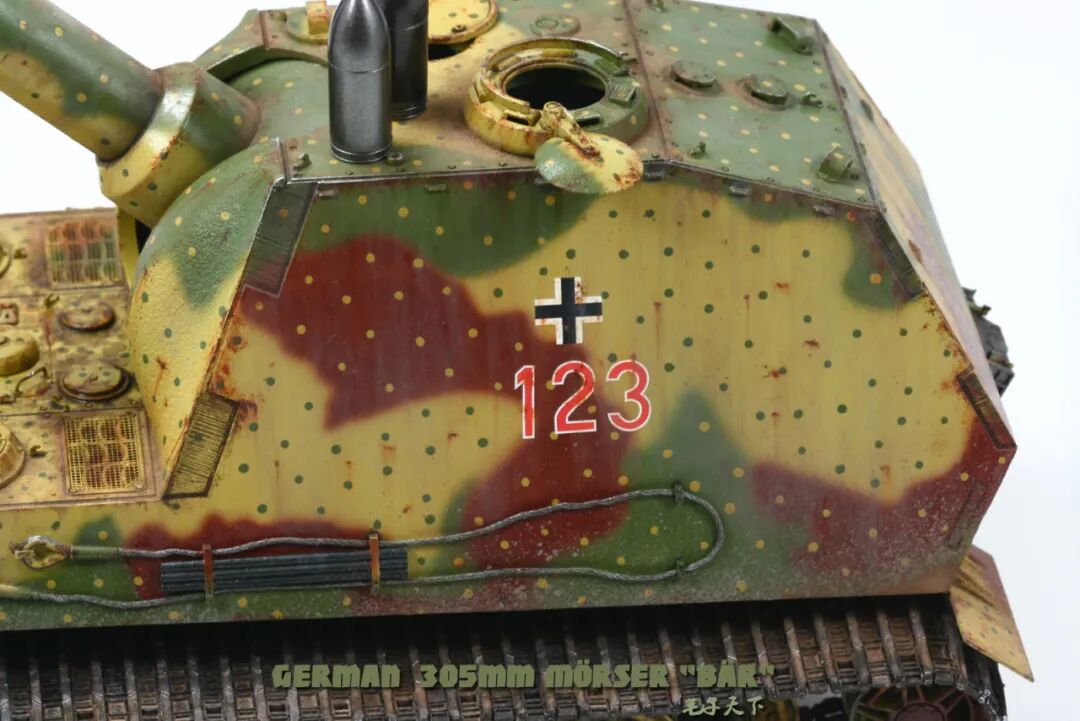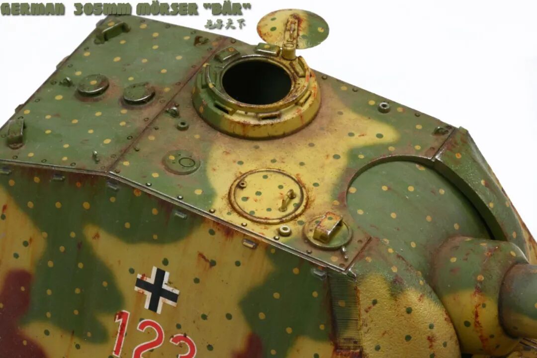熊呢,是非常有趣的一台装备(图纸车其实都很有意思),车型很重,没有炮塔,炮管又粗又短,憨憨的但是就给人一种很猛的感觉。毛子老师的制作不必多说,用色一如既往的迷人,特别醒目,旧化上采用了比较清新的风格,煎的流锈表现出新上线装备的效果,毕竟末日了,损耗率高的离谱,今天上个新,明天可能就炸没了。这一件呢,在小编看来没有什么特别吸引眼球的炫技效果,但整体效果非常耐看,处理的非常细腻,厚重感也表达的很到位,是一件沉得住气的作品!跟这台装备的名字很契合。