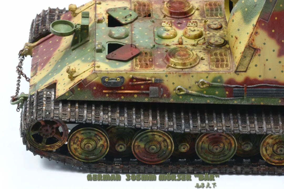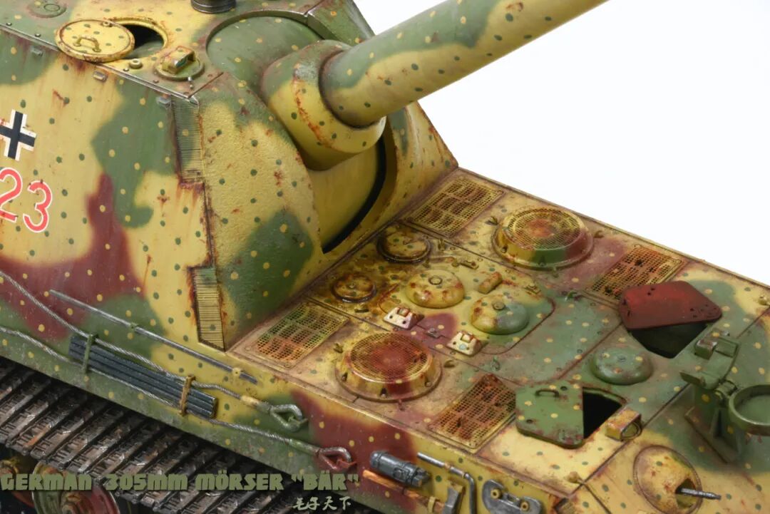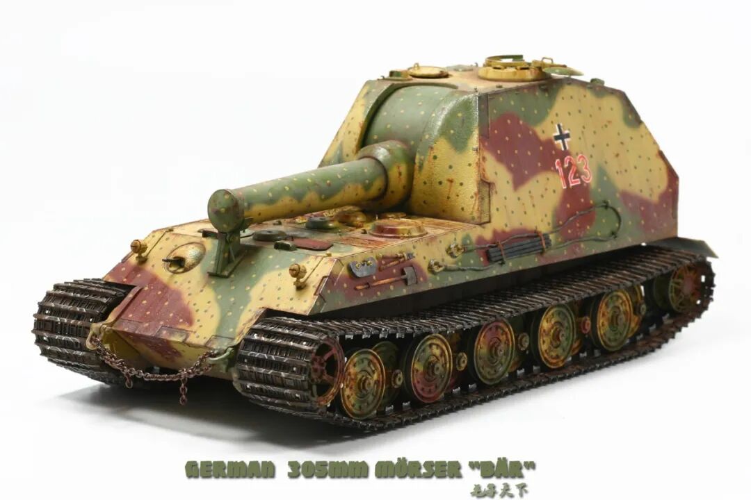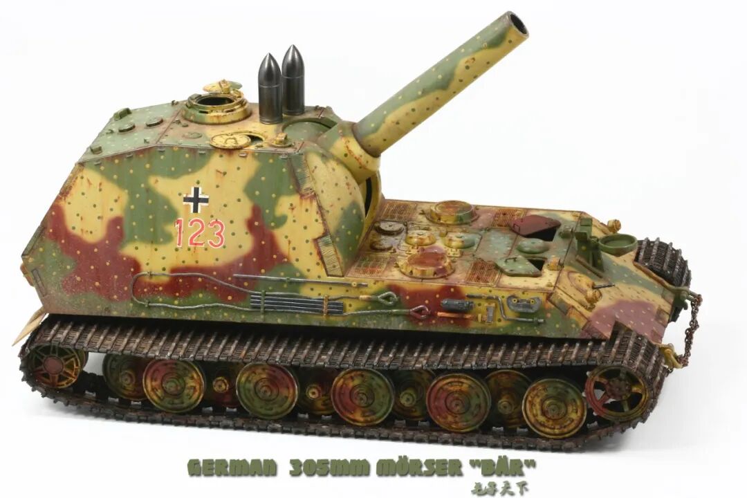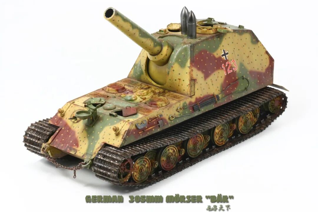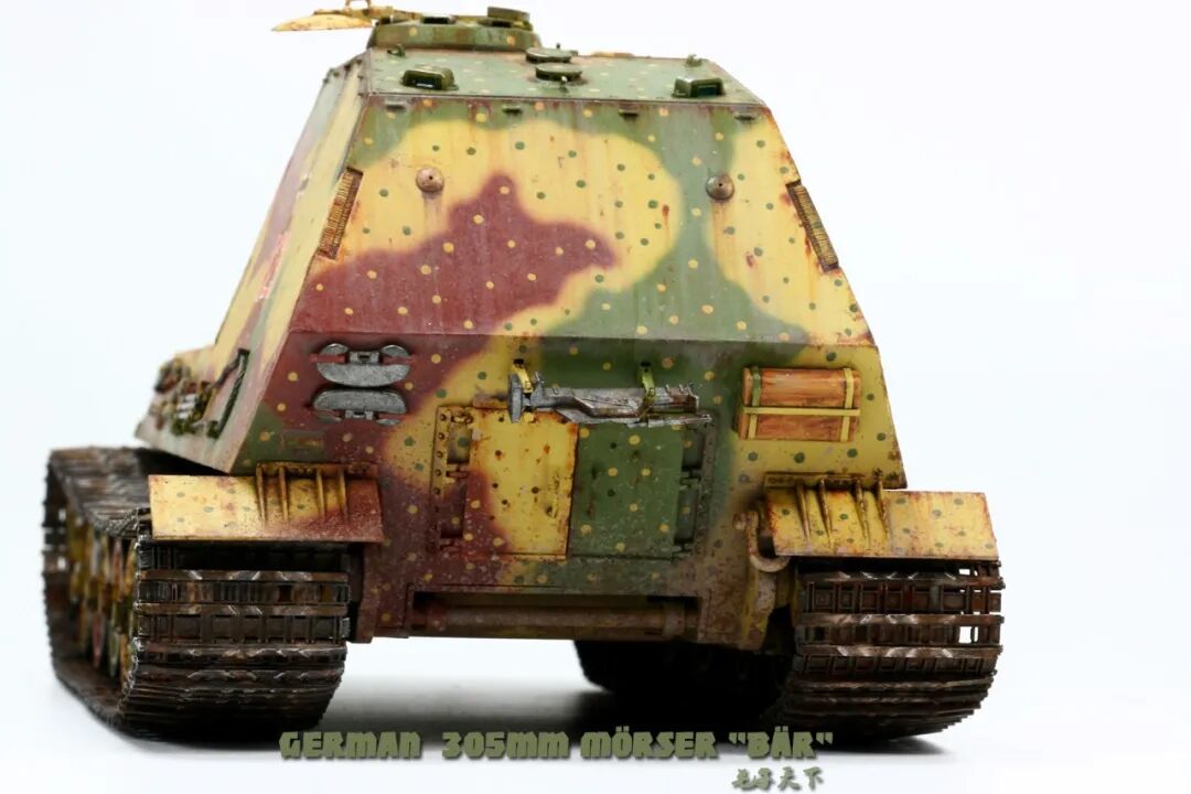 熊呢,是非常有趣的一台装备(图纸车其实都很有意思),车型很重,没有炮塔,炮管又粗又短,憨憨的但是就给人一种很猛的感觉。毛子老师的制作不必多说,用色一如既往的迷人,特别醒目,旧化上采用了比较清新的风格,煎的流锈表现出新上线装备的效果,毕竟末日了,损耗率高的离谱,今天上个新,明天可能就炸没了。这一件呢,在小编看来没有什么特别吸引眼球的炫技效果,但整体效果非常耐看,处理的非常细腻,厚重感也表达的很到位,是一件沉得住气的作品!跟这台装备的名字很契合。