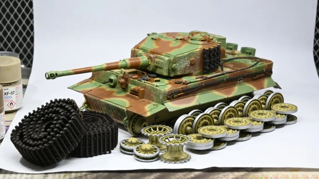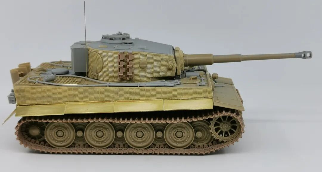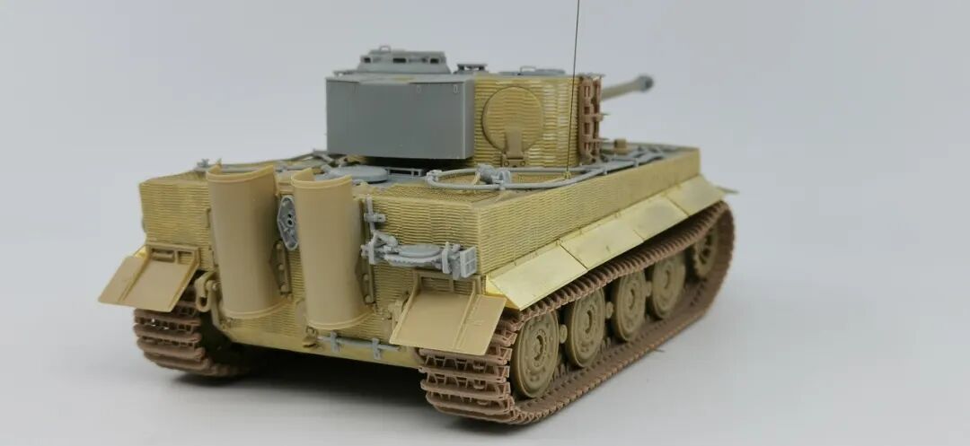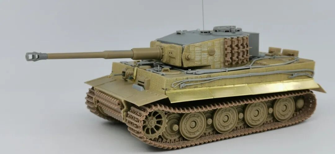 作者的虎式曲折之路:作者在15年还在读书的时候就有做一个虎式的想法了,毕竟德棍不能不做虎式嘛(这孩子看少战看的),那会儿买了个威龙的6383,然而手艺不精直接烂尾了。。后来在21年买了个田宫的后期虎,还另配了老田的防磁贴纸,但是那个贴纸效果嘛你们懂的,又双叒叕烂尾了,切了个炮盾在闲鱼上挂了一阵子,后面没人要自动下架了。