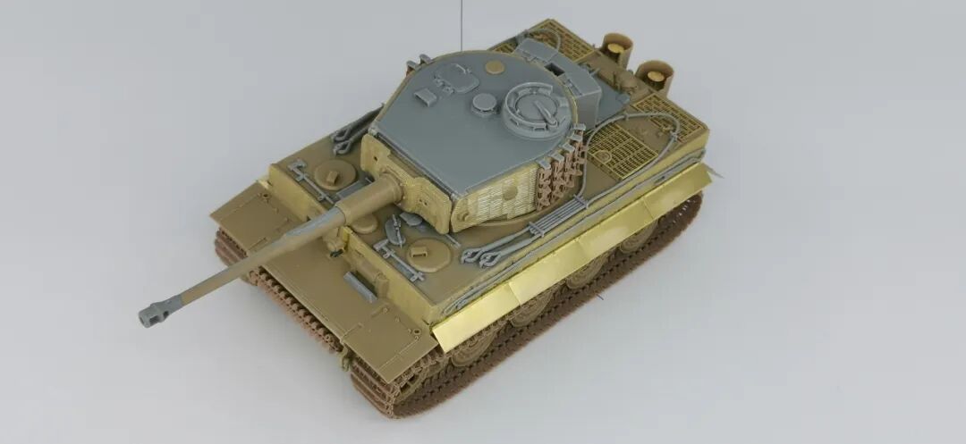 由于怕旧化过度毁了模型所以尘土效果没做太重,有些地方的尘土色还是显白了,群友们提了不少建议但是最近没什么空去作修改了TAT。。不过完成了人生第一个虎式成就感还是满满的,下一个模型再接再厉吧
