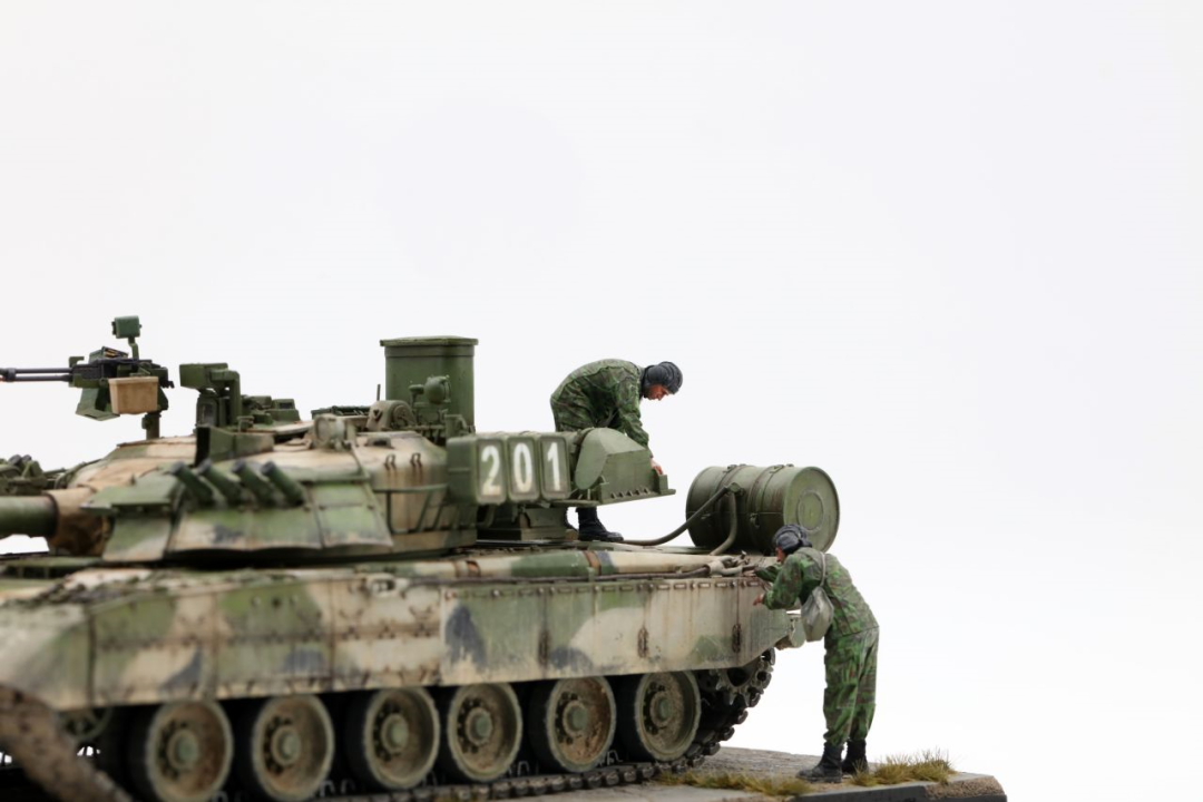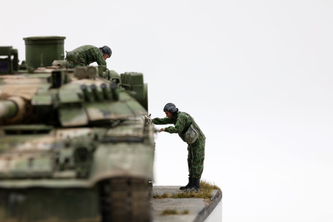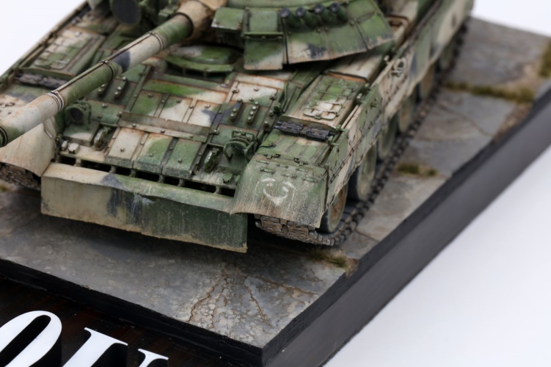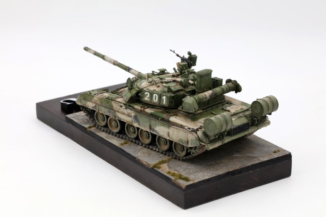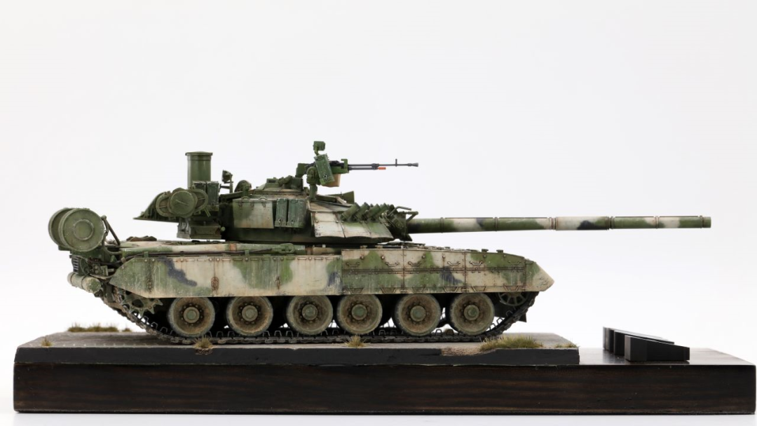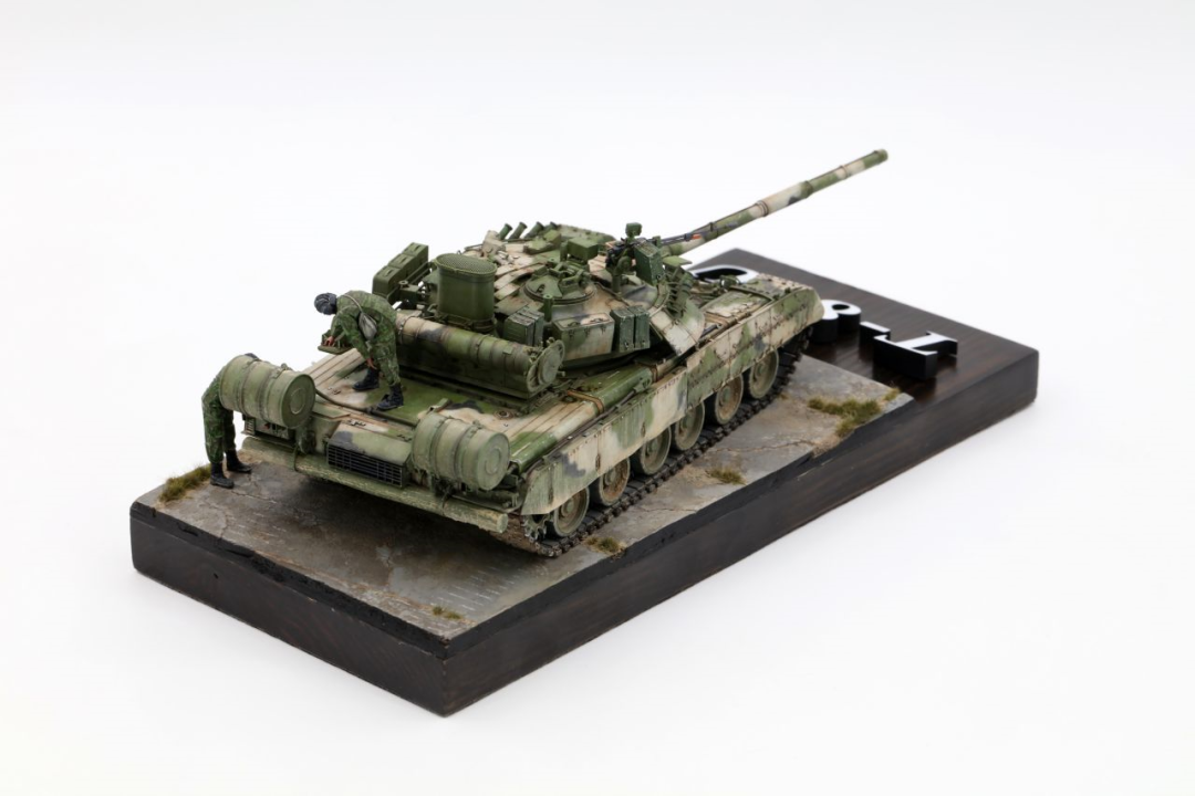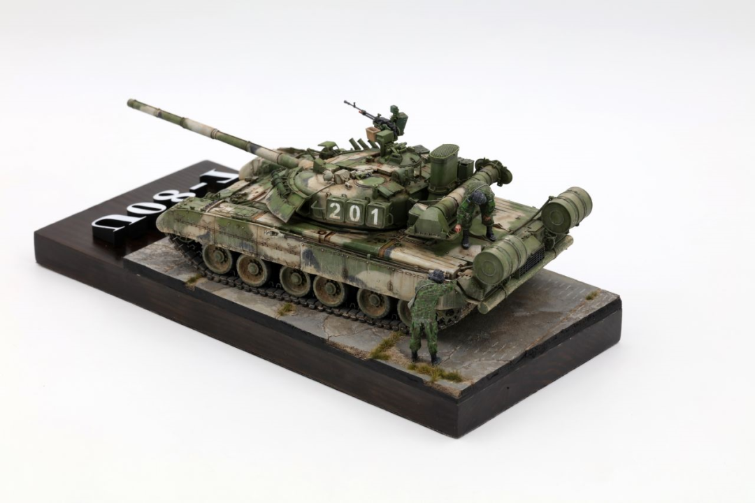 这件,来自我们的老朋友,大家都熟悉的赛霸吴佳盛老师的最新作品。这一件实在是太牛了!小编看完图片后,想做T-80U的欲望 直接爆表!吴老师的这件俄现代三色选的特别舒爽,绿色稍微暖一些,浅色则白一点,搭配呈现出的效果,舒服的让人心痒痒!搭配了一个简单的长形地台,立体的浮雕字体又为作品增添了一些科幻感,一切都是绝妙!