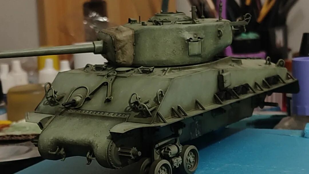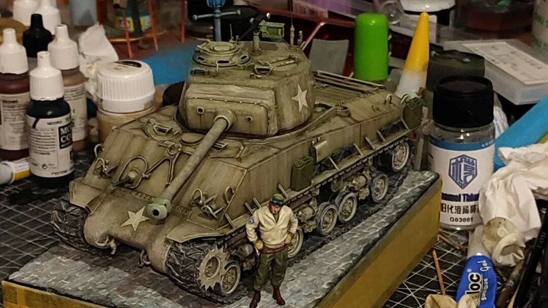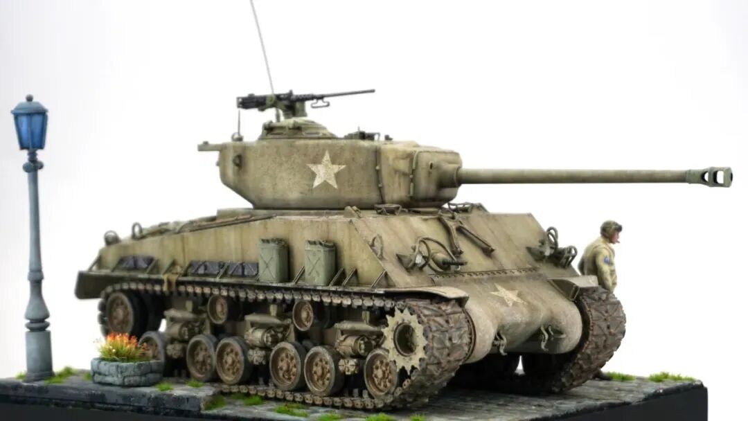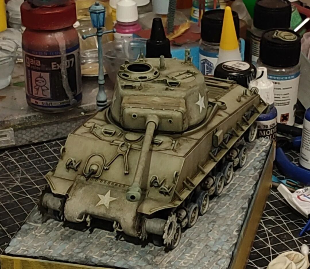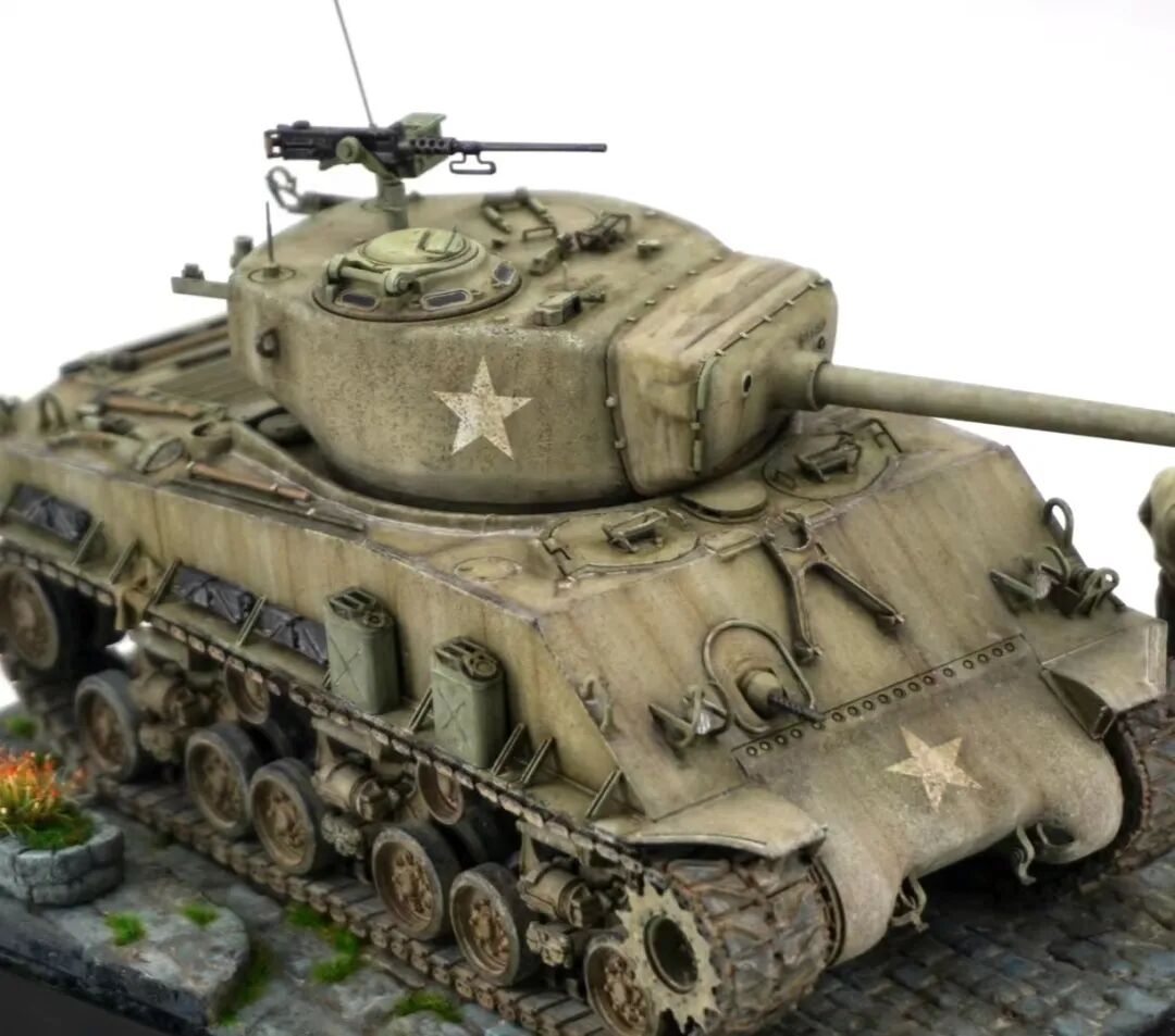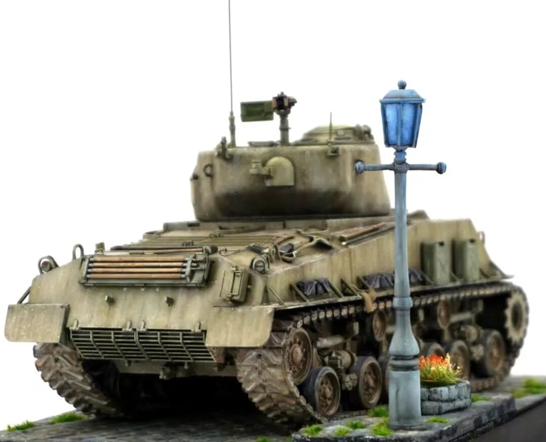 是的,这一期是锤哥谢尔曼M4A3E8,拖了好久才发的一件作品,也是一件清爽高级的小景作品。
