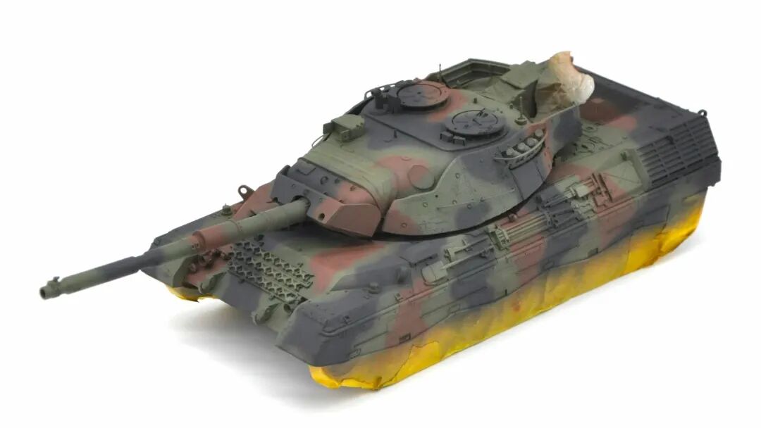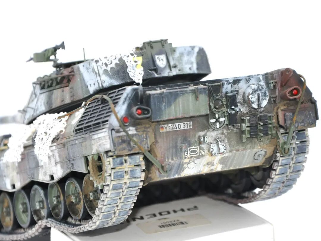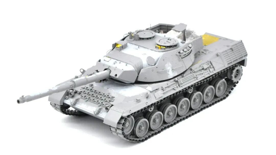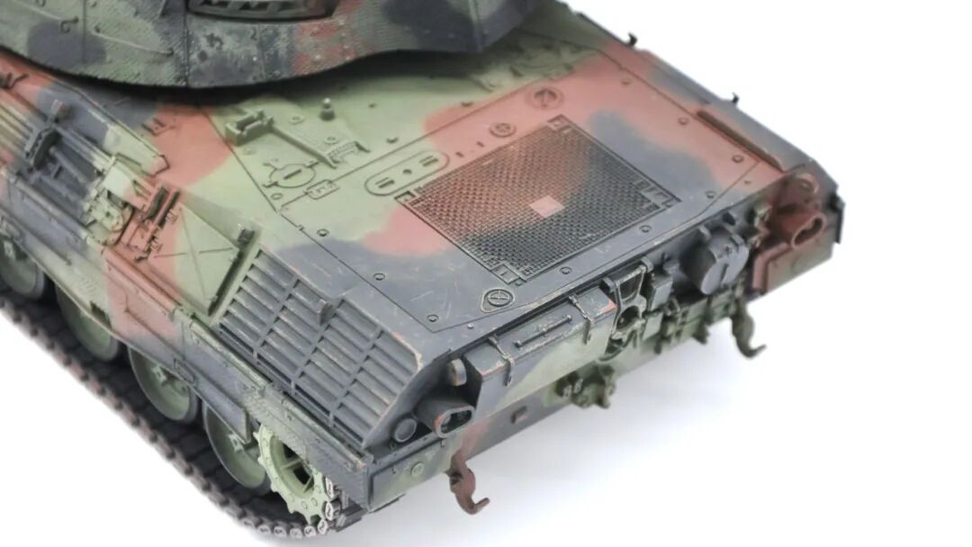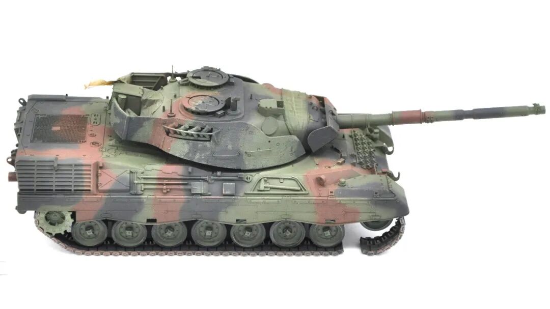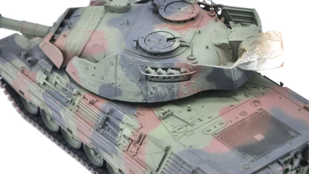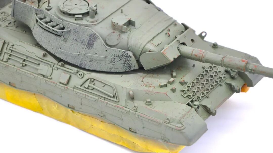 在套件的选择上可谓坎坷,最开始选择的是MENG出品的豹1A5,整个制作过程挺愉快,但问题出在炮塔两侧的附加装甲,MENG“机智”地给了两大块橡胶……这很还原实车,但对于模型来说,第一是不容易安装,需要用到强力胶,容错率低;第二点,也是最关键一点的,喷上去的水补土和漆的附着力不佳,橡胶一旦被手捏变形,表面的漆就会开裂脱落。