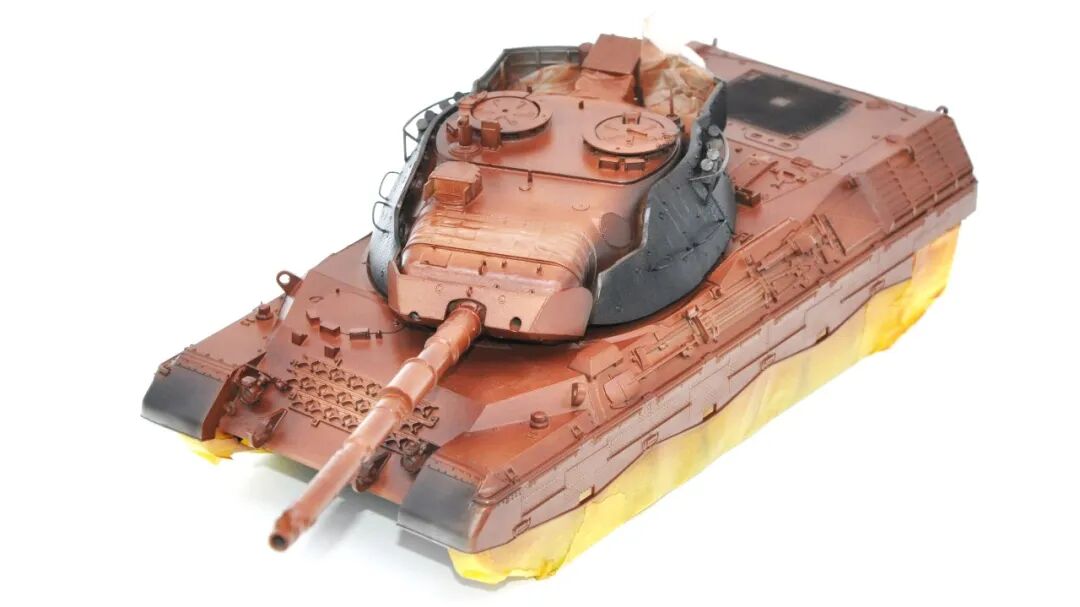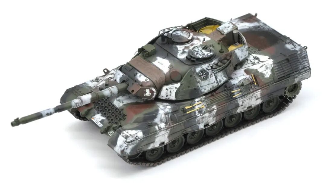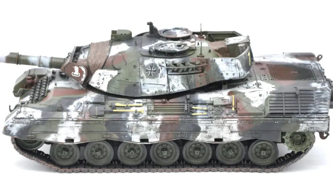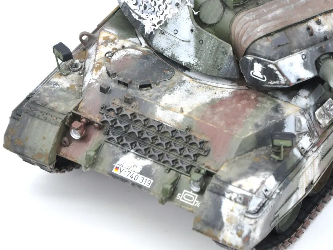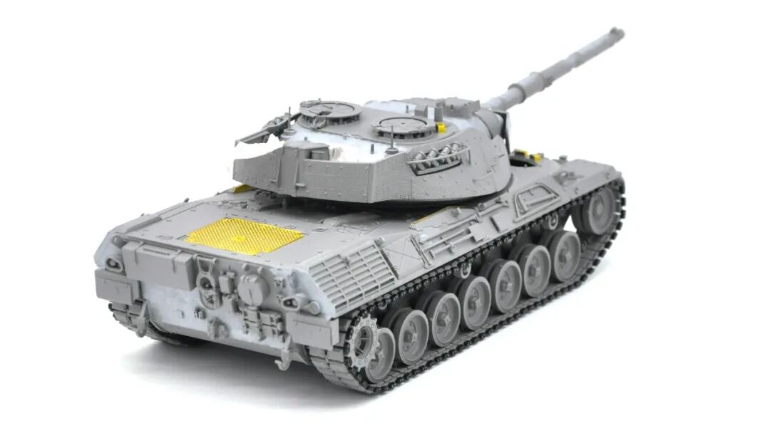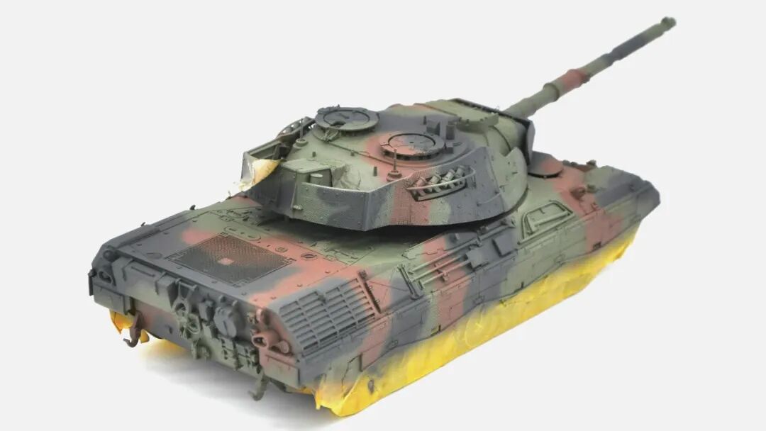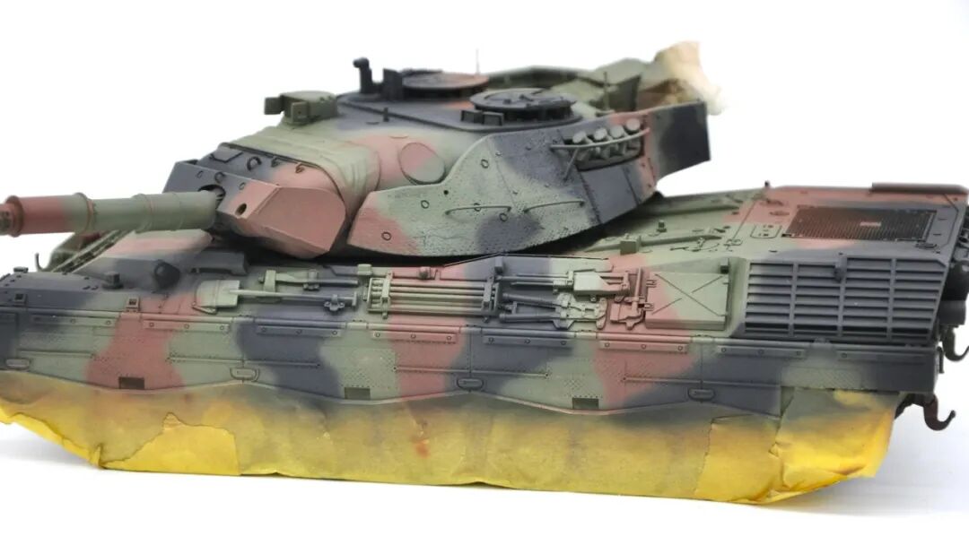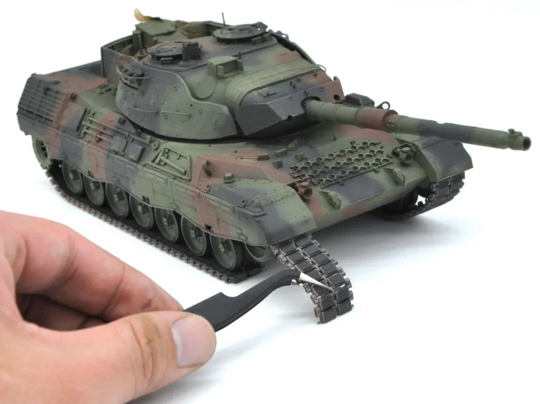 在套件的选择上可谓坎坷,最开始选择的是MENG出品的豹1A5,整个制作过程挺愉快,但问题出在炮塔两侧的附加装甲,MENG“机智”地给了两大块橡胶……这很还原实车,但对于模型来说,第一是不容易安装,需要用到强力胶,容错率低;第二点,也是最关键一点的,喷上去的水补土和漆的附着力不佳,橡胶一旦被手捏变形,表面的漆就会开裂脱落。