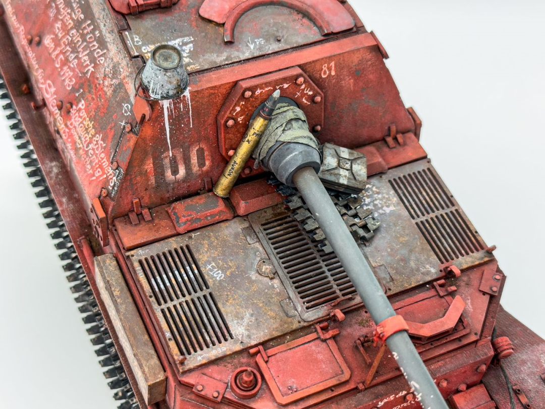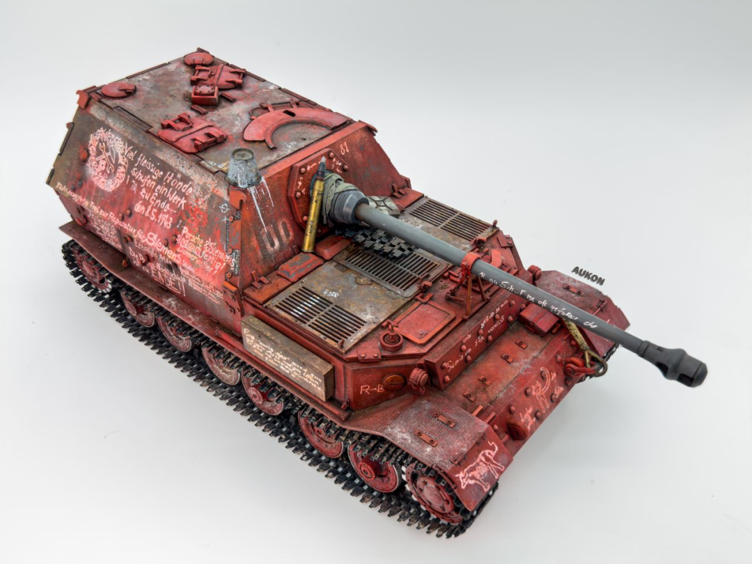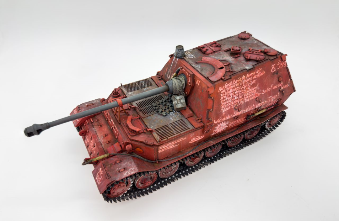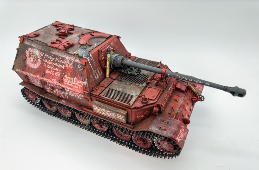 最后一台完工的“斐迪南”坦克歼击车,注意其侧面的编号150100,车间工人为这辆车写上了大量祝福语。