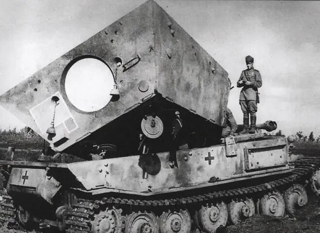 这车由保时捷公司竞争失败的虎(P)底盘改装而来,说到这个底盘,因为费迪南德·保时捷博士与希特勒关系匪浅,这套电传动、正面装甲极厚的底盘老早早就被订购生产了,但后来测试后发现效果不太好,就落标了,可到这会,底盘已经生产了92套了,大老板这波是光讲感情了~