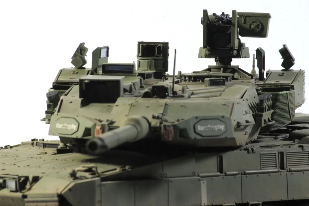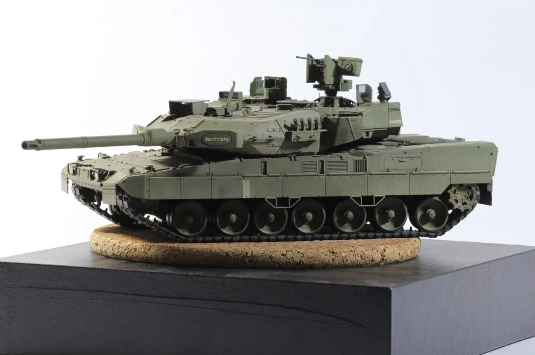 豹2A8主战坦克是德国陆军最新一代主战装备,基于豹2A7主战坦克升级改造,装配了55倍径120毫米滑膛炮,最有特点的是其装备了战利品防御系统,据说这个战利品还是欧洲的升级版。另外,其配备的改进型发动机具备1600匹的马力,作战灵活性得到了极大的提升