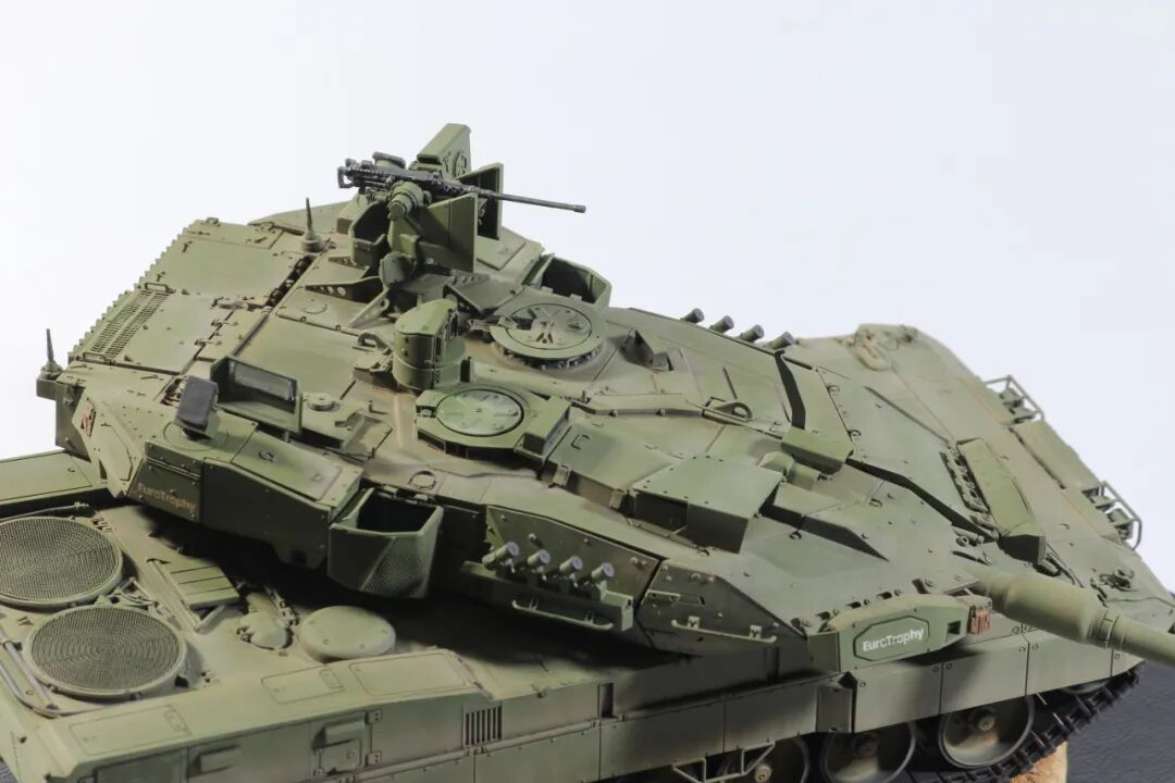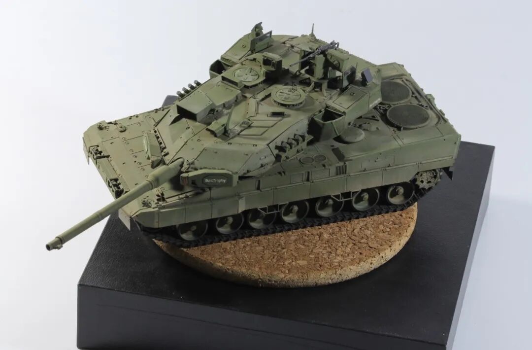 今天这件科幻感满满的坦克,用的是AH的板件,作者是笔记的老朋友-老袁。作品清爽的老袁在这件作品上延续了自己的风格,豹2A8这种充满科幻感的新型装备确实很适合这种效果。整体的颜色和旧化都很稳当,应该是一件实物不错的作品!大家一起来感受下~
