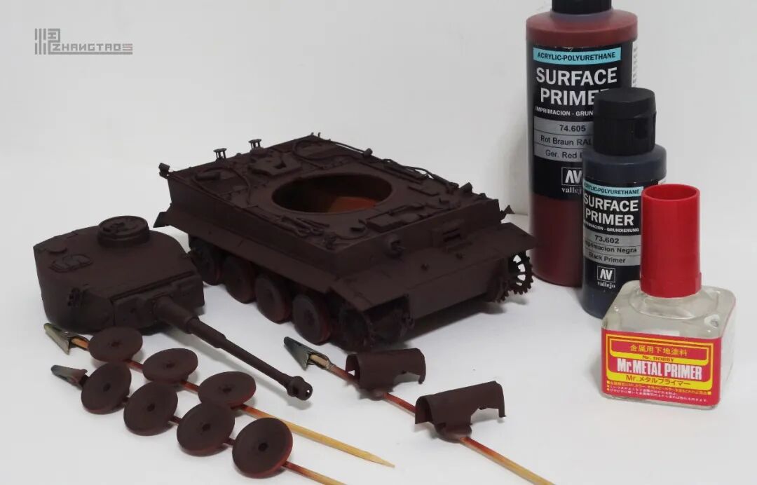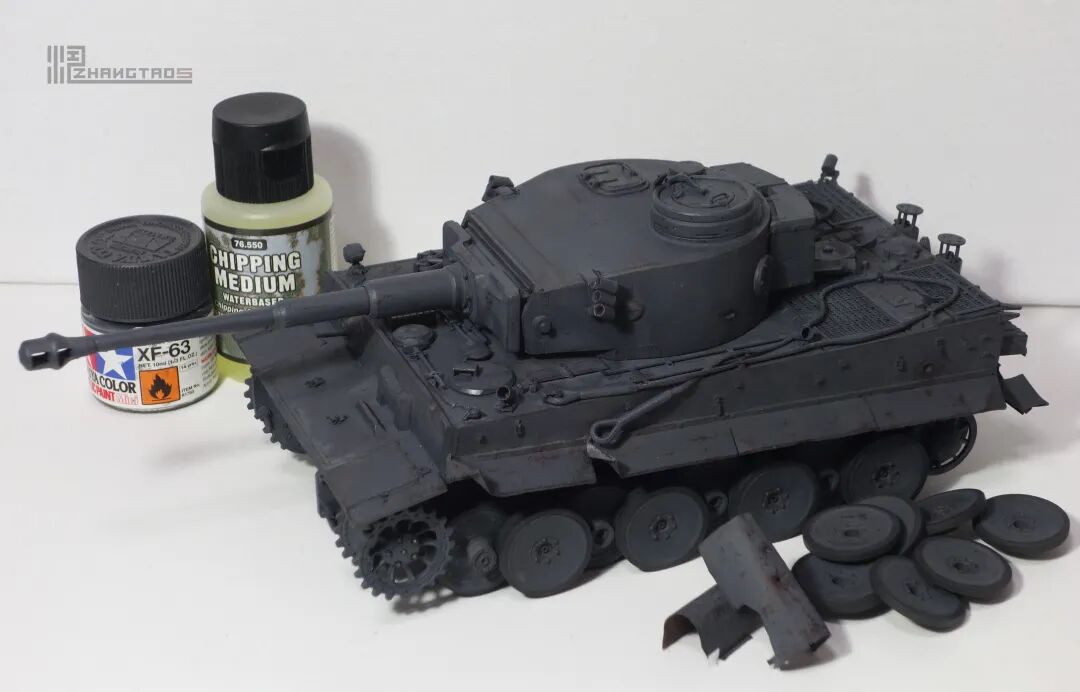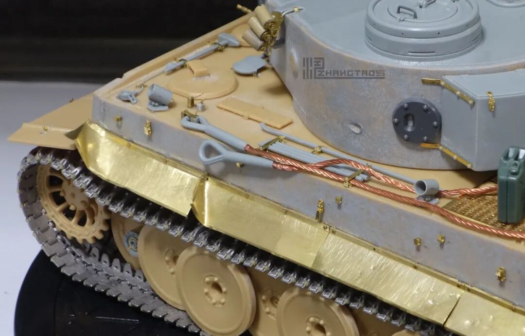 这次制作选料是买了好久1/35的爱德美的中期内构虎,今天看细节考证很是不足,所以只保留了车体轮子并添加了钢板肌理和焊缝,看着当年爱不释手的大部分零件置于“冷宫”,心里还是期待废物利用的一天。借助手里面港龙新版北非虎和田宫初期虎余下的部件,及老版的牛魔王和狮鸣蚀刻片,friulmodel的金属履带进行升级改造。