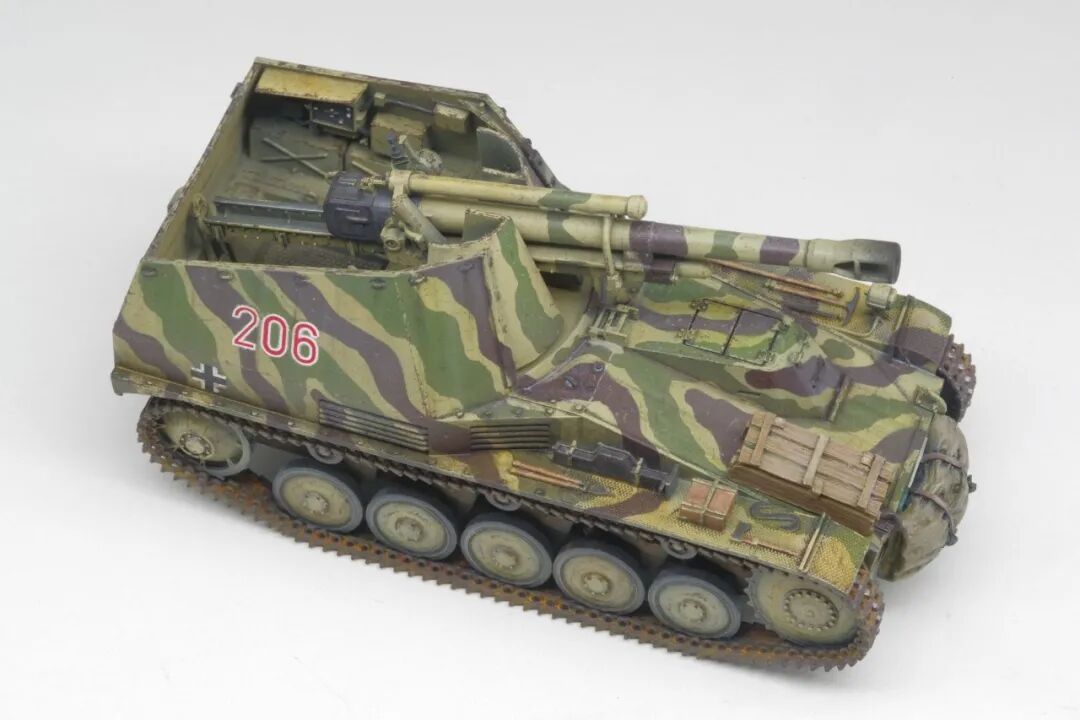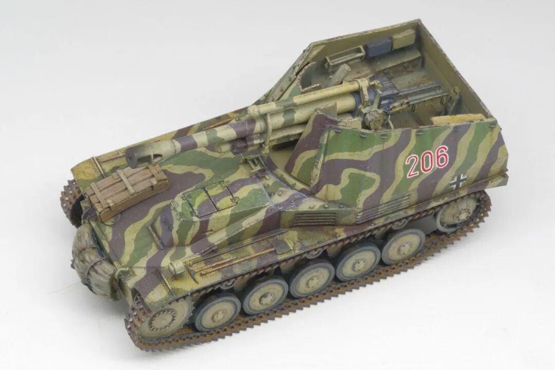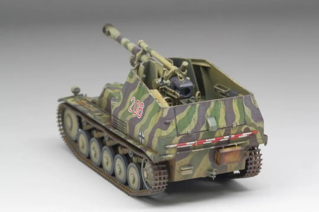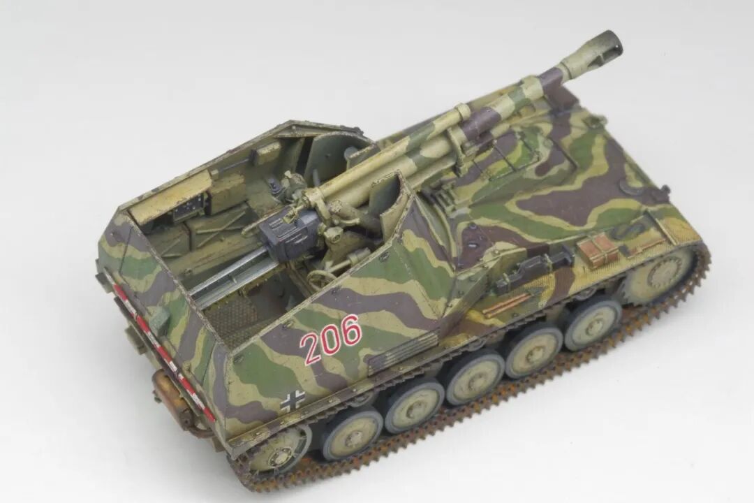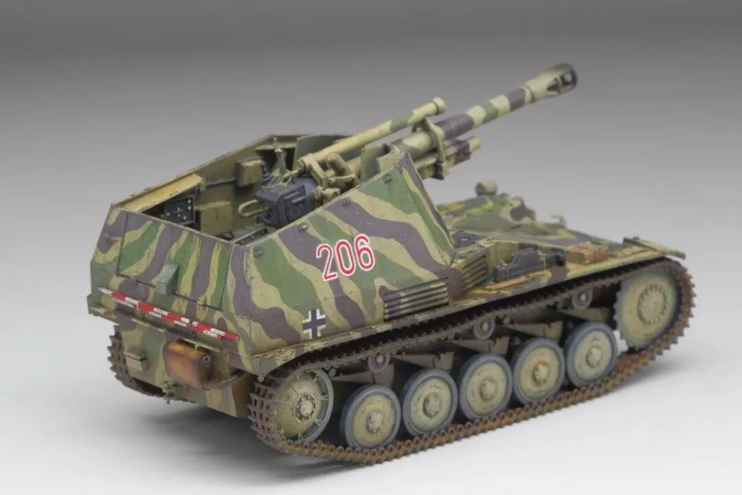 需要指出的是,生产这种自行榴弹炮的工厂,是被德军占领的波兰华沙附近的法莫工厂。该厂的生产直到1944年夏被苏军攻占时为止。还有一个小插曲是,不知是什么原因,希特勒不喜欢“黄蜂”(德文Wespe)这个名字。1944年1月,希特勒下令“必须取消这个名称”。于是,德军又恢复了原来的代号,即Sdkfz.124自行榴弹炮。