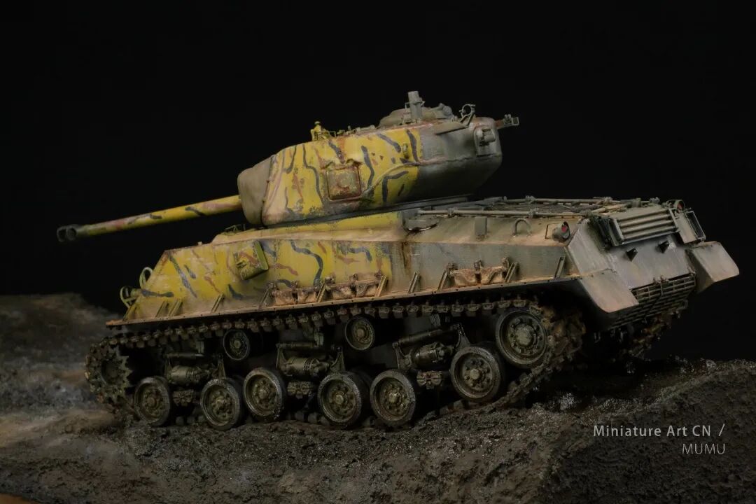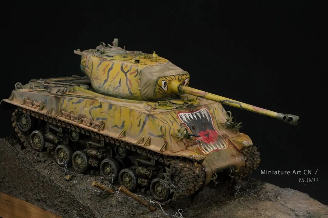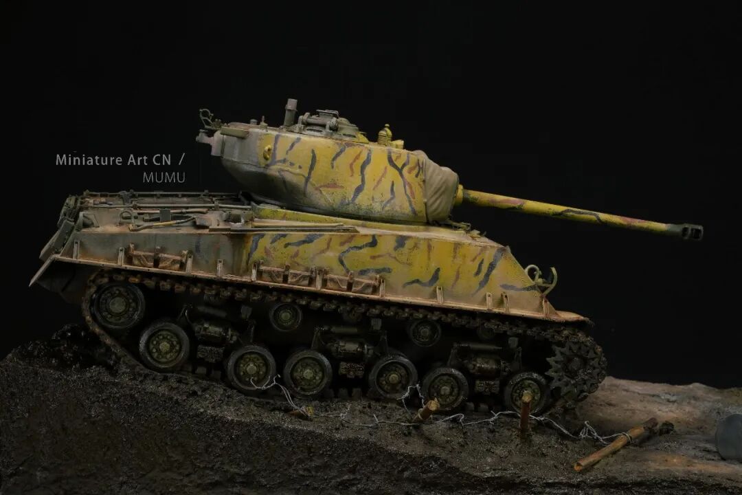 今天的主角M4A3E8,为最后一型的谢尔曼,可以说是其当时杰出之作,各项能力平衡度很好,它在火力、装甲、机动性的平衡提升,完全可以与俄国的T-34/85及德国的四号坦克比拟。M4A3E8使用了新式的HVSS(这是区分其与普通谢尔曼的显著特征)悬挂系统(水平悬挂系统)。因此M4A3E8又被称为M4A3(76W)(76炮) HVSS。M4A3E8的重量使原本的VVSS悬挂装置(垂直悬挂系统)不堪重负,但新型的HVSS可以让由于增加装甲和改进火炮而变重的M4A3E8在行进间减少晃动,而增宽的履带减轻了对地压强。除了悬挂系统的差别外,M4A3E8还强化了防御力以及制造的生产性,而且E8更采用湿式弹药库,减少引发弹药库诱爆的危险。