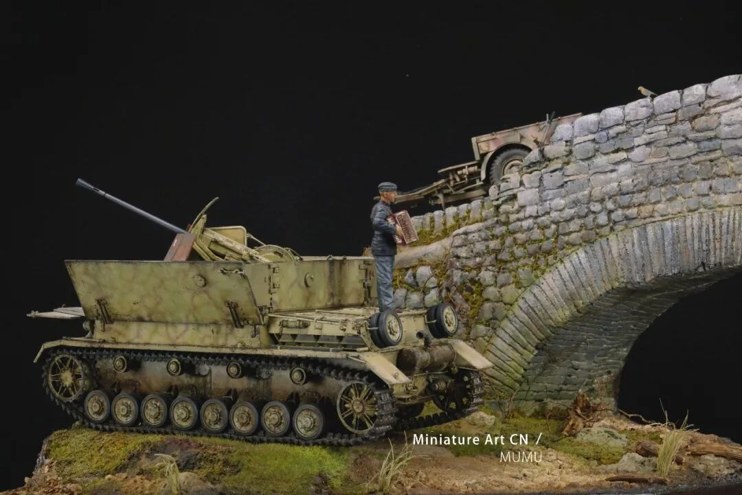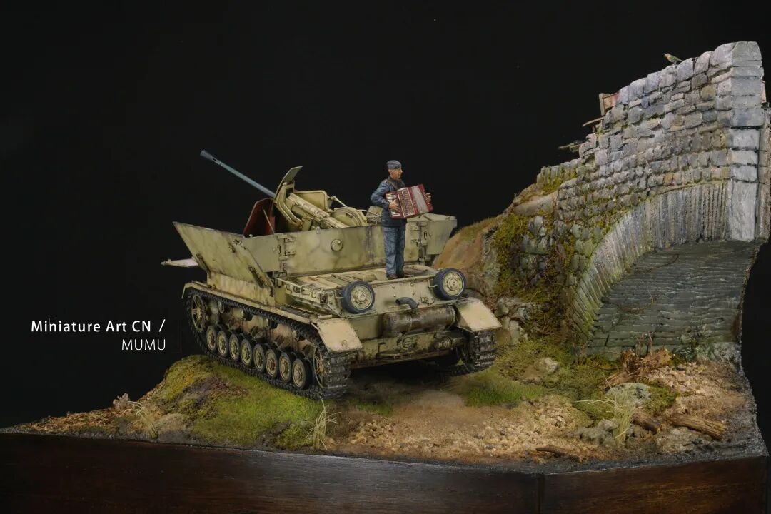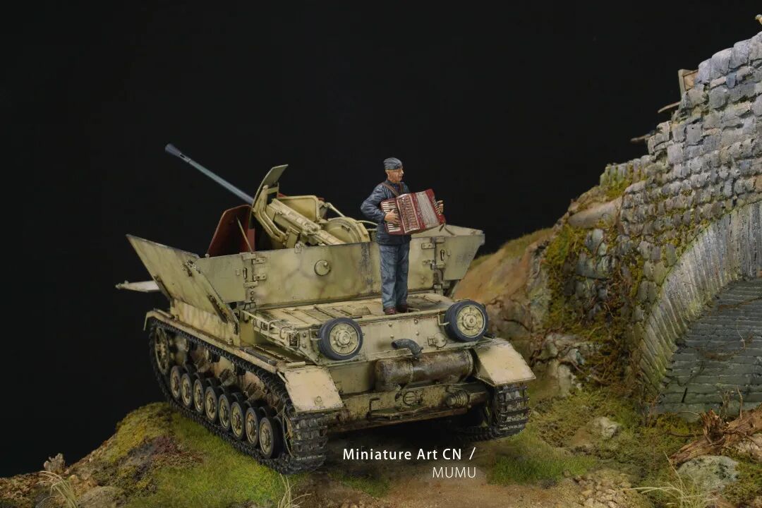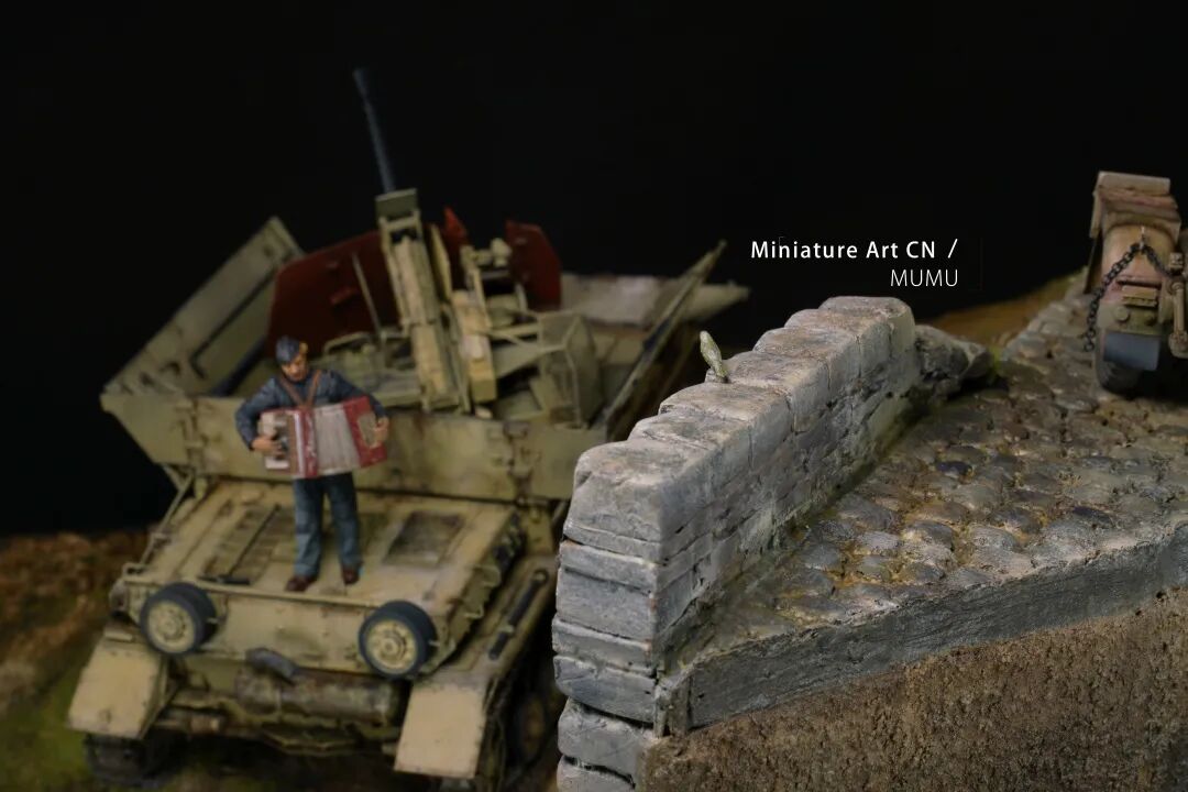 木木老师介绍了这个场景设定的故事:马车战绩上只有一只鸟,想必是误伤,厌战的士兵奏一曲挽歌,希望找上门来的同伴感知这份歉意,小鸟按照知更鸟的配色涂装。