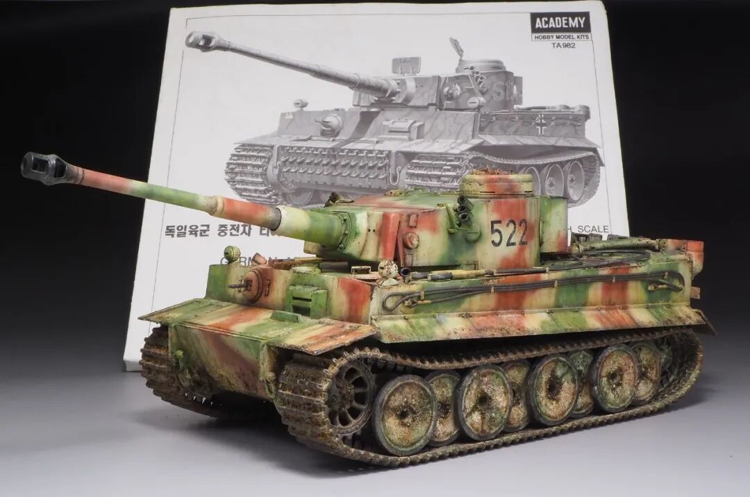 至于板件,作者介绍是多年前屯的一盒,当时市面上只有田宫、威龙、AFV、爱德美,贪图选了最便宜爱德美,皮带式橡胶履带,无纹路钢缆,厚实的烟雾发射器。其实只比田宫便宜了十几块,最后又加价更换了爱德美的活动履带。如今估计是市面最低配虎式了吧。