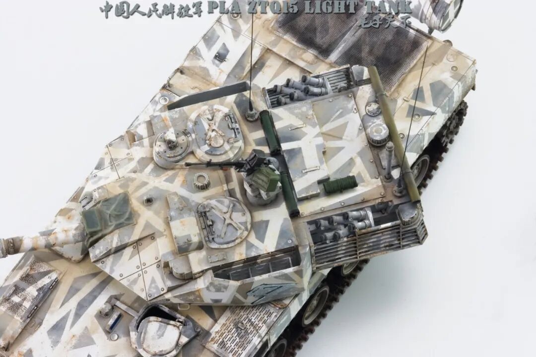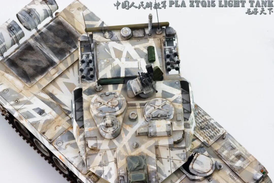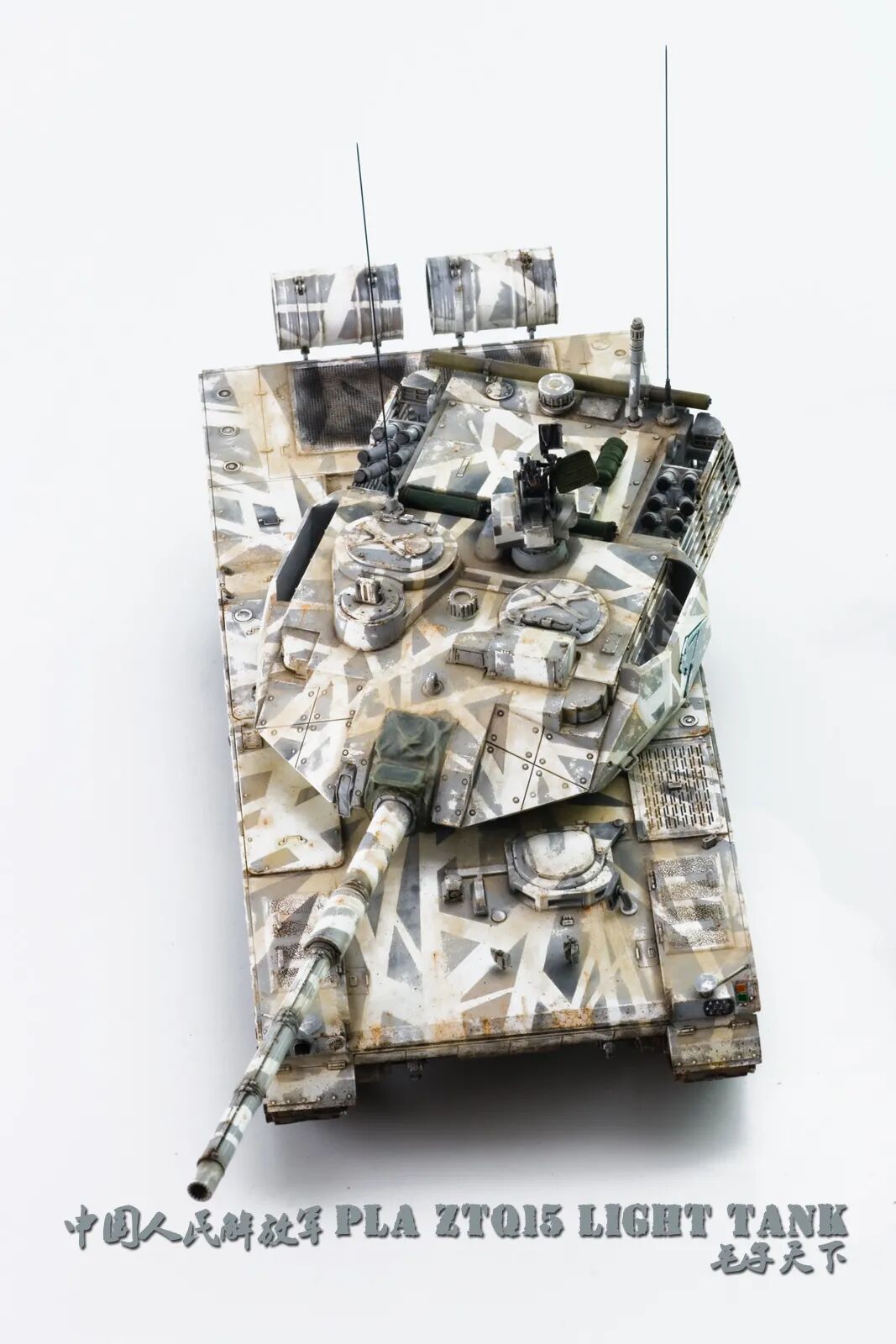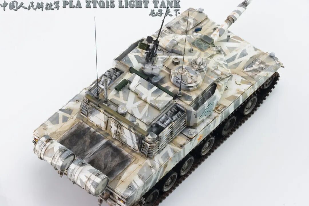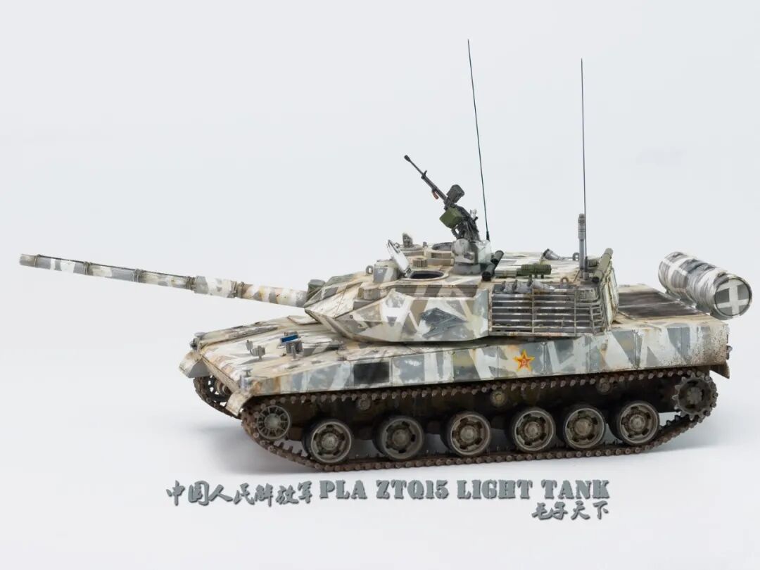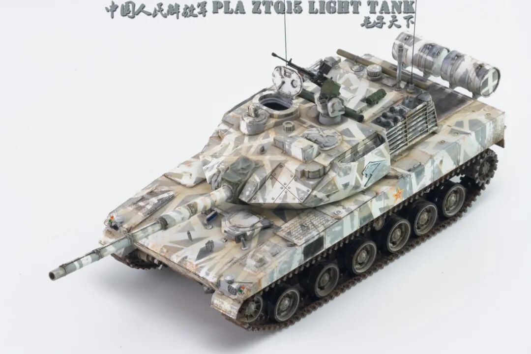 15式轻型坦克的正式编号为:ZTQ-15,是新一代中国轻型坦克,是一个专门为山区作业设计的新型轻型坦克。新坦克被指定用于西藏自治区等高海拔崎岖地形,因此它具有重量轻和强大的柴油发动机,适用于缺氧环境,同时,15式还配备了一个加装30mm榴弹发射器和机枪的武器平台,可以放置手持式反坦克武器,并且配备了1000马力的发动机,可以提供强大的越野机动性,其配备的现代化的火控系统,可以在夜间和恶劣的环境下捕捉并瞄准目标,整体作战能力跻身当今世界顶尖水平。