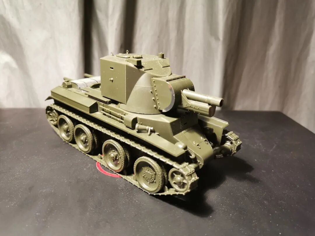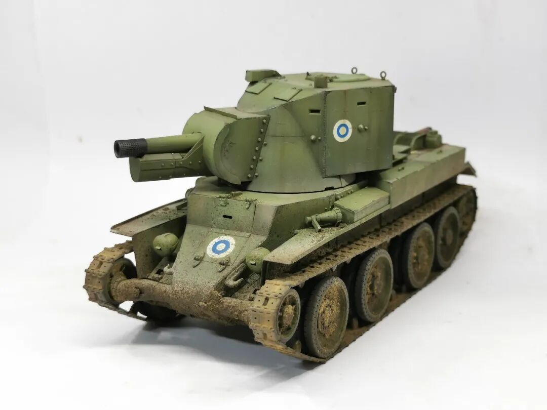 但实事求是的讲,这小家伙可能就占了个颜值高超可爱的优势,实际上小车抗大炮的设定,使得BT-7高速奔袭的天赋优势丧失,而且,那么大一门炮,在BT-7那样狭小的空间里,是没法很舒服顺畅的操作的。你就想,乘员组们得多痛苦。
