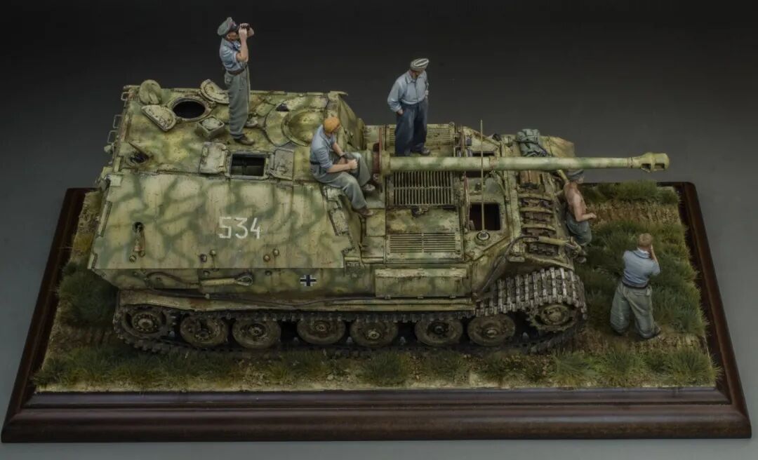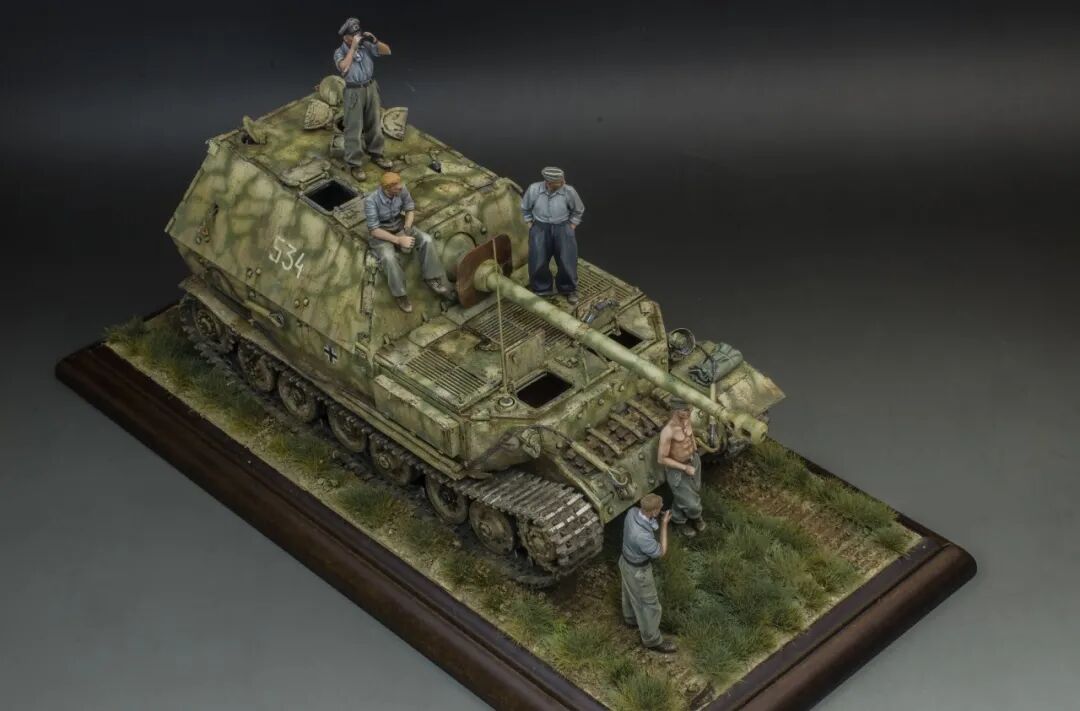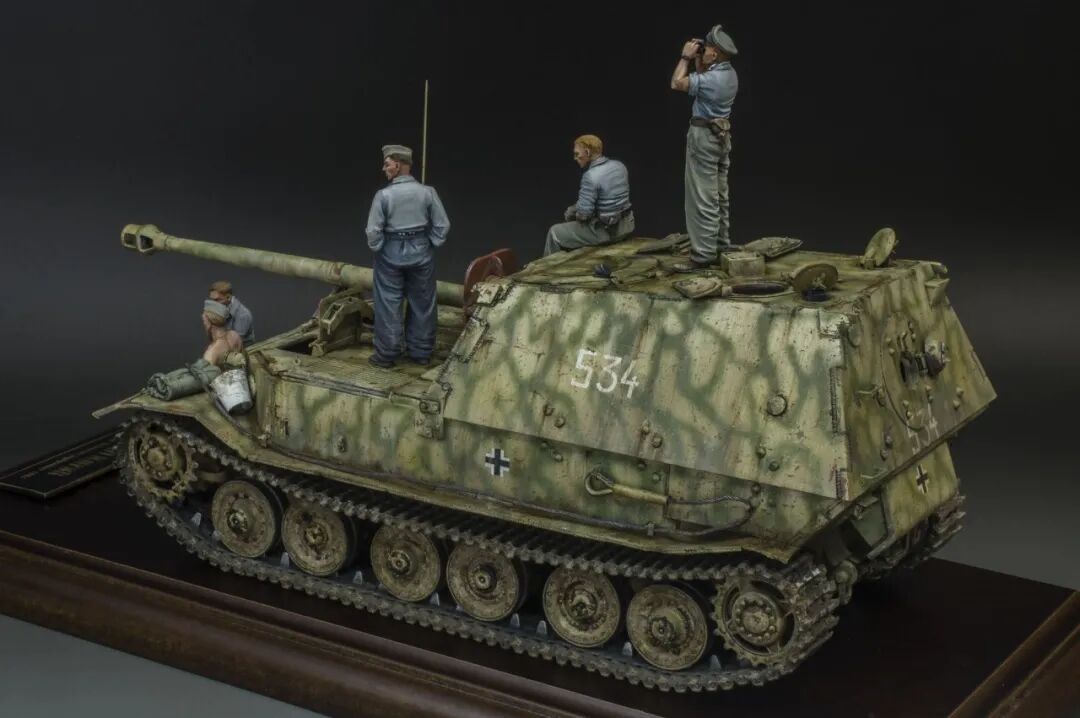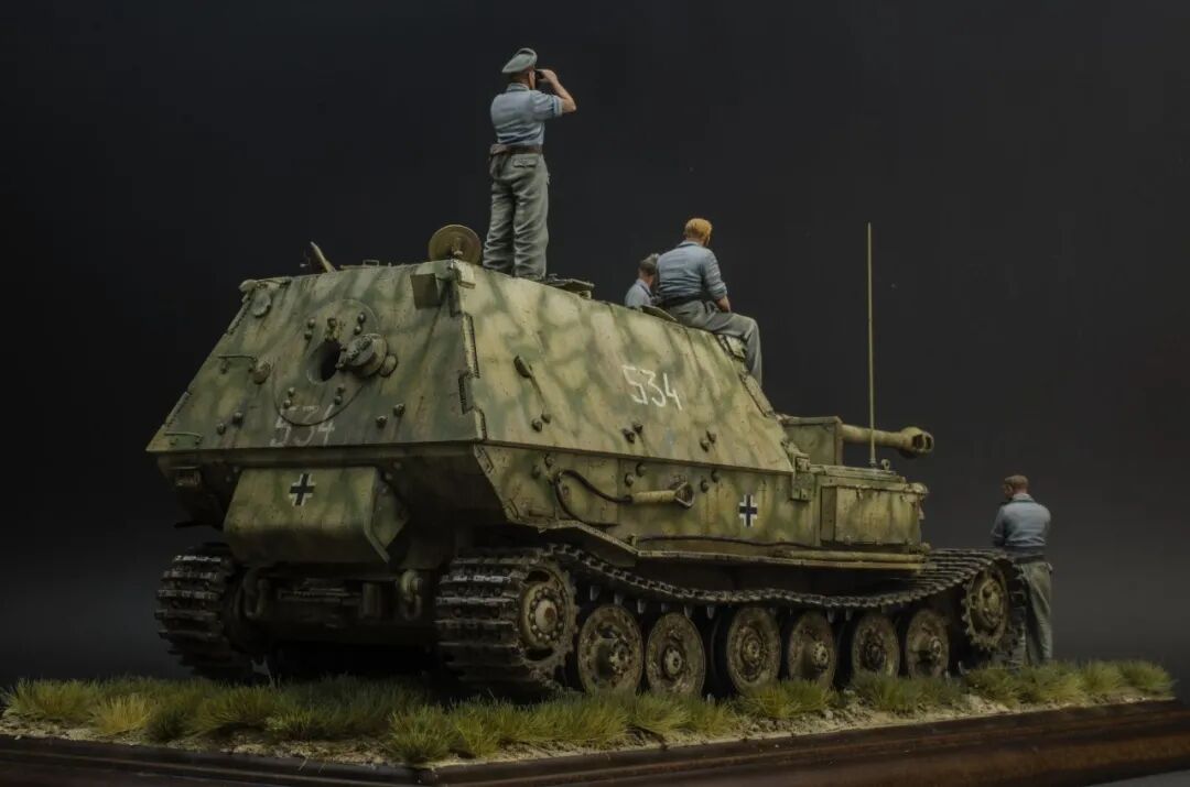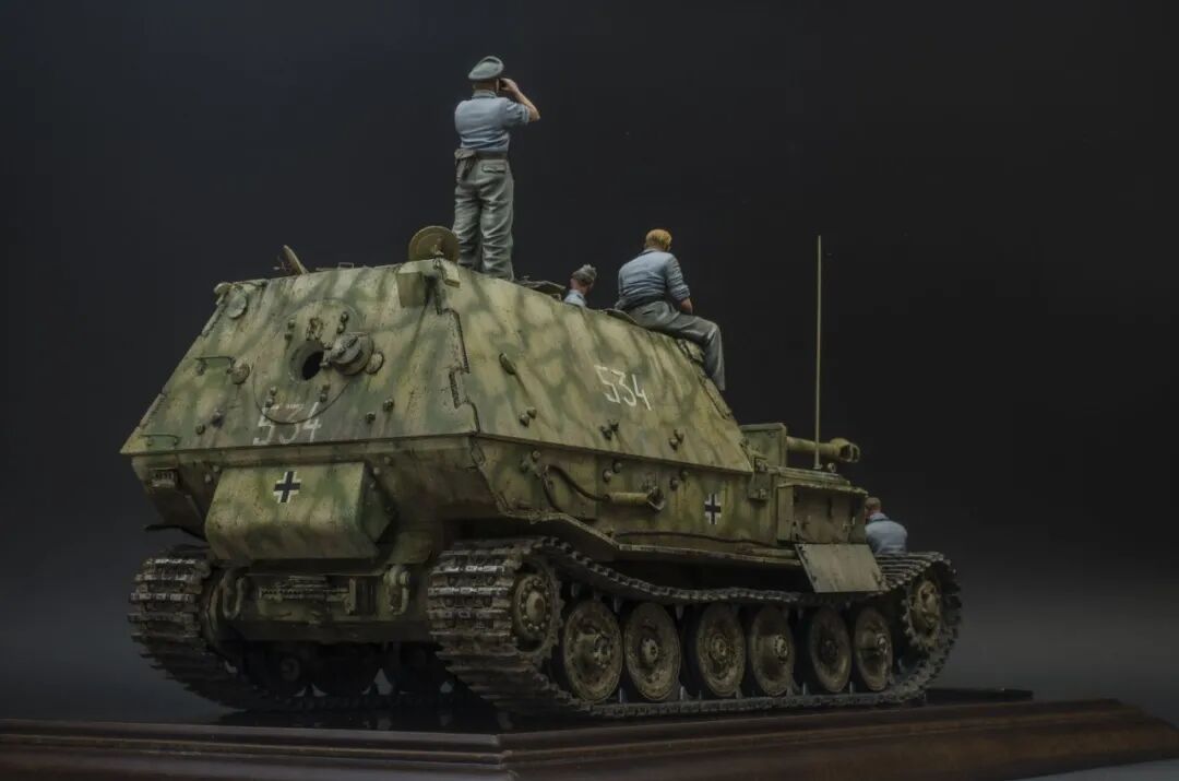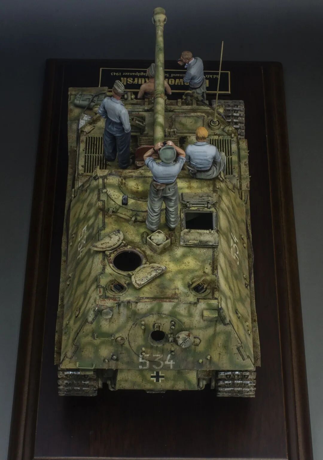 涂装旧化采用了656重歼击团654营的534号车,这辆车子涂装采用了比较细碎多变的绿色条纹涂装样式,而且比较有趣的是654营经过争夺某车站的战斗并遭受重大损失后,534号车仍幸存下来,但却永远无法到达战役目的地了。指挥官只能站在车顶手执望远镜瞭望,其他乘员也都疲惫不堪倚在战车上……