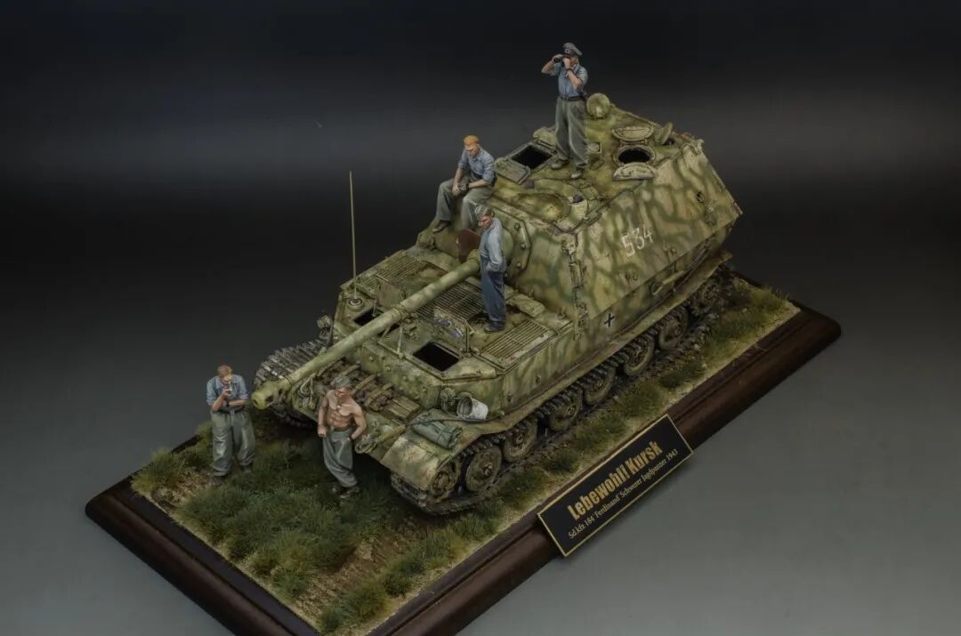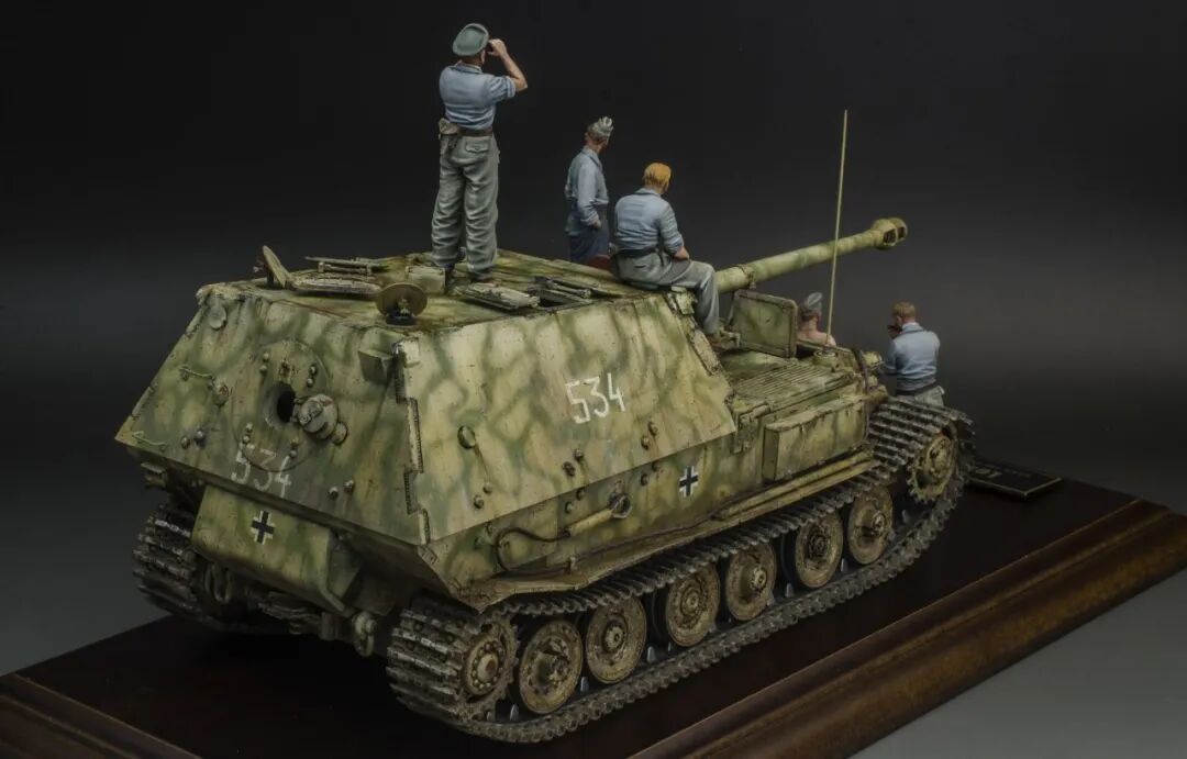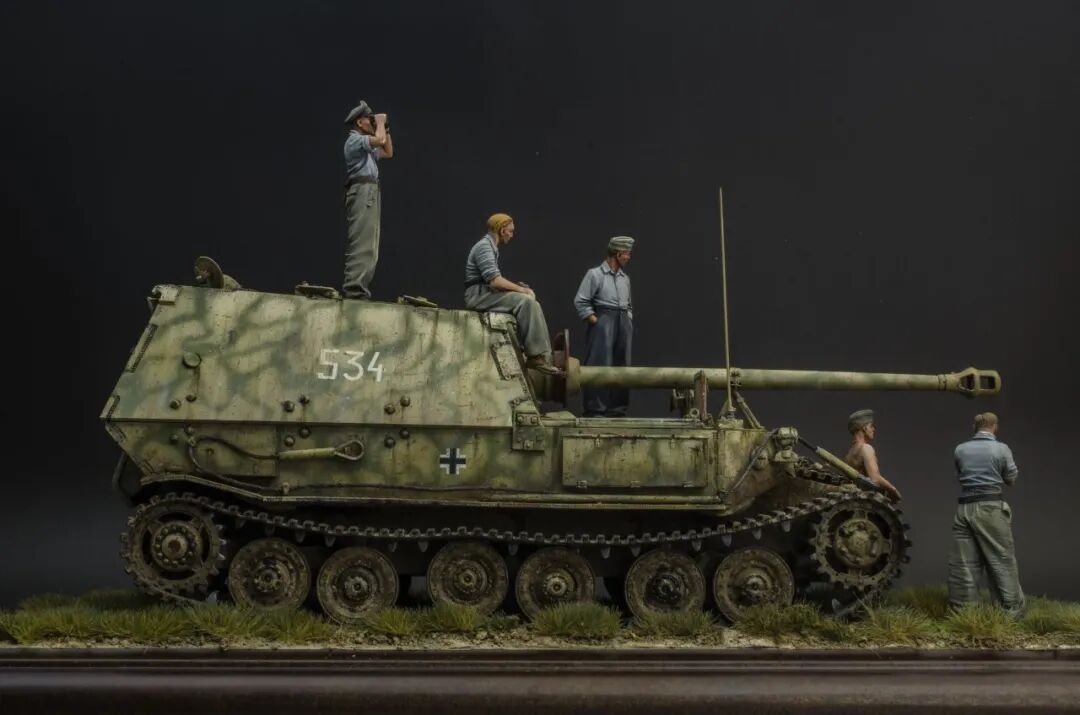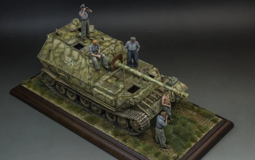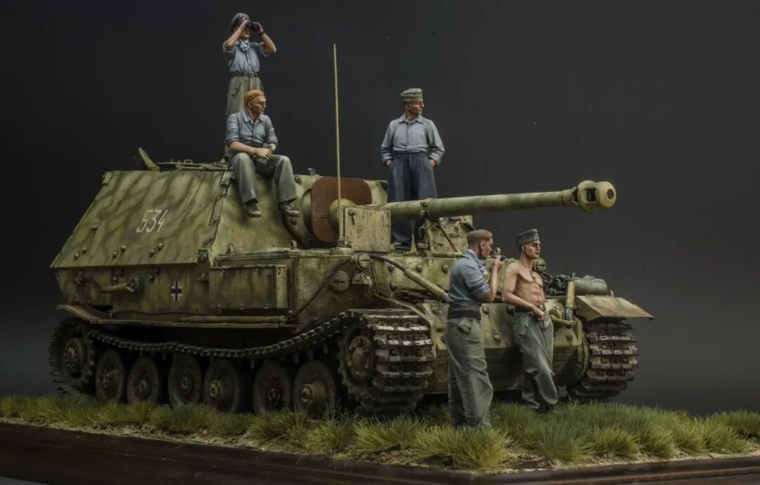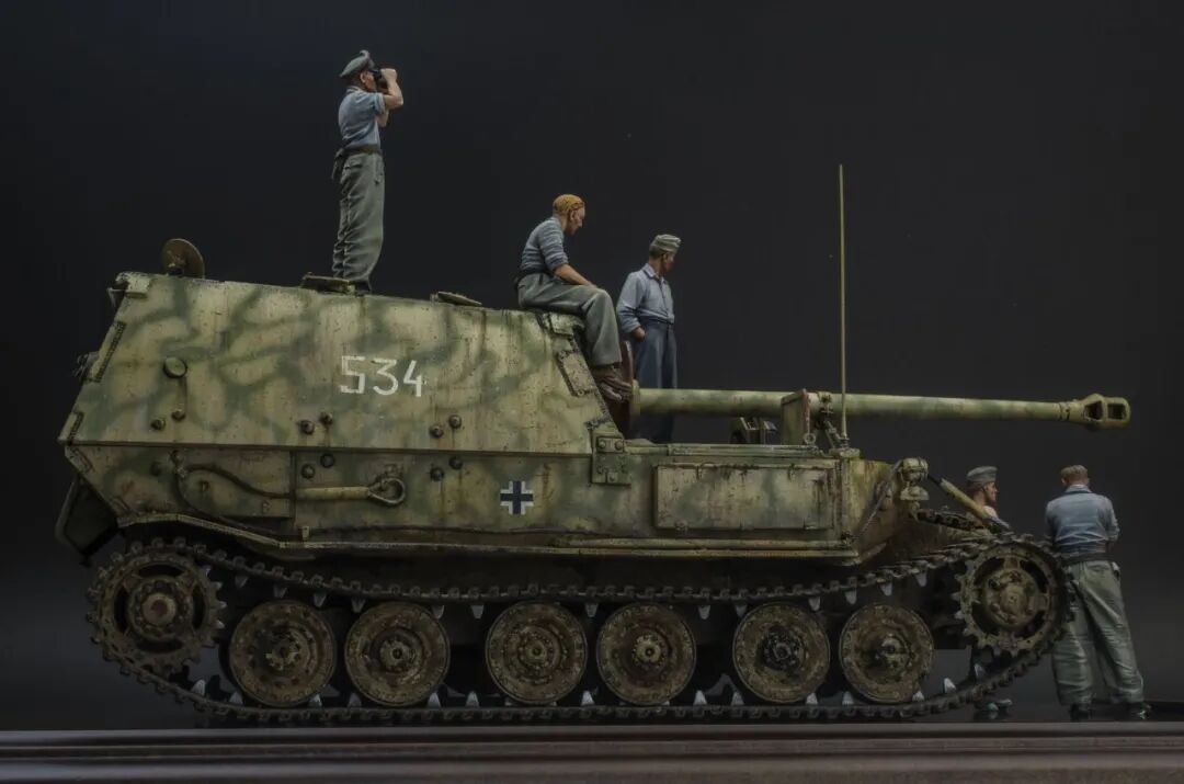 涂装旧化采用了656重歼击团654营的534号车,这辆车子涂装采用了比较细碎多变的绿色条纹涂装样式,而且比较有趣的是654营经过争夺某车站的战斗并遭受重大损失后,534号车仍幸存下来,但却永远无法到达战役目的地了。指挥官只能站在车顶手执望远镜瞭望,其他乘员也都疲惫不堪倚在战车上……
